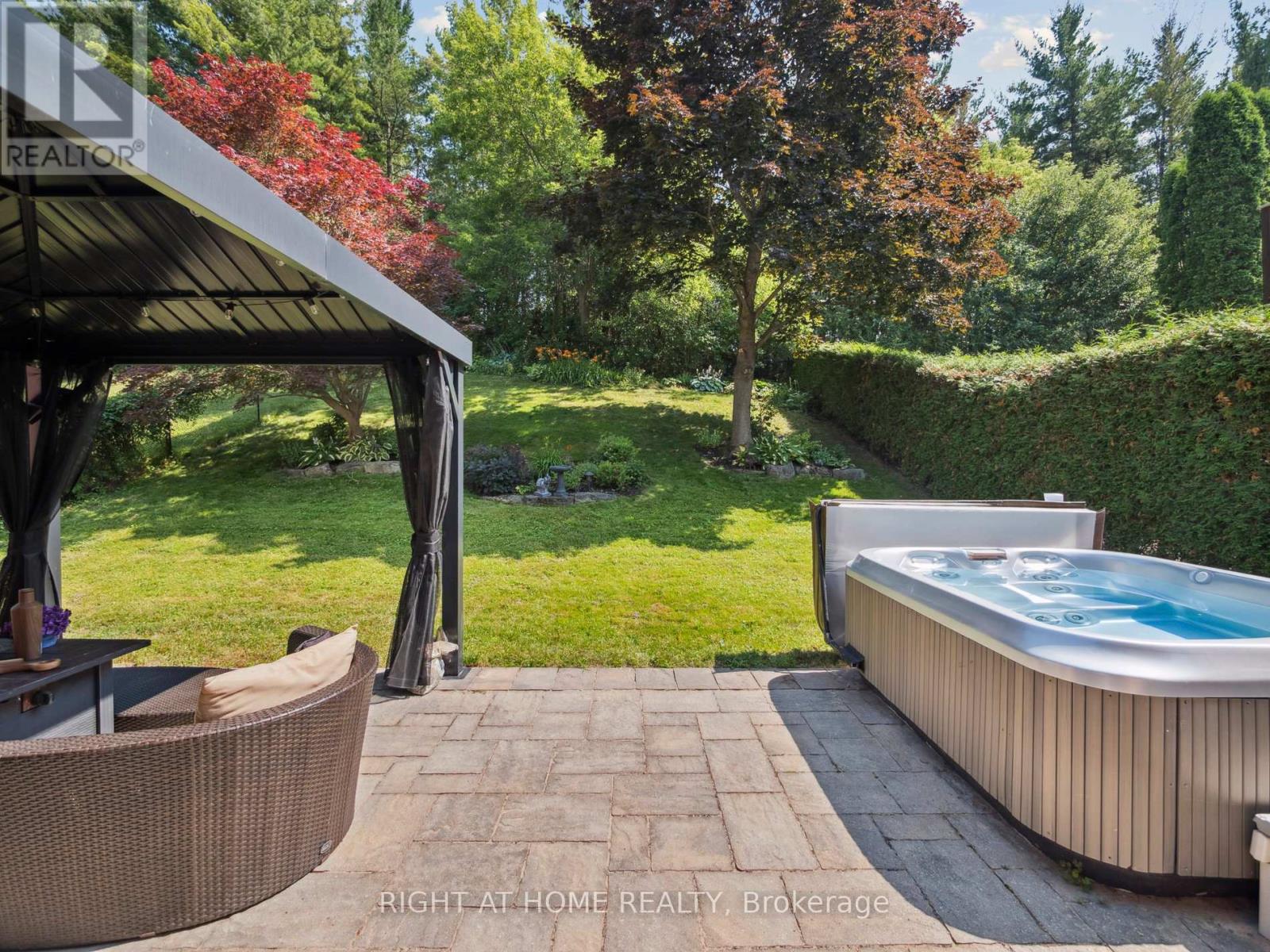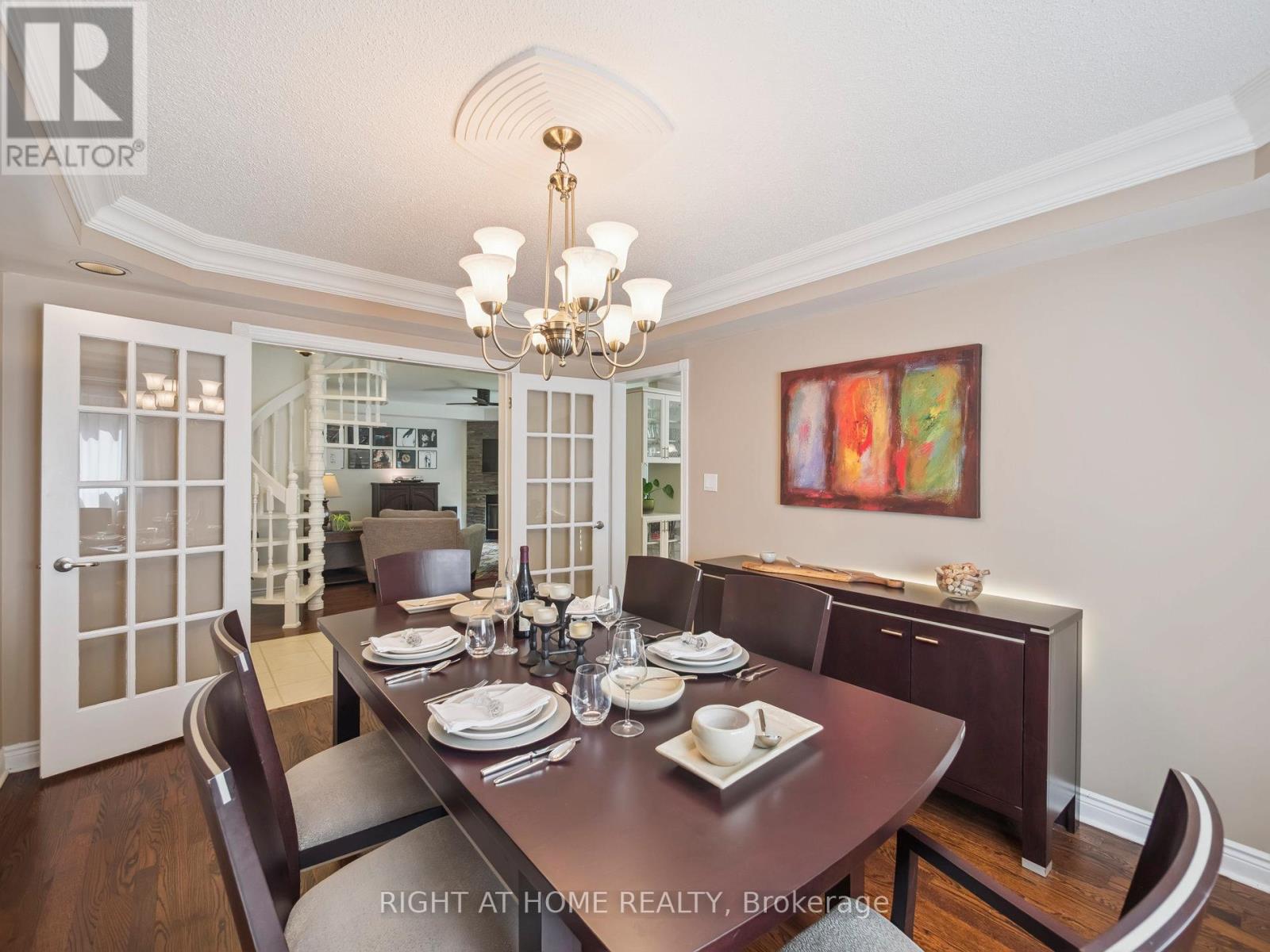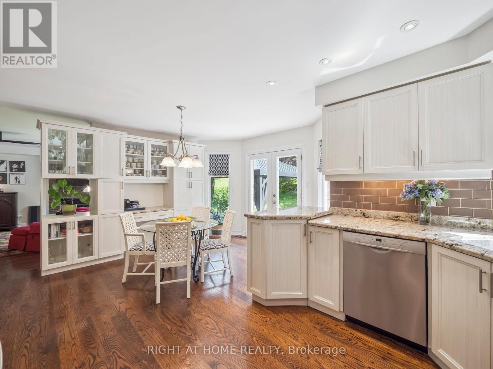 Spacious Five Bedroom Home on a Quiet Crescent backing onto Beautiful Trees and Greenspace for total Privacy. Entrance features two storey foyer with a spacious open staircase leading to the upper landing. Open Concept living room is an ideal space for entertaining in a formal setting. The kitchen and family room at the back of the home are for relaxed living and lounging with friends and family either inside with a view of the forest behind or walkout to the stone patio and enjoy the privacy this lot provides. The family room features a floor to ceiling fireplace and fun spiral staircase to the second floor. The kitchen has granite counters and stainless steel appliances, pot lights and plenty of area to cook for an amateur chef and to store items with a built in pantry, additional cupboards and glass cabinets. The dining room, directly adjacent the kitchen is great for holiday meals with double French doors if additional room is needed. You'll also find a separate office for a private work space or a place to meet clients. Upstairs are five bedrooms. The huge Primary bedroom features a remodelled "spa" ensuite with a European walk-in shower w/ seat, heated floors and a soaker tub. It has a walk-in closet w/ makeup desk. The back of the home has a wonderful second bedroom with a seating area and views overlooking the trees and greenspace behind the home. Perfect for in-laws. Three other bedrooms are also up here each with roomy closets. Two large skylights let natural light into the upper hall. One opens for fresh air on hot summer days. Three of the five bedrooms have direct access to ensuite bathrooms. The large unfinished basement is full of potential (or storage boxes). The backyard is a serene slice of nature to be enjoyed with a stone patio, beautiful trees, and privacy. It is a gardeners paradise. A place to get away from the stress of the urban lifestyle. Roof (2023). (id:64974)