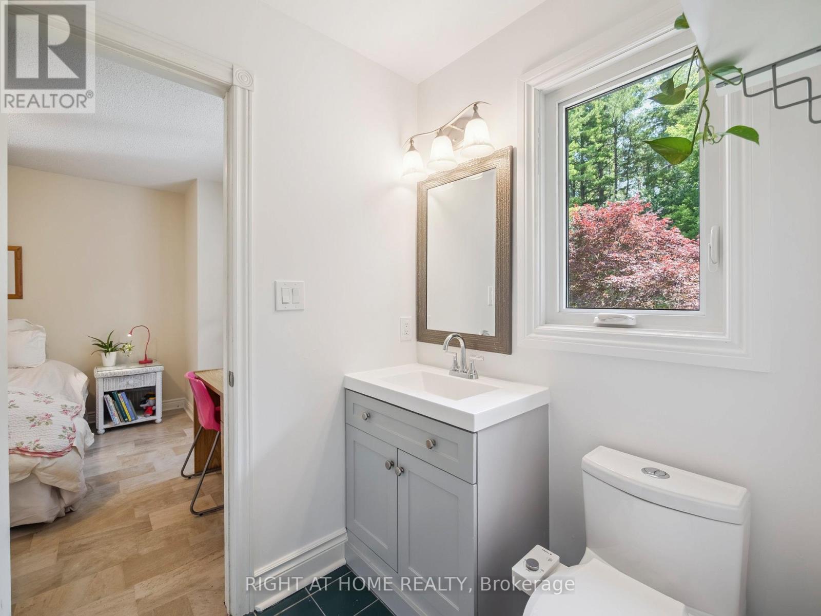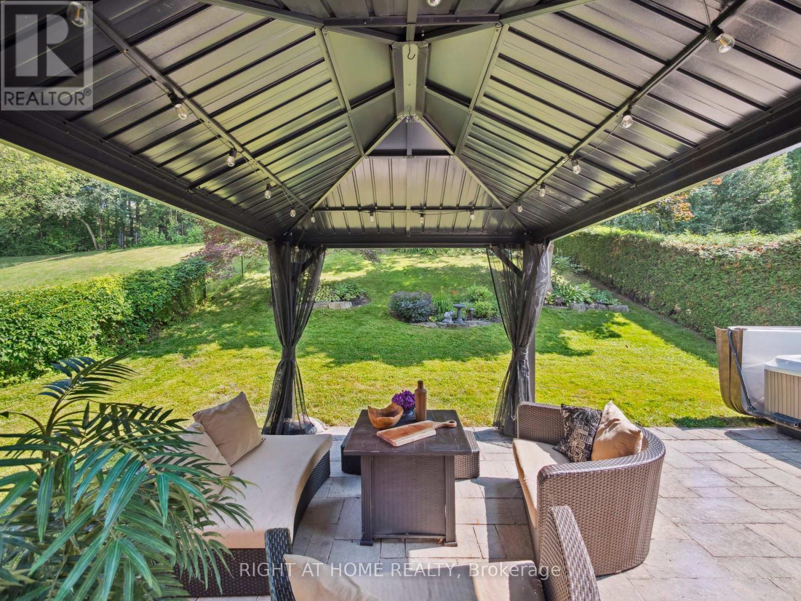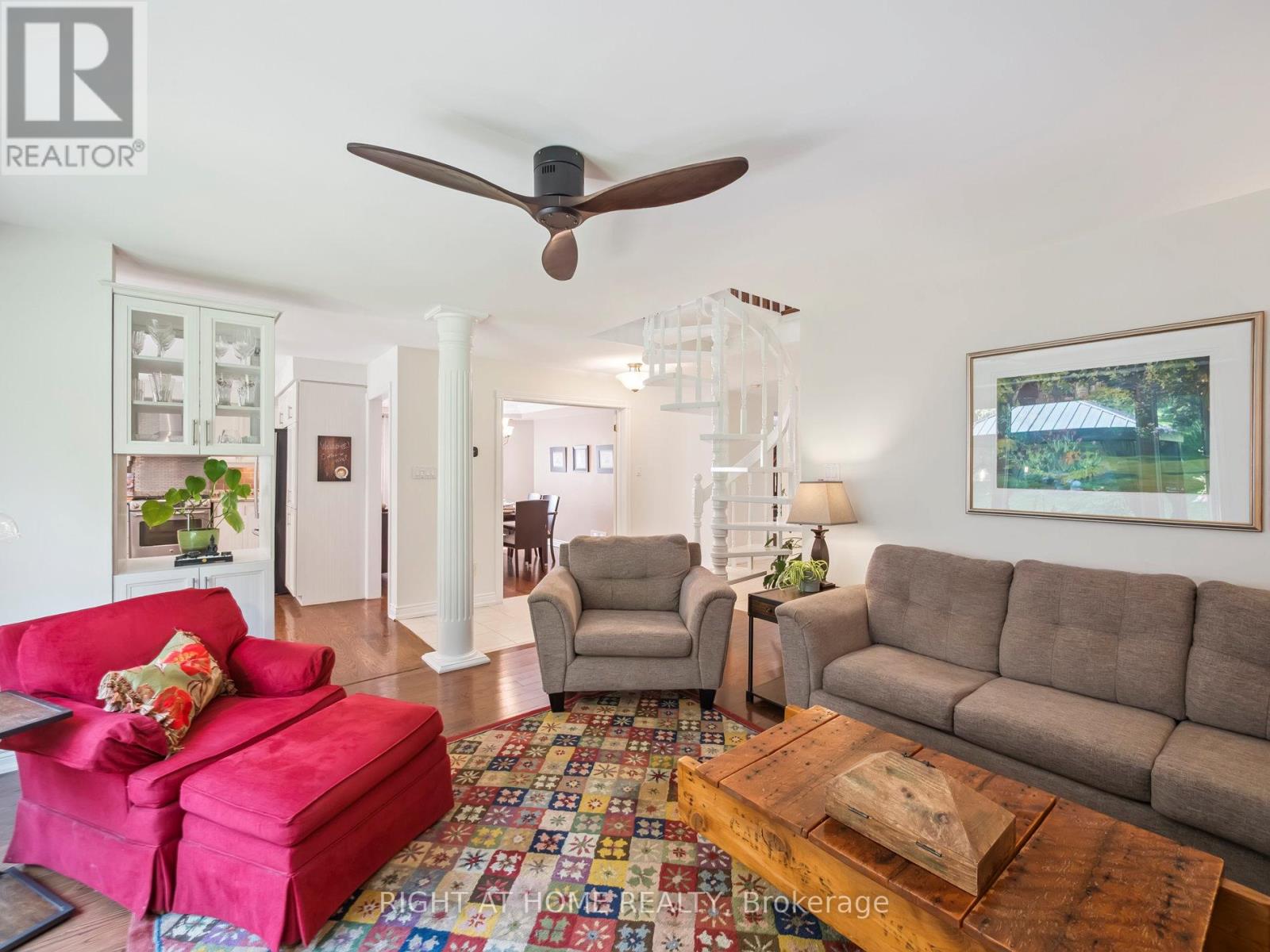 Spacious Five Bedroom Home on a Quiet Crescent backing onto Beautiful Trees and Greenspace for total Privacy. Entrance features two storey foyer with a spacious open staircase leading to the upper landing. Open Concept living room is an ideal space for entertaining in a formal setting. The kitchen and family room at the back of the home are for relaxed living and lounging with friends and family either inside with a view of the forest behind or walkout to the stone patio and enjoy the privacy this lot provides. The family room features a floor to ceiling fireplace and fun spiral staircase to the second floor. The kitchen has granite counters and stainless steel appliances, pot lights and plenty of area to cook for an amateur chef and to store items with a built in pantry, additional cupboards and glass cabinets. The dining room, directly adjacent the kitchen is great for holiday meals with double French doors if additional room is needed. You'll also find a separate office for a private work space or a place to meet clients. Upstairs are five bedrooms. The huge Primary bedroom features a remodelled "spa" ensuite with a European walk-in shower w/ seat, heated floors and a soaker tub. It has a walk-in closet w/ makeup desk. The back of the home has a wonderful second bedroom with a seating area and views overlooking the trees and greenspace behind the home. Perfect for in-laws. Three other bedrooms are also up here each with roomy closets. Two large skylights let natural light into the upper hall. One opens for fresh air on hot summer days. Three of the five bedrooms have direct access to ensuite bathrooms. The large unfinished basement is full of potential (or storage boxes). The backyard is a serene slice of nature to be enjoyed with a stone patio, beautiful trees, and privacy. It is a gardeners paradise. A place to get away from the stress of the urban lifestyle. Roof (2023). (id:64974)