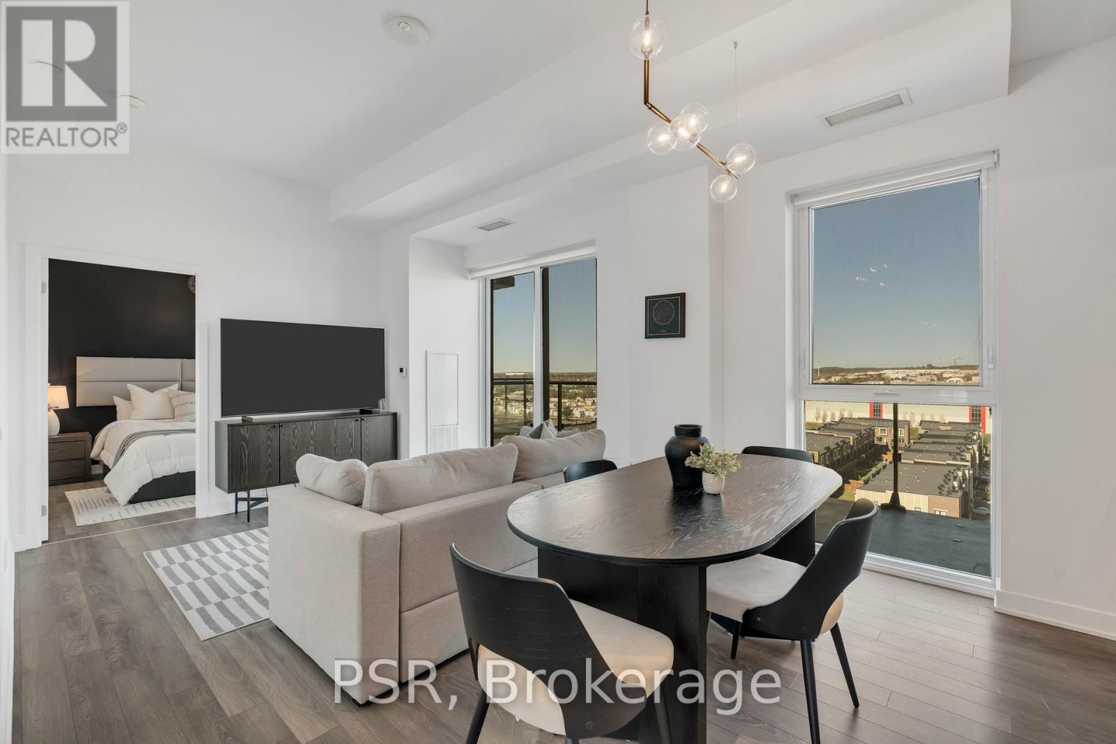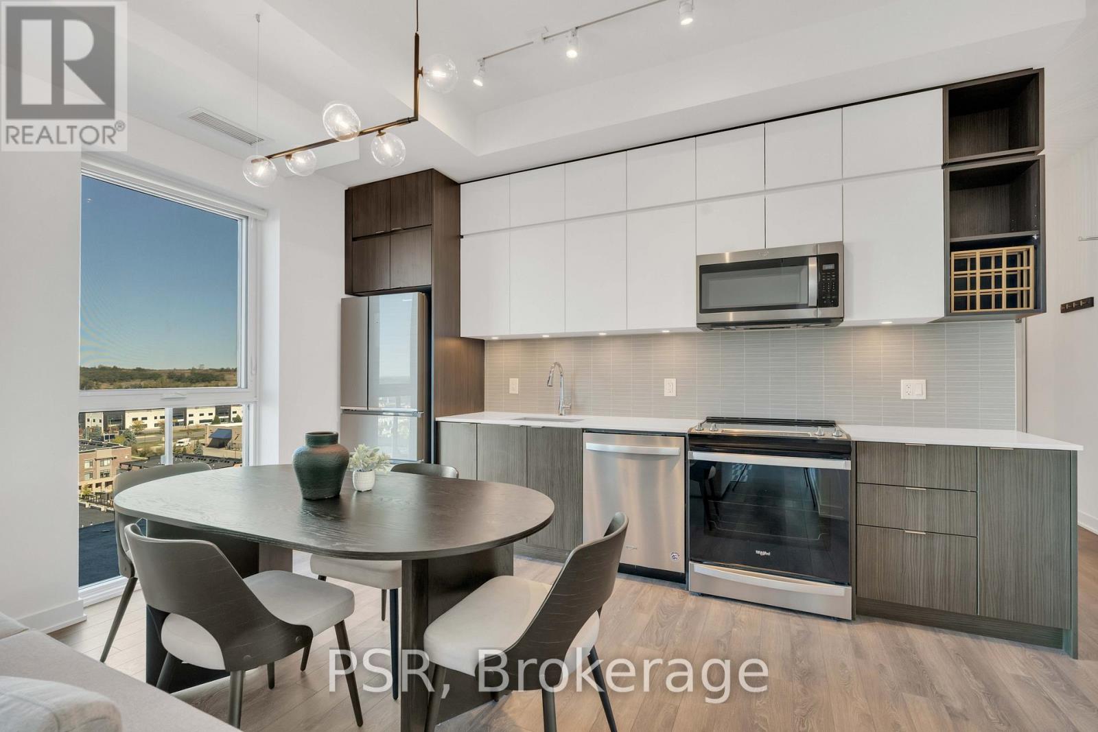 Welcome to the 10th floor of 100 Eagle Rock Way, where sleek design meets everyday comfort in one of Vaughan's most desirable addresses. This beautifully appointed condo offers soaring ceilings, rich hardwood floors, and floor-to-ceiling windows that bathe the space in natural light. The open-concept layout seamlessly connects the living, dining, and kitchen areas, perfect for hosting friends or simply unwinding in style. Step out onto your private, oversized balcony and take in panoramic views, ideal for morning coffees or evening cocktails. The modern kitchen is a chef's dream, featuring premium appliances, stylish cabinetry, and a clean, contemporary finish. The spacious primary suite includes a spa-inspired ensuite, offering a tranquil retreat after a long day. Enjoy upscale amenities including a concierge fully equipped fitness centre, and outdoor BBQ area, all designed to elevate your lifestyle. Underground parking is also included for your convenience. Ideally situated just moments from shops, restaurants, transit, and major highways, this is urban living at its finest. Don't miss your opportunity to lease a space that's both refined and remarkably well-connected. (id:64974)