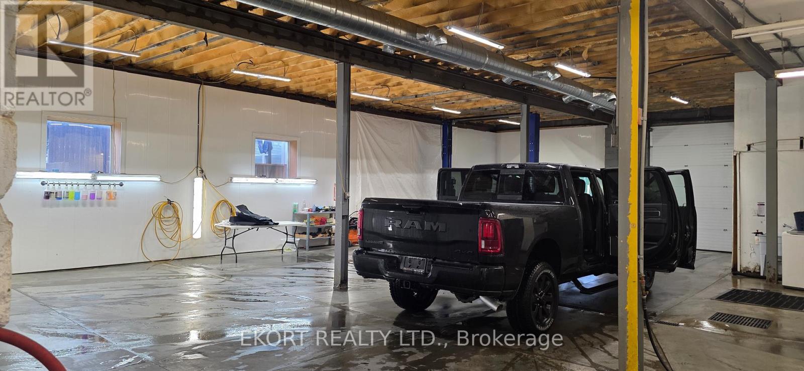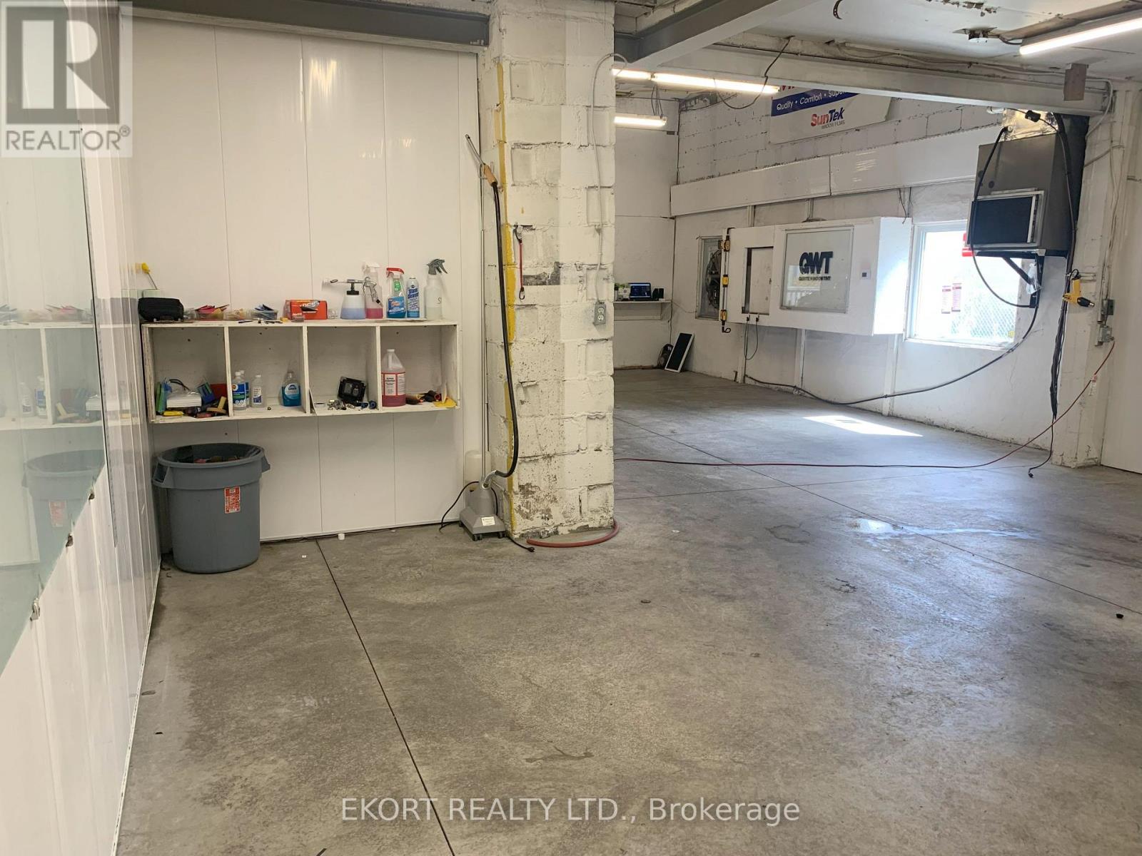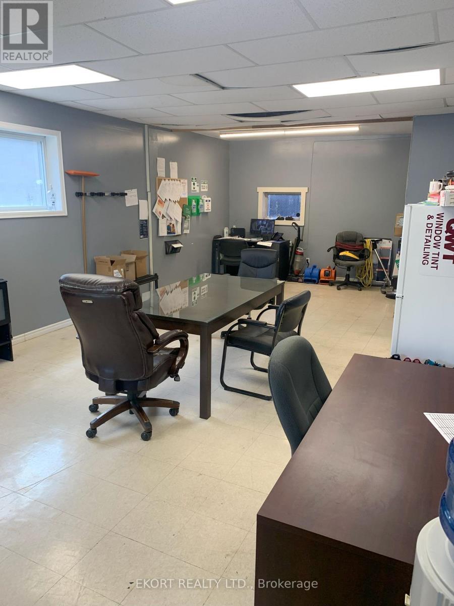 This single-tenant space is a 4,655 sqft single-storey commercial building and features a front waiting area, open office area, 2-piece washroom, and a spacious workshop area with clear ceiling heights of 13 ft and 10 ft in the back bay area. The workshop area is equipped with a new concrete floor with in-floor drains and oil separator, LED lighting, exhaust system, washer hookup, waterproof walls, and a 9 ft x 12 ft roll-up overhead door, allowing for convenient access and loading. The building is fully air conditioned and is spray foam insulated. Included in the rent is a security system, a hoist and an air compressor. Tenant is responsible for their own utilities and additional rent (TMI). Ideal for a variety of commercial uses permitted under DC zoning. Asking lease rate is for year 1 only and is subject to annual escalations. (id:64974)
