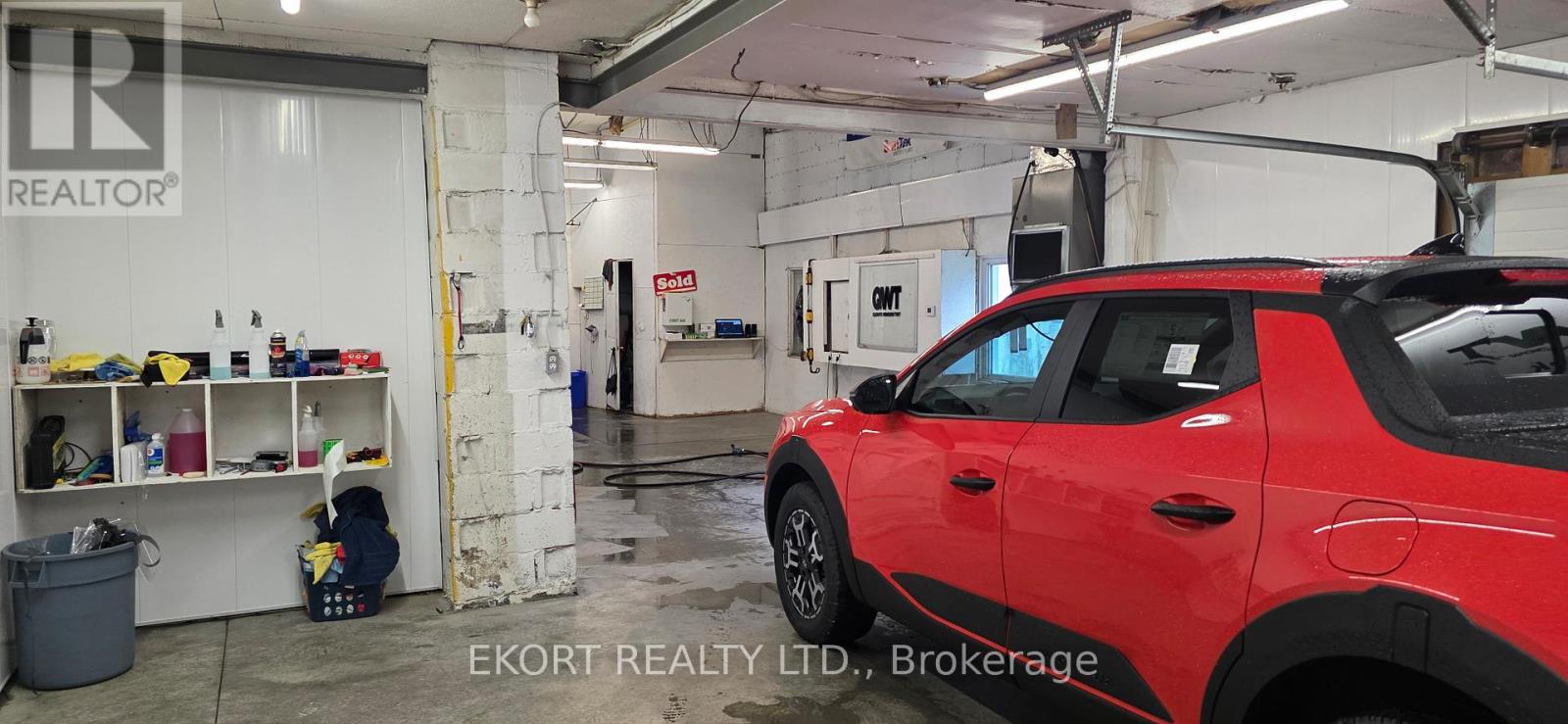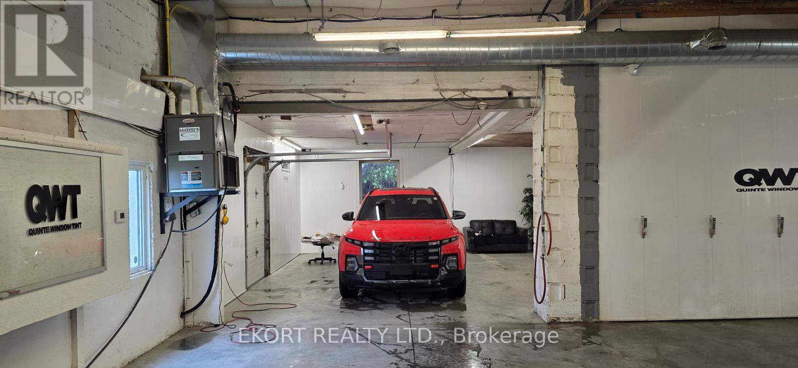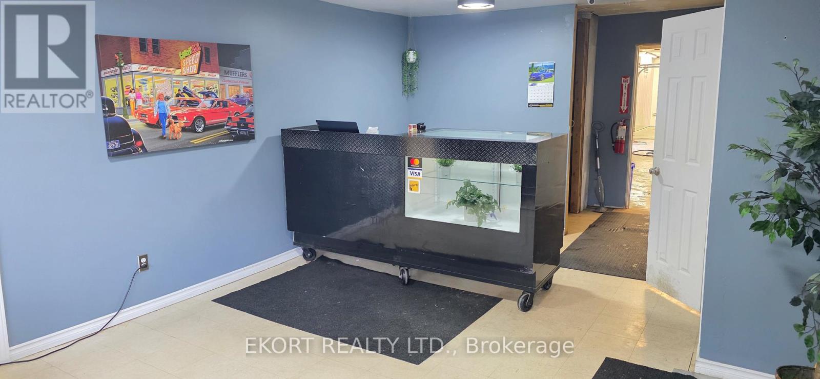 This single-tenant space is a 4,655 sqft single-storey commercial building and features a front waiting area, open office area, 2-piece washroom, and a spacious workshop area with clear ceiling heights of 13 ft and 10 ft in the back bay area. The workshop area is equipped with a new concrete floor with in-floor drains and oil separator, LED lighting, exhaust system, washer hookup, waterproof walls, and a 9 ft x 12 ft roll-up overhead door, allowing for convenient access and loading. The building is fully air conditioned and is spray foam insulated. Included in the rent is a security system, a hoist and an air compressor. Tenant is responsible for their own utilities and additional rent (TMI). Ideal for a variety of commercial uses permitted under DC zoning. Asking lease rate is for year 1 only and is subject to annual escalations. (id:64974)