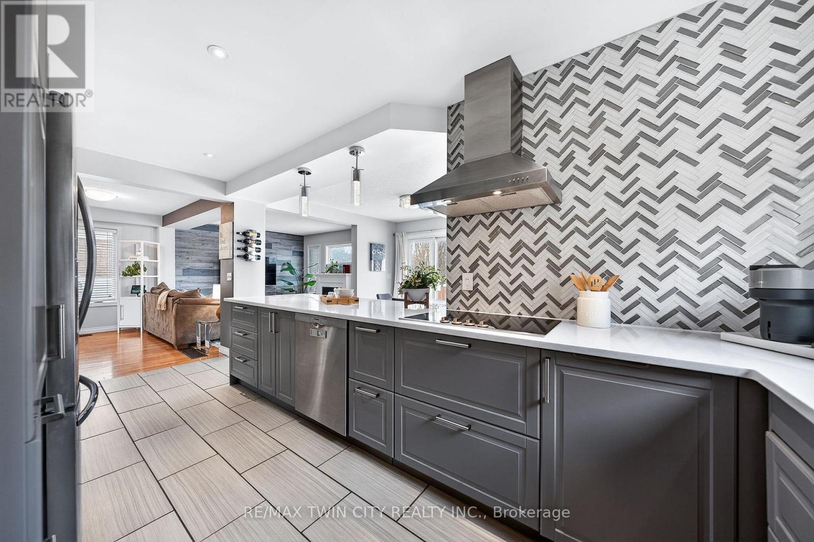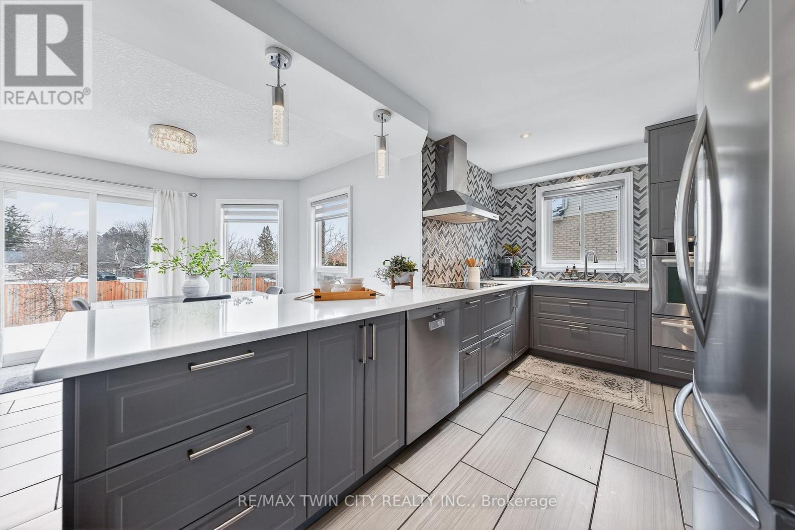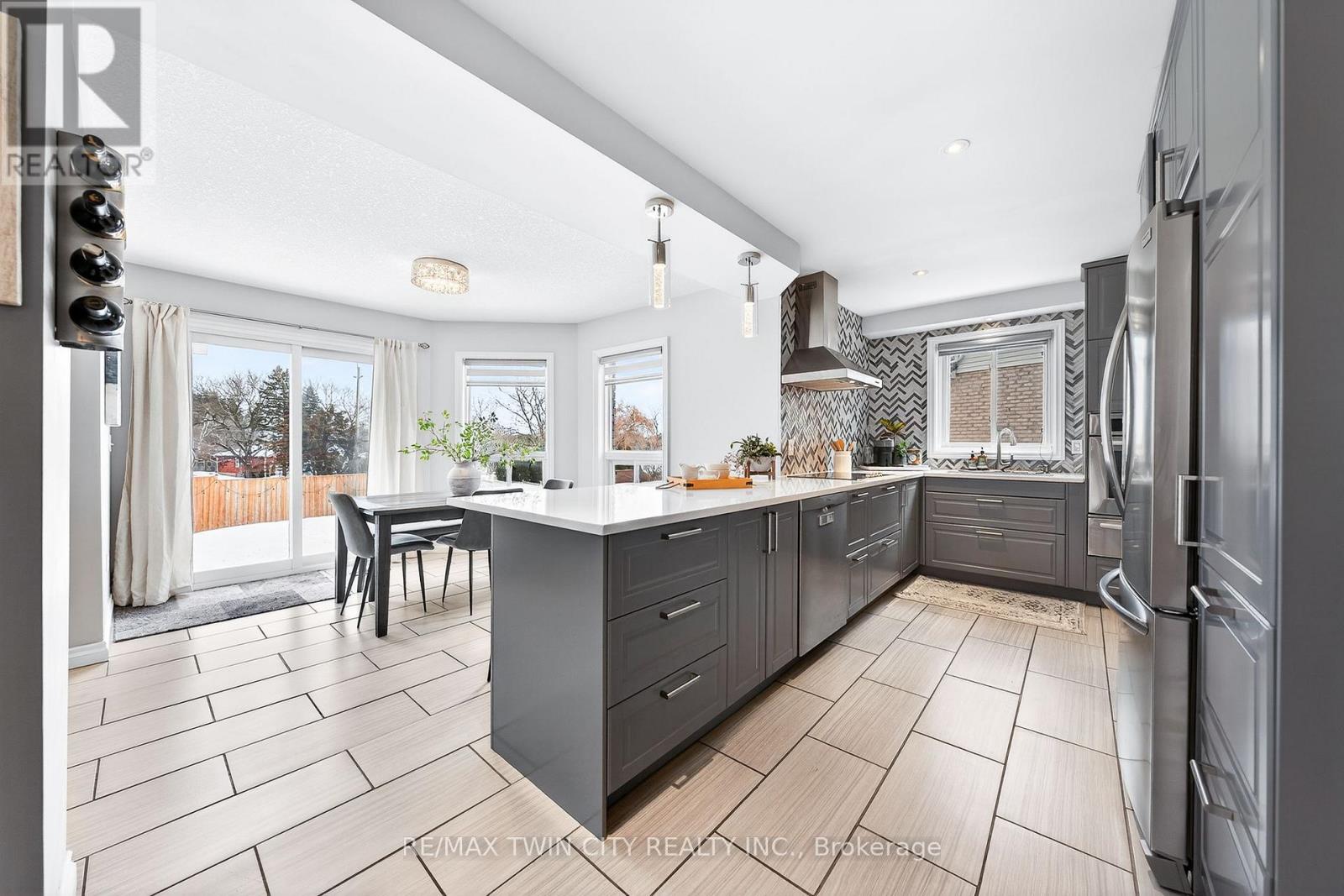 BEAUTIFUL 2-STOREY HOME SET ON A PREMIUM LOT OF JUST UNDER .25 ACRES IN DESIRABLE EAST GALT NEIGHBORHOOD! Welcome to a home that feels bright and welcoming from the moment you step inside. The main floor is filled with natural light thanks to large windows throughout. The open-concept dining room is perfect for hosting family dinners or entertaining friends and flows seamlessly into the cozy family room where you can relax and unwind by the gas fireplace. At the heart of the home is fully renovated eat-in kitchen. Featuring quartz countertops, custom designed cabinetry, an induction cooktop, wall oven, and a counter-depth fridge, this kitchen blends style and function seamlessly. The main floor also has the convenience of a laundry room, a powder room, and a separate entrance for a potential in-law suite possibility. Upstairs, are four generous-sized bedrooms, offering plenty of space for everyone. A 4-piece main bathroom serves the secondary bedrooms, while the primary suite features a walk-in closet and its own 4-piece ensuite, with a jacuzzi tub . The fully finished lookout basement adds even more versatile living space, with brand new flooring, a 3-piece bathroom, and storage. With its flexible layout, this lower level could easily accommodate an additional bedroom or in-law suite. Step outside and discover the true showstopper - the architecturally designed backyard oasis! From the kitchen, walk out onto the expansive composite deck that leads down to a spacious patio, perfect for soaking up the sun while lounging poolside. The heated saltwater pool was thoughtfully designed with a California sun ledge, an impressive 8-foot "hopper" deep end, and three stunning waterfalls that create a resort-like atmosphere. Relax under the gazebo with a built-in wine cooler just steps away, making entertaining effortless. After a perfect day outdoors, unwind in the hot tub and enjoy your own private retreat. This could truly be your forever home. Book your showing today! (id:64974)