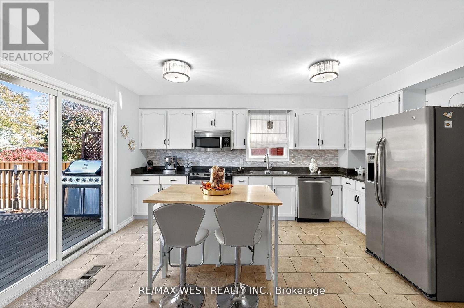 WOW ! Absolute Must See! This Clean & Bright Home Boasts 175' Deep Lot. Kitchen and breakfast are with W/O to a Large Deck leading to your backyard oasis, Open Concept for entertainment. Living room combined with dining room with a lot of natural light. Primary Bedroom with W/I closet and 2 pcs ensuite. 2 Sizeable Bedrooms with/ closet and large windows.Finish basement with a wet bar perfect for entertainment.New interlocking stone and armour stone steps at your front entrance and leading to the backyard.Double Garage massive driveway with 4 Car Parking, Newly Windows throughout the house. (id:64974)