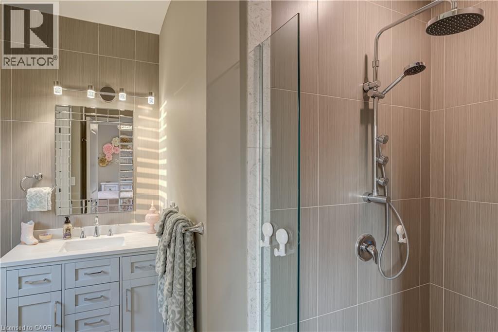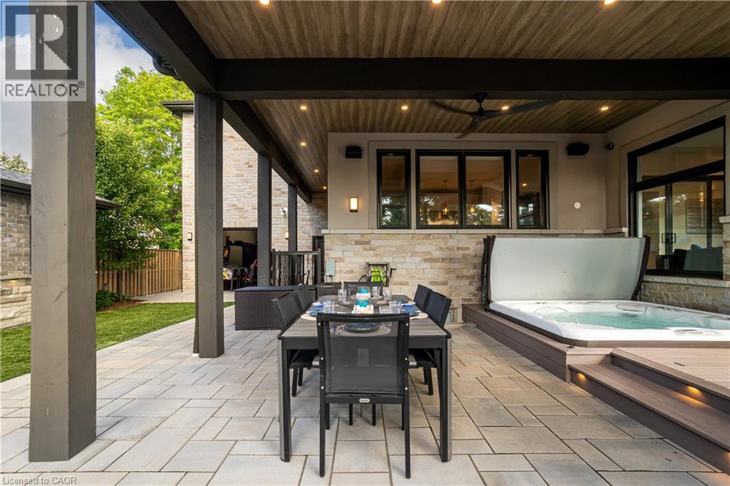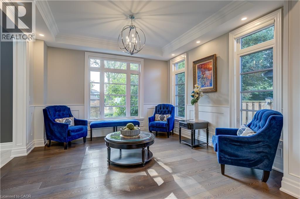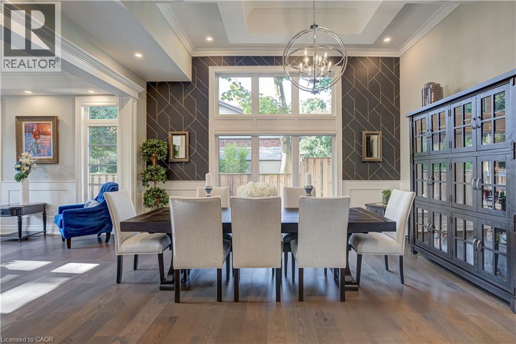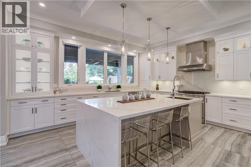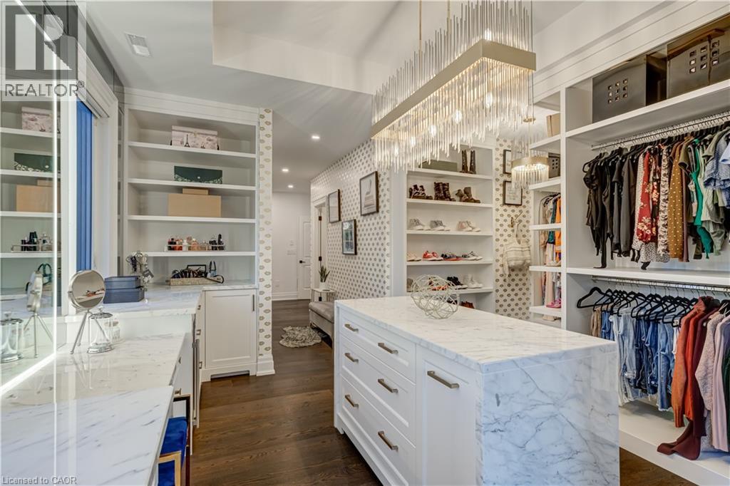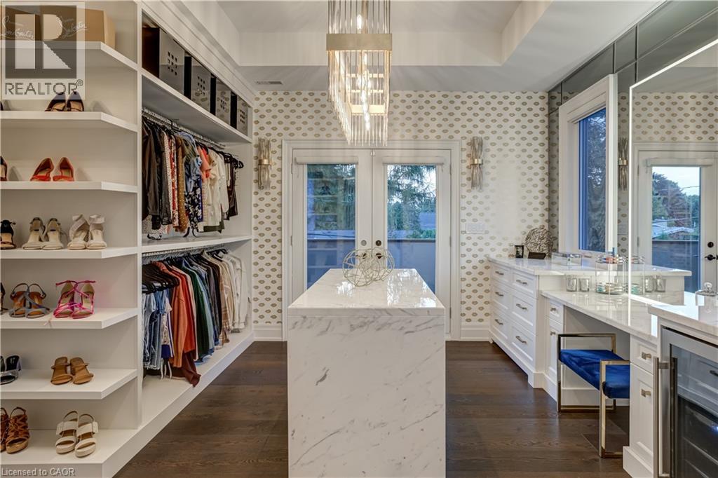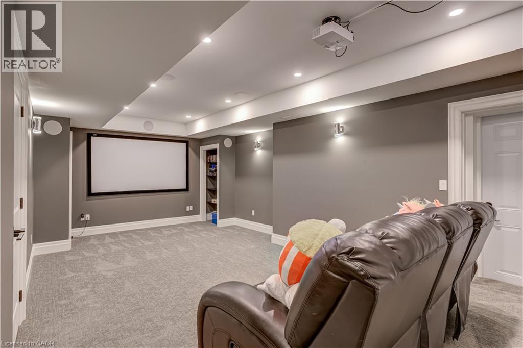 This architectural masterpiece offers 7,000 sq. ft. of luxurious living space with 4+2 bedrooms, 6 bathrooms, an incredible resort-style backyard oasis, and a fully finished basement with separate entrance. Set on an 85 x 135 ft. lot in a mature Ancaster neighbourhood, just one minute to highway access and all Power Centre amenities, this dream home impresses with striking curb appeal, professional landscaping, and an oversized triple garage with 14 ft. ceilings and two car lifts. The grand foyer with a soaring 21 ft. ceiling and curved staircase opens to a sophisticated interior featuring bold millwork, expansive porcelain, and wide-plank hardwood all illuminated by massive windows allowing plenty of natural light. The main level boasts formal living and dining rooms with 12 ft. ceilings, a private office, powder room, mudroom, and a gourmet eat-in kitchen with top-tier appliances. A 4-season sunroom with radiant in-floor heating and a family room with 11 ft. ceiling and stone fireplace create the perfect entertaining spaces. Upstairs, the sensational primary suite includes custom built-ins, spa-inspired 5-piece bath, private balcony, walk-in closet, and a custom dressing room fit for any wardrobe. Three additional bedrooms, all with ensuite baths (heated floors), and bedroom level laundry complete the upper level. The finished lower level offers a recreation area, home theatre, 2 bedrooms, full bath, second laundry, and kitchenette—ideal for family enjoyment or a multigenerational in-law suite. Step outside to a private resort-style retreat with heated saltwater pool (waterfalls, lights, fire features), sunken hot tub, outdoor kitchen with pizza oven, extensive hardscaping, artificial turf, storage shed, and an elite K-Array sound system. Upgrades include Control4 automation, integrated security with cameras, whole-home sound, and dual furnaces, A/Cs, and HRVs for comfort and efficiency. A rare opportunity to own one of Ancaster’s most extraordinary residences! (id:64974)