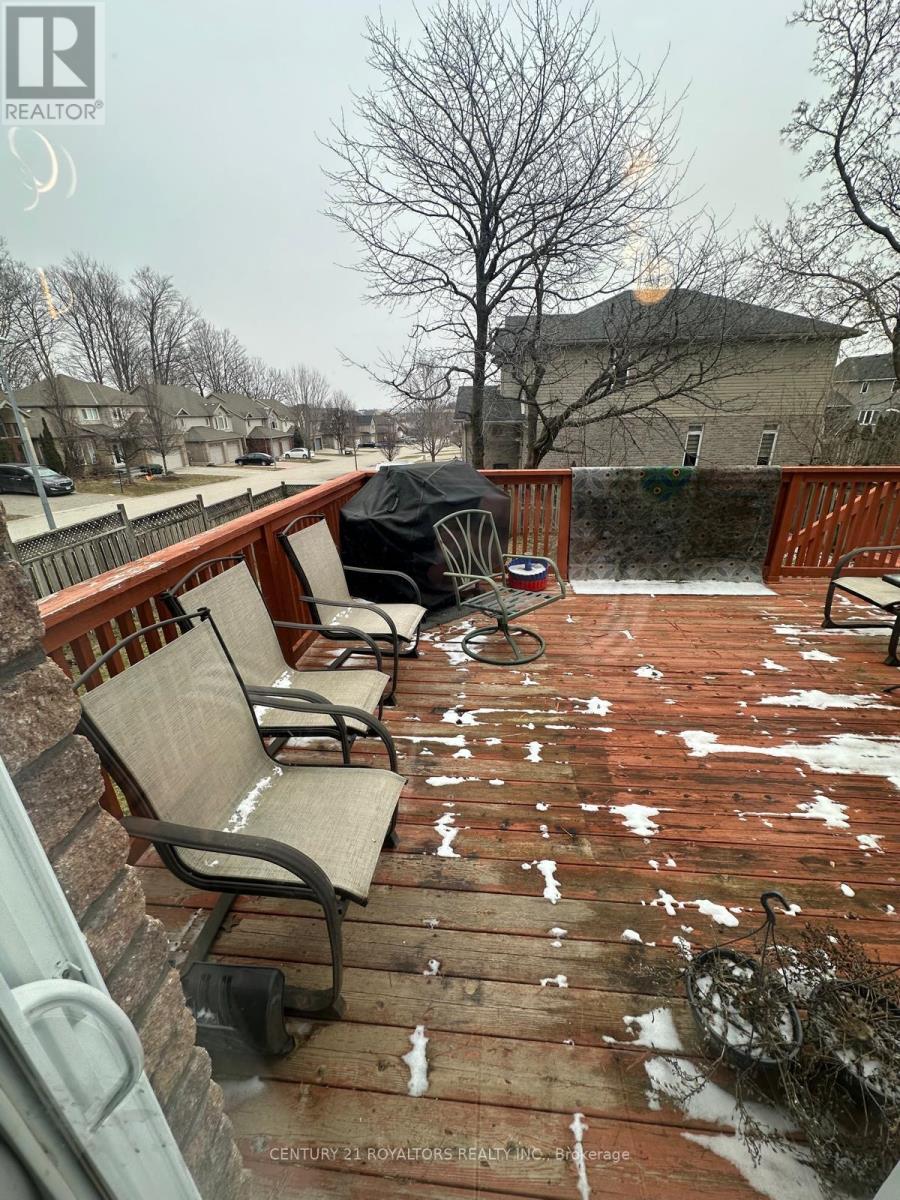 Welcome to this impeccably maintained detached home situated on a quiet cul-de-sac with a fully fenced yeard, and an oversized deck off the eat-in-kitchen and great room. Step inside to discover a thoughfully designed main floor featuring A gorgeous kitchen with ample cabinetry, a breakfast bar, walk-in pantry, built-in microwave and dishwasher. The adjacent dining room is accented with elegant columns and Rich Hickory hardwood floors, while stylish light fictures add a touch of sophistication thourghout. Convenient main floor laundry, A 2 piece bathroom, and indoor access to a true double car garage complete this level. Upstairs, the spacious master suite offers a walk-in closet and a private 4 piece ensuite. Tow additional generously sized bedrooms share a well appointed 4 piece bathrooms. Warm carpenting flows through the upper level, with ceramic flooring in the bathrooms. The fully finished basement adds exceptional living space with two bedrooms, a full bathroom, and a spacious entrance. Additional storage and a cold room provide ample organizational space. (id:64974)