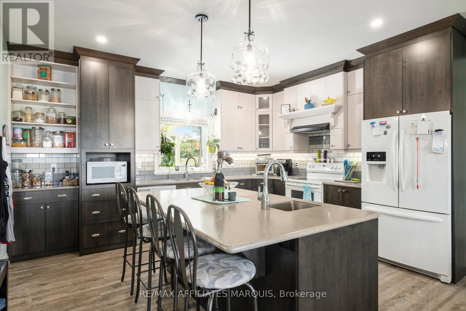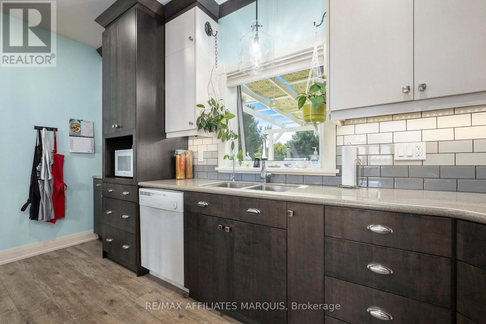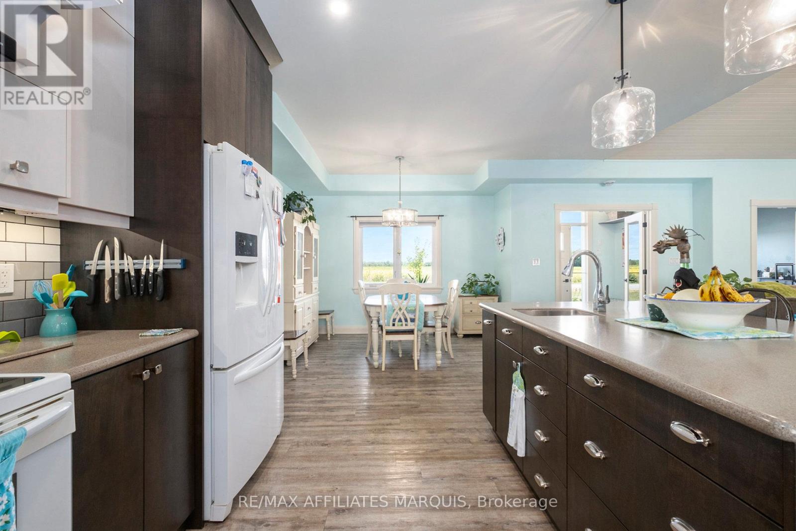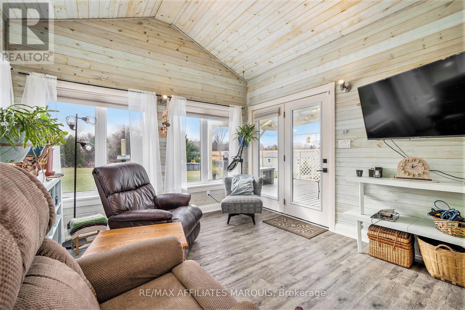 Welcome home to this 5 year old energy efficient slab on grade 1796 sq ft home on a 1 acre landscaped lot. Most everything a family needs is here. Radiant in-floor heating plus heat pumps for additional heat and air conditioning, on-demand hot water boiler system, 9 ft ceilings, awesome sunroom to watch the sunsets and leads to covered deck with a piped in propane BBQ. The gourmet kitchen with Corian counter tops and breakfast bar is a delight for the house chef. There are 3 bedrooms, 2 full baths, an office, 2 single attached garages, 2 garden sheds 14X20 and14X12, and for those hot summer days an above ground pool. All house appliances are included. This home is ready for its new family or semiretired couple. Garden area and beautiful flower gardens. Located on the edge of Elgin. Just 40 mins from Brockville, Kingston, and Smiths Falls. Well worth a look. Note the home has been re-painted inside since the video tour was taken. (id:64974)