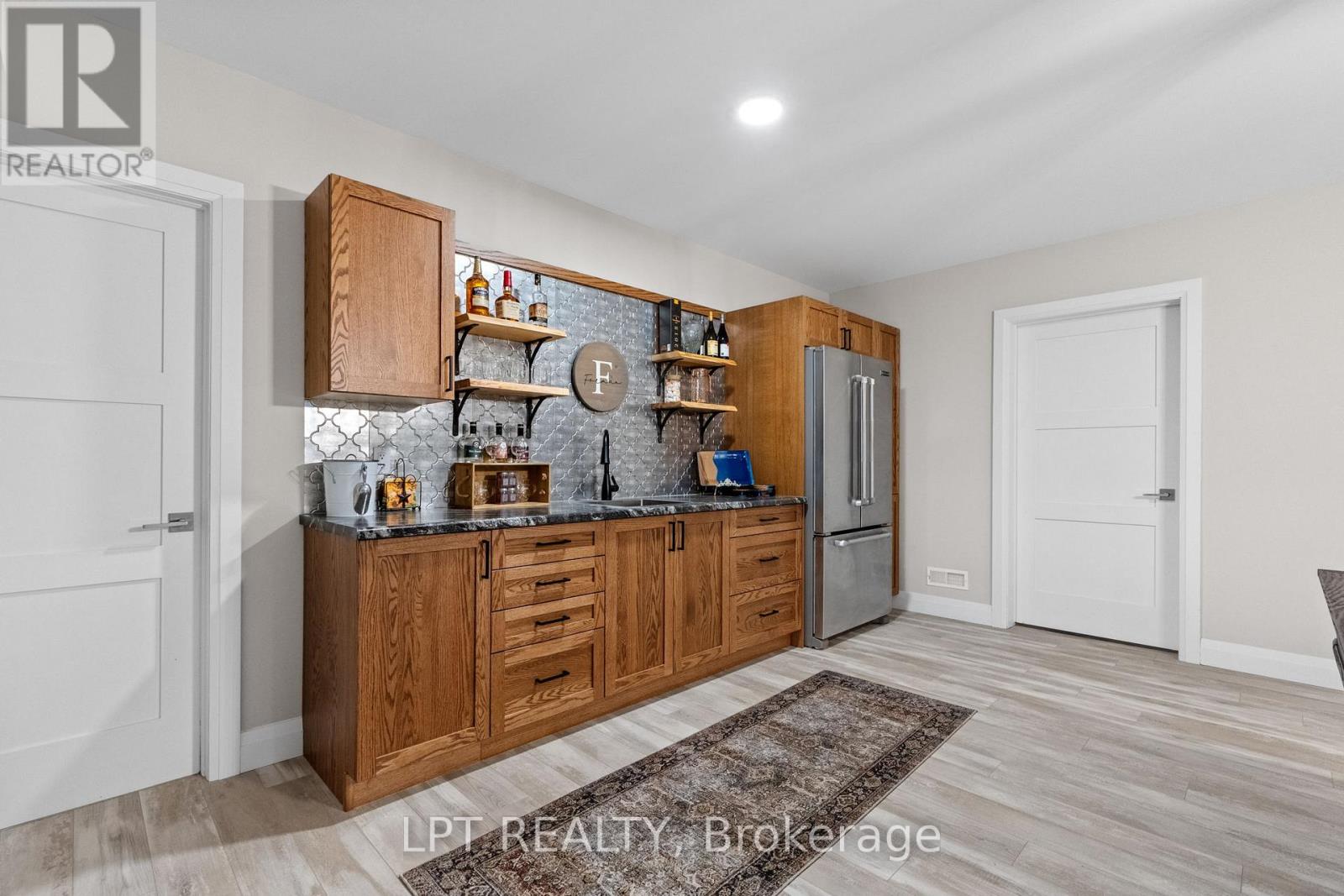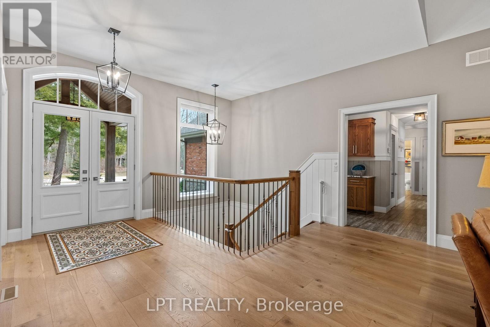 Nestled on a premium half-acre lot, this stunning executive home offers exceptional privacy and natural beauty. Located across from Pinery Park in Grand Bend's sought-after Deer Run subdivision, and just minutes from some of Ontario's most breathtaking beaches and sunsets, this property delivers the perfect balance of luxury and lifestyle. Offering over 4,250 sq. ft. of finished living space, this impressive home features 2+2 bedrooms and 3 bathrooms. The primary suite is a peaceful retreat, complete with a walkout to the screened-in deck, perfect for morning coffee, along with a spa-inspired 5-piece ensuite featuring heated floors and a spacious walk-in closet. The heart of the home is the beautifully designed kitchen with quartz countertops, flowing seamlessly into the open-concept dining area and living room with a cozy gas fireplace. Just behind the kitchen is a massive walk-in pantry, ideal for storage and organization. The main floor also includes a second bedroom, a stylish 3-piece bathroom, a spacious finished office, and convenient access to the attached heated two-car garage with epoxy flooring. The fully finished lower level is designed for entertaining and relaxation. Enjoy a large Rec room complete with a wet bar and bar fridge, along with a family room, creating the perfect space for gatherings with family and friends. This level also features two additional bedrooms, a large walk-in closet for extra storage, a utility room with epoxy floors, and a cold cellar. Outside, the home is equally impressive with a welcoming sitting area beside the front porch, stamped concrete laneway, screened-in patio, garden shed, and beautifully landscaped grounds with a sprinkler system. A generator and a heated shop with loft storage add even more functionality to this exceptional property. Opportunities like this rarely come along. Don't miss your chance to own one of the most desirable executive homes in the Grand Bend area. (id:64974)