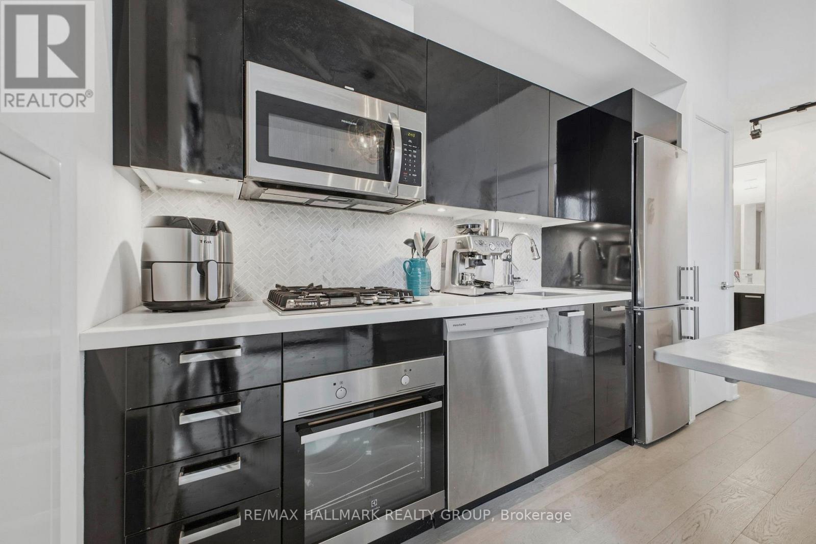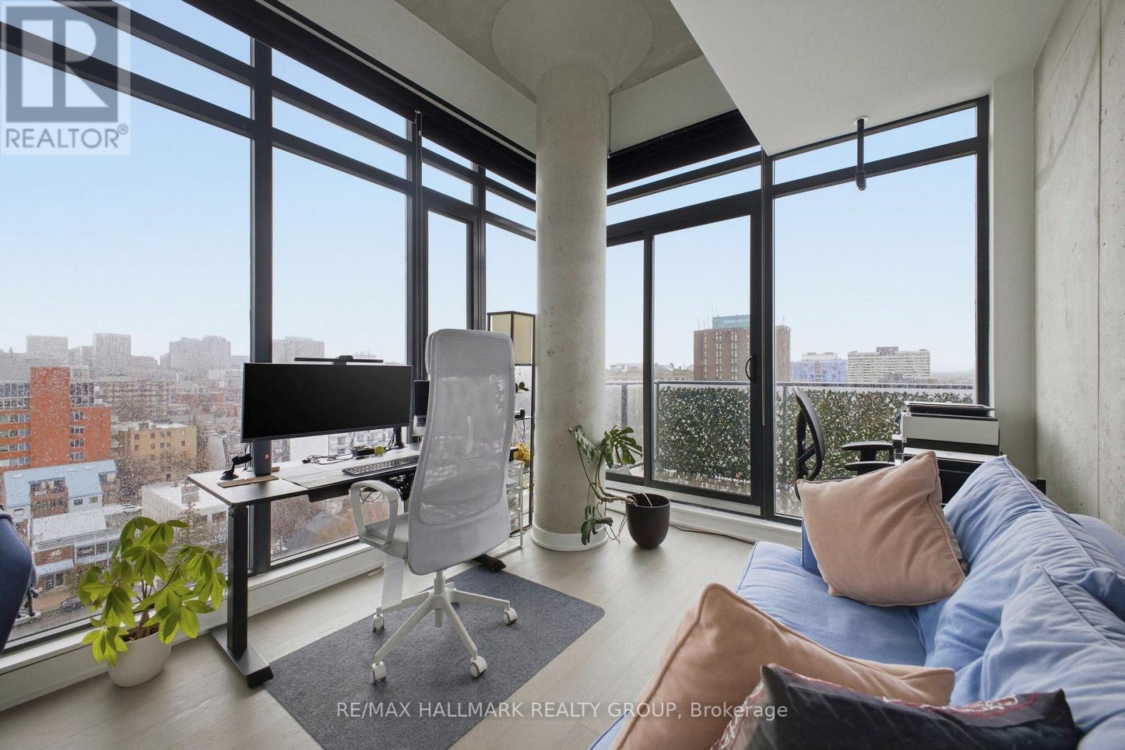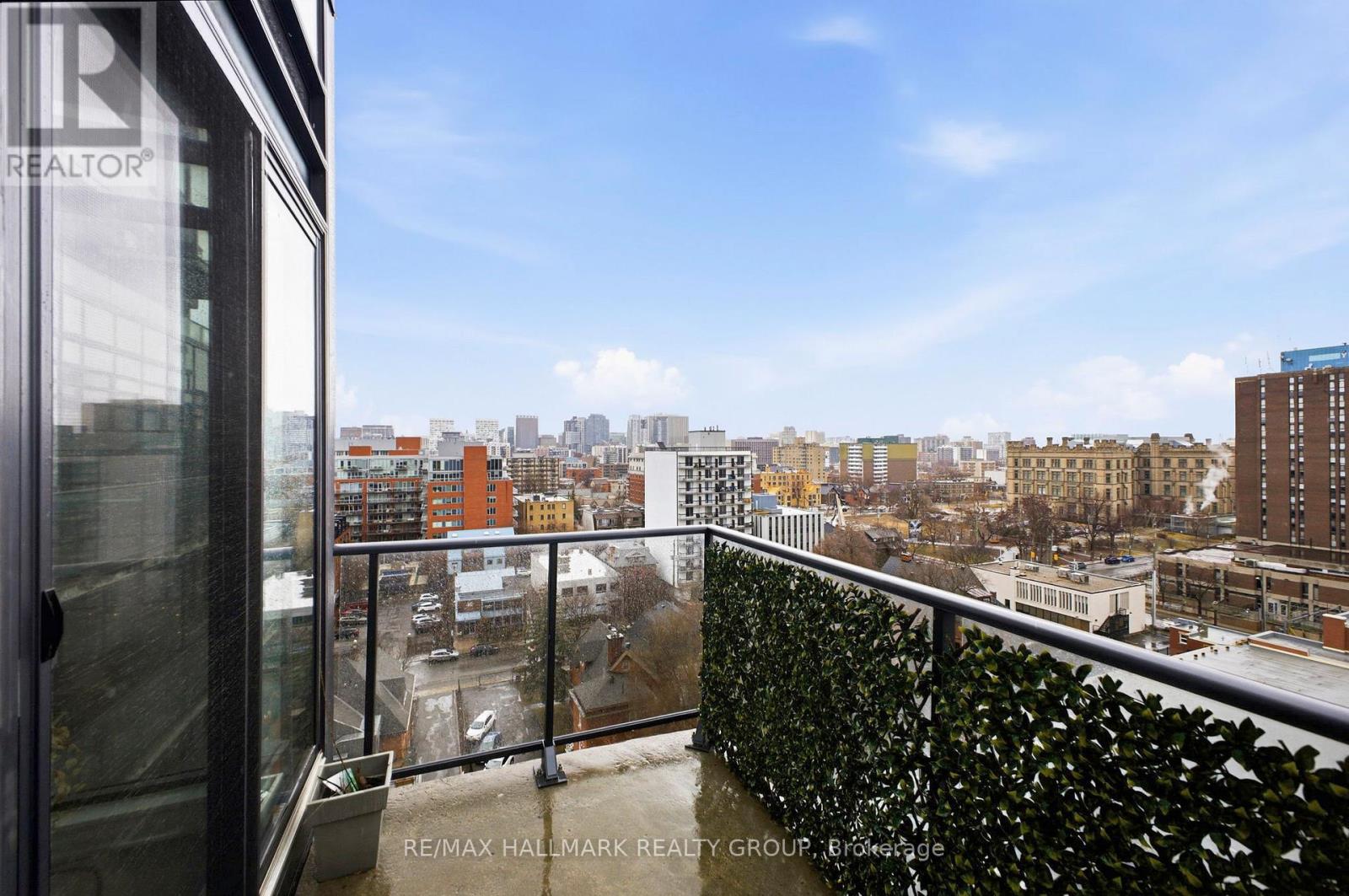 Welcome to the 10th floor of 203 Catherine. This bright and modern 2 bedroom, 1 bathroom condo features floor to ceiling windows, exposed concrete accents, hardwood flooring, in unit laundry, and two private balconies with city views. The kitchen offers quartz countertops and stainless steel appliances, while both bedrooms include generous closet space and a sleek loft style feel. The balcony includes a gas hook-up for a bbq. SoBa Condos offers excellent amenities including a spa pool, Skygarden patio, party room, concierge, and security. Ideally located steps to Centretown, Little Italy, Lansdowne, and the ByWard Market, with easy access to restaurants, cafés, parks, shopping, and transit.Water and heat are included in the rent. One underground parking space and storage locker available for an additional $225 per month. (id:64974)
