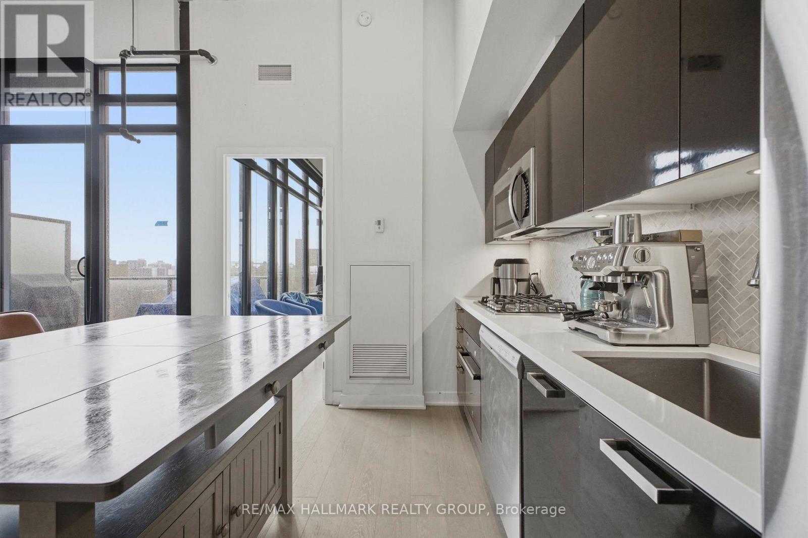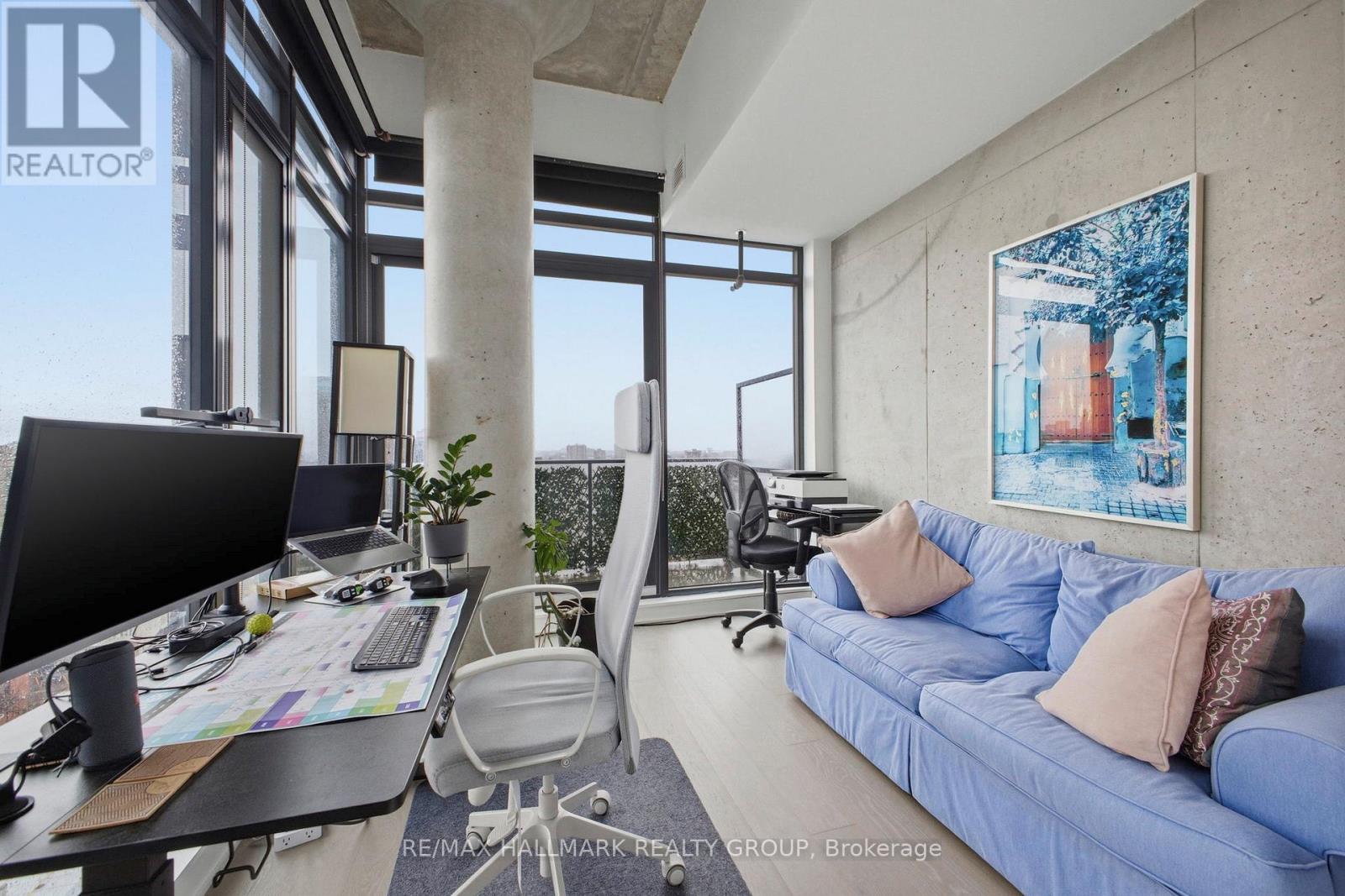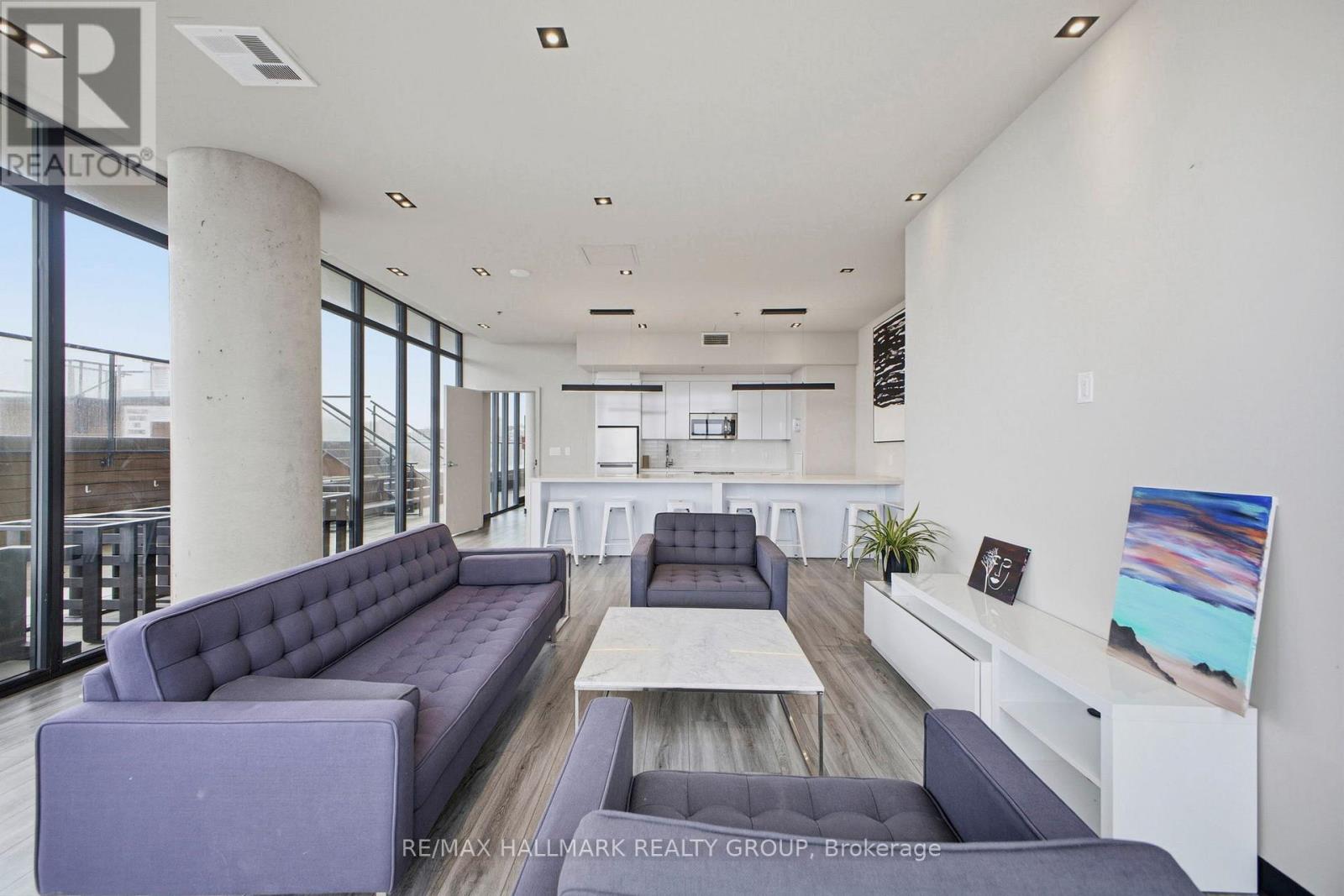 Welcome to the 10th floor of 203 Catherine. This bright and modern 2 bedroom, 1 bathroom condo features floor to ceiling windows, exposed concrete accents, hardwood flooring, in unit laundry, and two private balconies with city views. The kitchen offers quartz countertops and stainless steel appliances, while both bedrooms include generous closet space and a sleek loft style feel. The balcony includes a gas hook-up for a bbq. SoBa Condos offers excellent amenities including a spa pool, Skygarden patio, party room, concierge, and security. Ideally located steps to Centretown, Little Italy, Lansdowne, and the ByWard Market, with easy access to restaurants, cafés, parks, shopping, and transit.Water and heat are included in the rent. One underground parking space and storage locker available for an additional $225 per month. (id:64974)