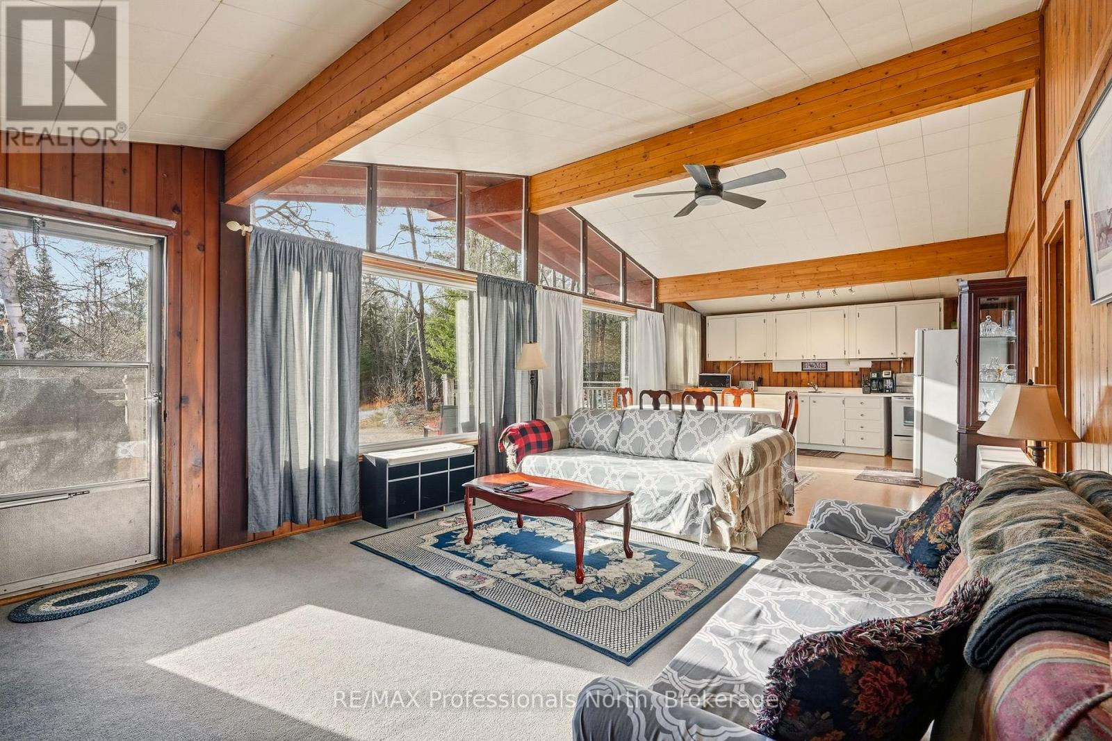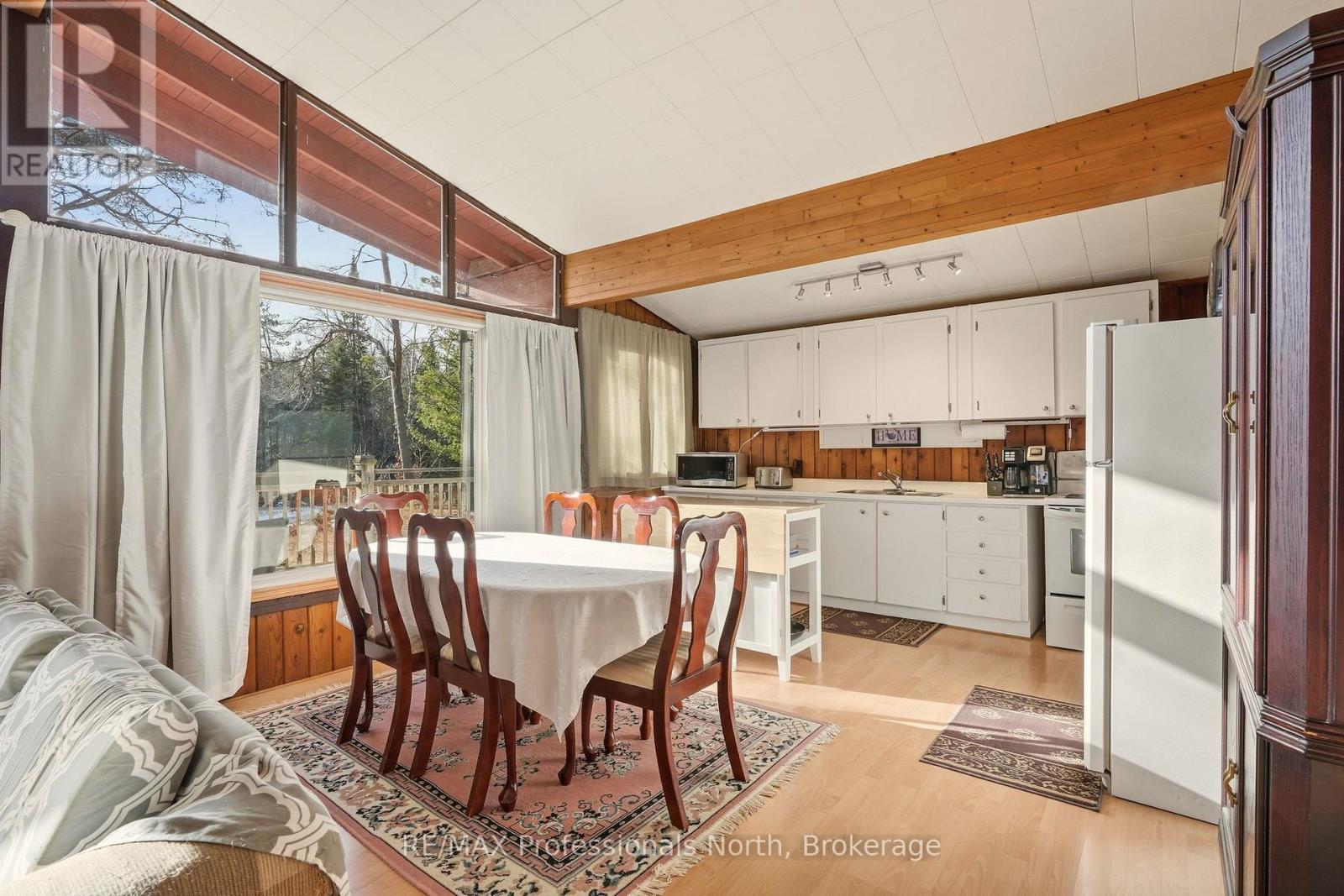 Welcome to 1001 Colony Trail, a charming Viceroy-style home just outside Bracebridge in the heart of Muskoka. Set along a quiet rural road and only 20 minutes from town, this property offers a wonderful blend of privacy, nature, and convenience. The main floor features two bedrooms plus a den and an office, along with a spacious living room highlighted by vaulted ceilings and large bright windows that fill the living area and kitchen with natural light. The partially finished lower level adds valuable space with a rec room, an additional bedroom, and plenty of storage. Sitting on just under one acre of private land, this home is perfect for outdoor enthusiasts who enjoy peaceful walks, hiking trails, or setting off on an ATV or snowmobile to explore the area. Just down the road, you have easy access to the Muskoka River where you can launch a kayak or canoe and enjoy quiet afternoons on the water. This is a warm and inviting four season retreat surrounded by classic Muskoka beauty. (id:64974)