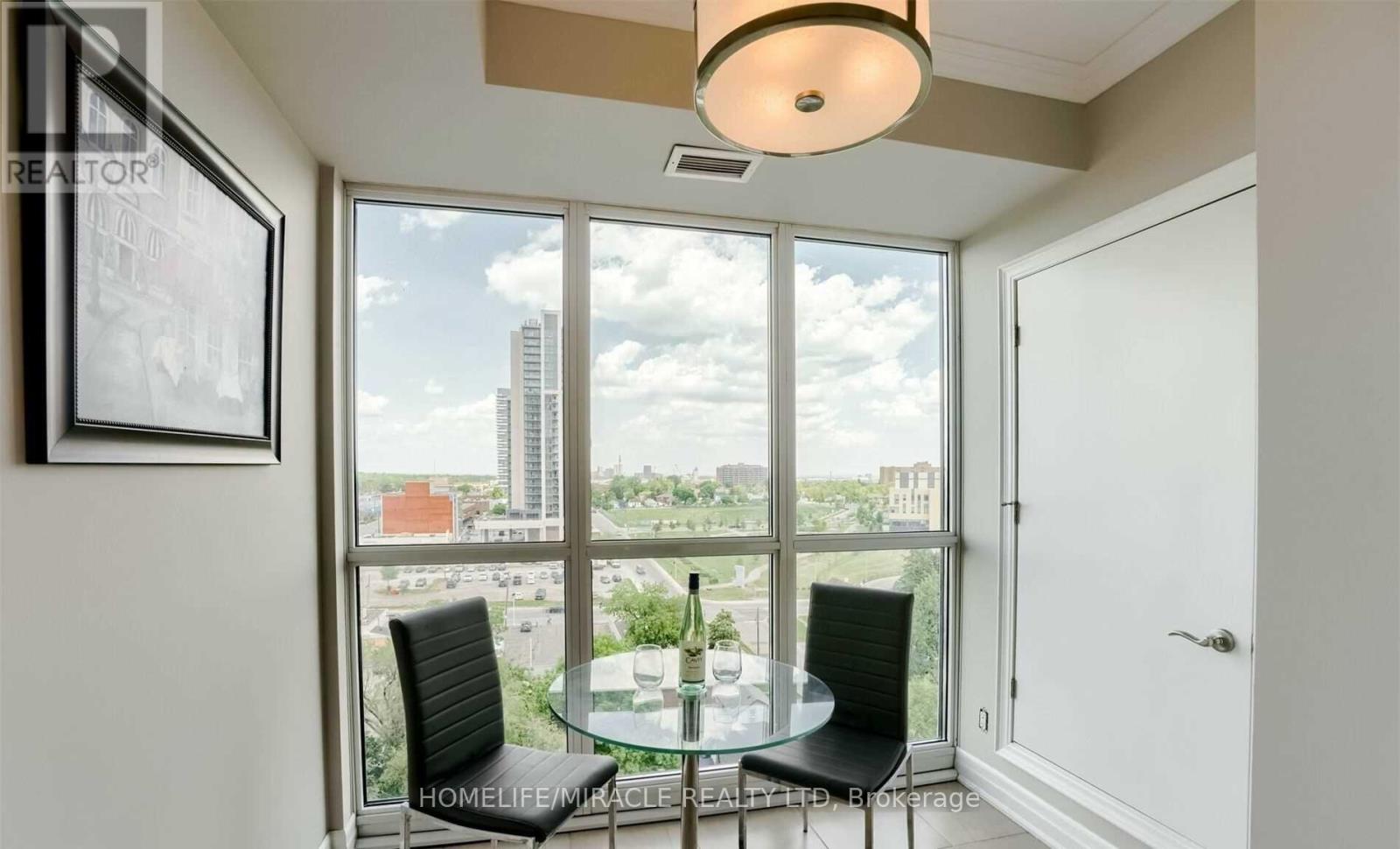 Stunning and spacious 2 Bdrm Den Corner Unit w/ A wraparound Balcony & wonderful views of Downtown Brampton. Large Open Concept, w/FL to Ceiling Windows & Lots of Natural Sunlight. New Vinyl Flooring, New Vanities In Both Bathroom. Large & Well Laid Out With Bat In Kitchen, Granite Countertops & Breakfast Bar, Over-Looking the Living & Dining Area. Master Bdrm w/Ensuite & W/I Closet. Entry to Unit Has A Den. Easy Access To Hwy 410 & Public Transit, GO station. (id:64974)