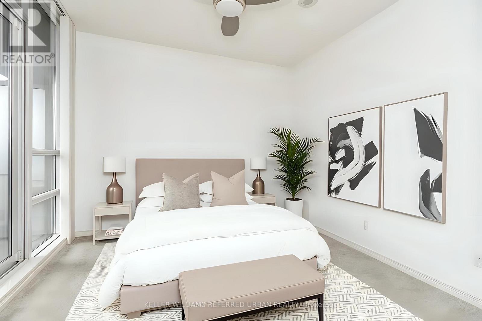Experience elevated waterfront living in this rarely offered stunning corner suite in the heart of vibrant Mimico, offering breathtaking panoramic views of the lake, Humber Bay Park, and spectacular evening sunsets that create an unforgettable back drop both day and night. this bright and beautifully appointed residence features 2 spacious bedrooms, 1 full bathroom, parking, and a locker, with expansive windows that fill the suite with natural light throughout the day. The thoughtfully designed open-concept living and dining area offers an ideal balance of comfort and sophistication, creating an inviting space for both entertaining and everyday living. Enjoy refreshing cross-breezes, incredible panoramic views, and access to exceptional building amenities including a 24-hour concierge, all within a quiet, well-managed residence surrounded by parks, waterfront trails, and green space. Perfectly positioned for convenience, this sought-after location offers easy access to public transit and downtown Toronto while allowing you to enjoy the comfort of waterfront living just outside the core. Steps to local cafes, restaurants, and everyday essentials, this is city living with a more relaxed lakeside atmosphere. (id:64974)
