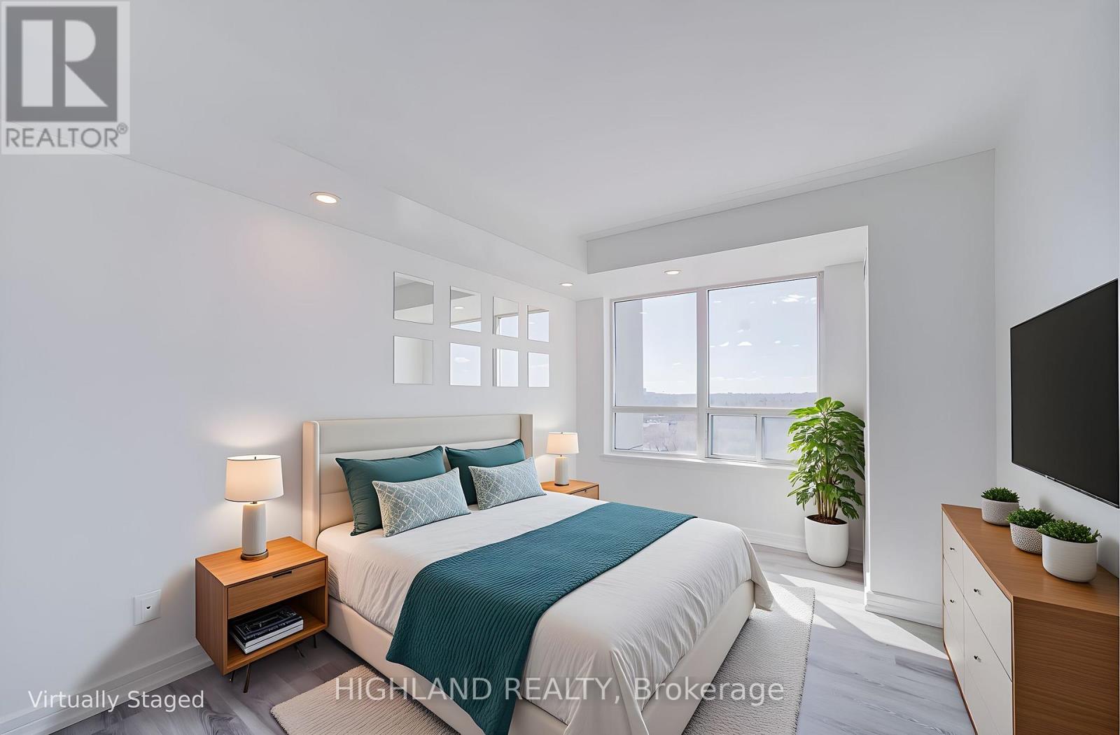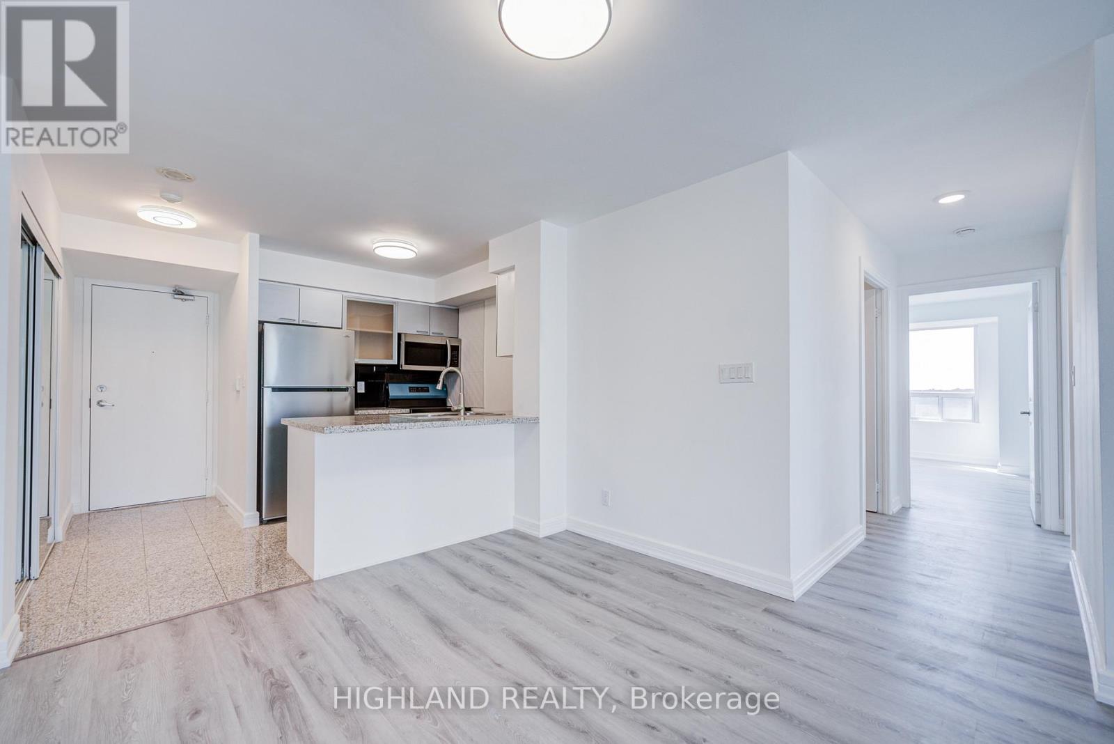 Welcome to The Residence of Avondale by Shane Baghai, ideally situated in the prestigious Yonge & Sheppard corridor. This beautifully renovated 2-bedroom, 2-bathroom suite offers a 850 sq.ft. of elegant, carpet-free living space plus a private balcony with stunning views of the downtown Toronto skyline. Thoughtfully designed with a bright and functional layout, the unit features newly installed vinyl flooring, freshly painted interiors and spacious rooms ideal for both everyday living and entertaining. The modern open-concept kitchen is appointed with granite countertops, stainless steel appliances, a stylish backsplash, and a convenient peninsula island. The primary bedroom serves as a private retreat, complete with a 4-piece ensuite, custom closet organizers, and a desirable corner layout with windows on two sides, allowing for abundant natural light. The second bedroom is well-proportioned with ample storage. Both bathrooms have been upgraded with new vanities & new mirrors, enhancing the suite's contemporary appeal. Additional highlights include brand new appliances, in-suite laundry, one parking space, and a locker. Maintenance fee includes all utilities (heat, hydro, and water), offering exceptional value and ease of ownership. Residents enjoy access to a full suite of luxury amenities, including an indoor pool, hot tub, sauna, fully equipped fitness center, party room, guest suites, library, meeting room, outdoor BBQ area, and 24-hour concierge service. Unbeatable location just steps to Yonge & Sheppard subway station, minutes to Hwy 401, and surrounded by top-tier amenities including restaurants, shopping, parks, schools, and a 24-hour Rabba grocery store at your doorstep. A rare opportunity to own a turnkey, newly renovated suite in one of North York's most sought-after communities. (id:64974)