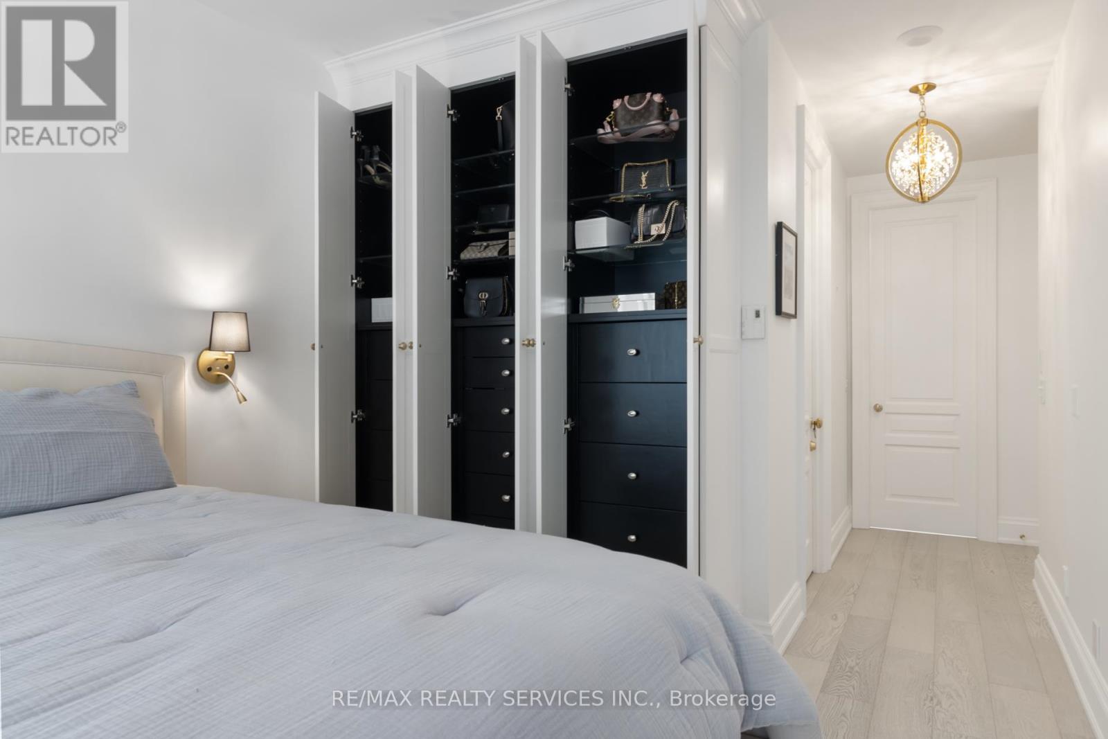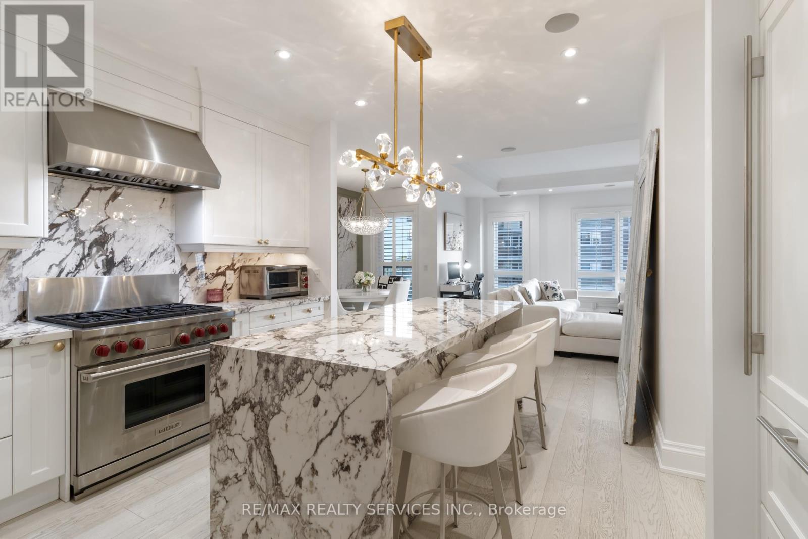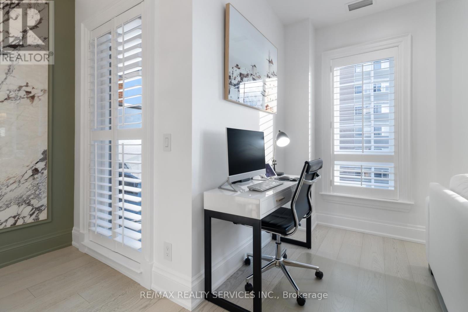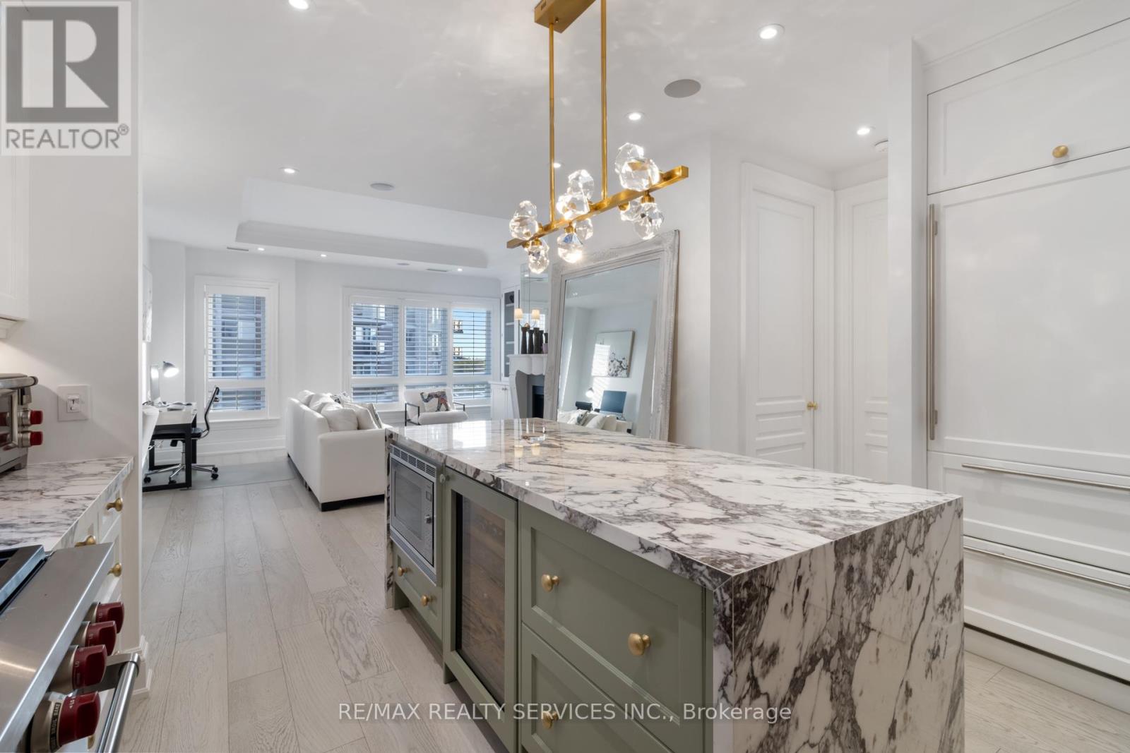Breathtaking Lower Penthouse with 2 side-by-side parking spaces equipped with EV charging & oversized locker. Custom upgrades throughout with soaring ceilings & open layout. Downsview kitchen with Wolf/Sub-Zero appliances. Primary suite offers walk-in closet & spa-like ensuite with heated floors. Private den with custom Murphy bed, currently used as 2nd bedroom. Spacious dining area opens to balcony with stunning water views. Luxury living at the downtown waterfront. (id:64974)