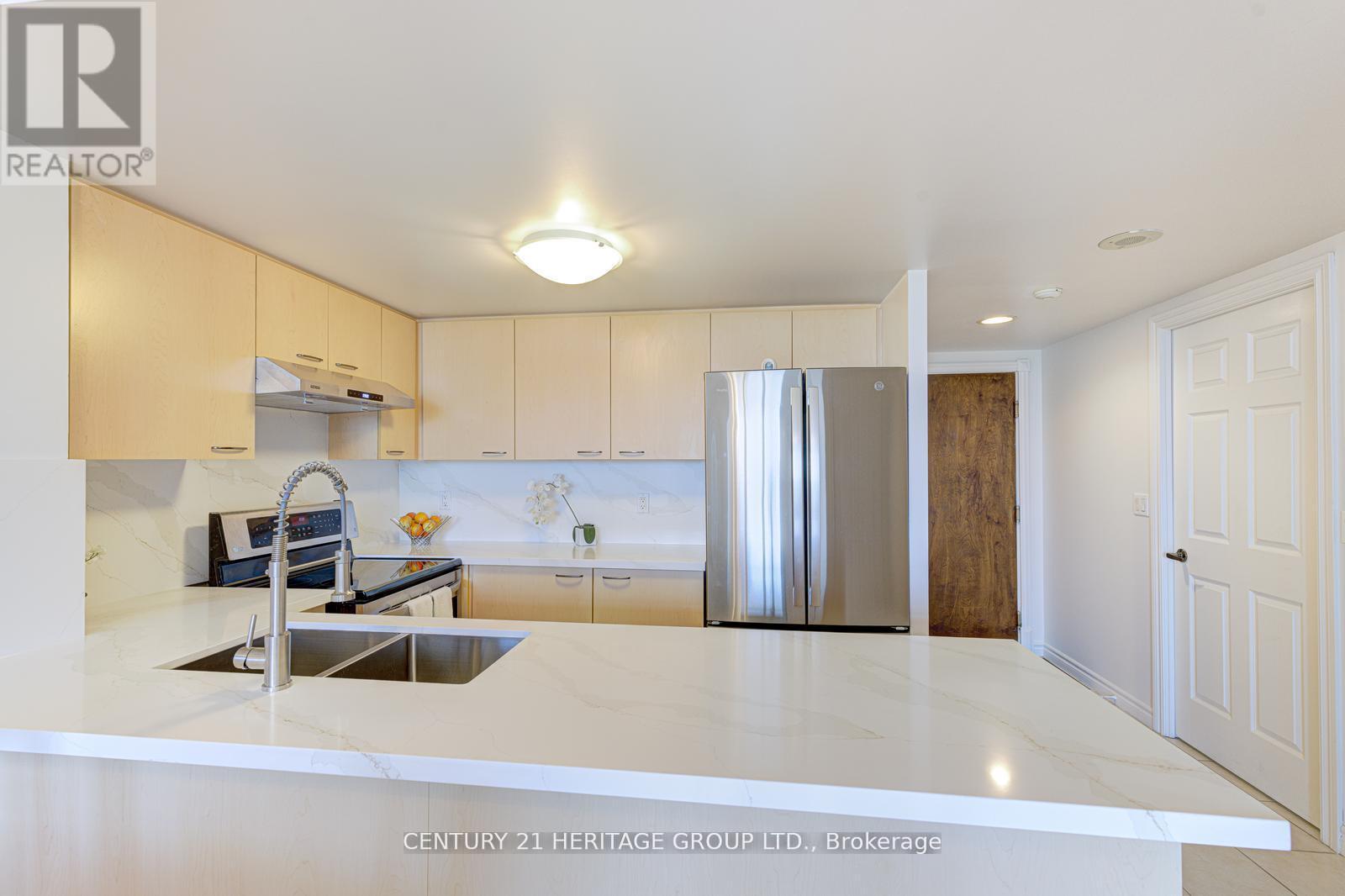 Beautiful Sun-Filled and Bright Unobstructed 1 Bedroom, 1 Bathroom Unit at Derby Tower in Prime Highly Accessible and Desirable Location. Unit has been updated. Enjoy modern kitchen with brand-new quartz counter top & backsplash, new stainless Steel Appliances, Bathroom renovated from top to bottom, freshly painted throughout and much more. Living room has a nook with a wood panel accent wall perfect for working from home. Oversized walk-in closet in the primary bedroom. Quiet Building with Great amenities including gym, Sauna, party room, 24hr concierge, ample visitor parking, short distance to Fine restaurants, shopping center, grocery stores, Highway 407, 404 & viva public transportation. Heat, hydro, water, and 1 parking space included in maintenance cost. (id:64974)