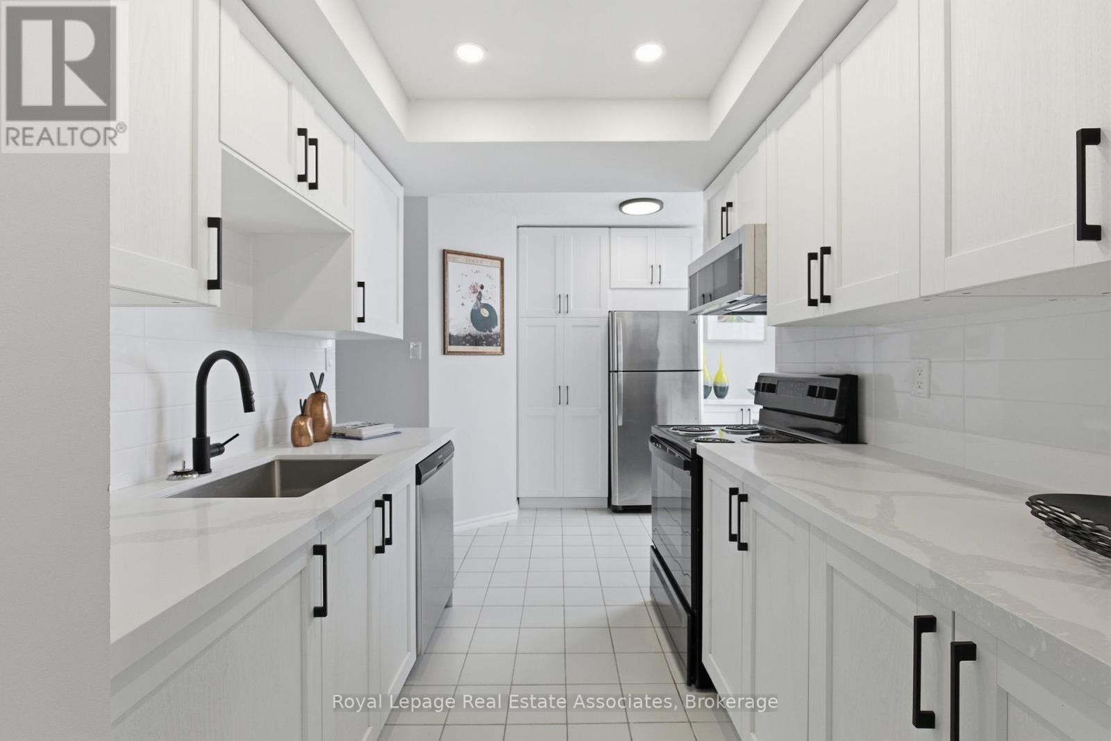 Perfect for multigenerational families or downsizers! This newly renovated condo offers low-maintenance living in a professionally managed building with 24-hour concierge and established bylaws. The bright and spacious corner unit features 1416 sq. ft. (MPAC), 3 bedrooms, 2 full bathrooms, a den/sunroom, and in-suite laundry. Maintenance fees include heat, hydro, water, cable, and internet - offering excellent value and simplified monthly budgeting! Amenities include a gym, sauna, outdoor pool, squash and basketball courts, and party room to maintain an active lifestyle. Bylaws that include maximum occupancy limits based on unit size and a no-pet policy preserve the enjoyment of residents*. Located at Steeles & Ray Lawson, just north of the Mississauga border, the building is mostly surrounded by low-rise detached and townhomes. Grocery stores, restaurants, and shops are within walking distance. Minutes away are 22 Division Police Station, Brampton Courthouse, and the future Hazel McCallion LRT line - reflecting ongoing infrastructure investment in the area. Recent updates include a new kitchen and some appliances (2025), new flooring throughout (no carpet, 2025), fresh paint (2026), new hardware and light fixtures (2025), and updated bathrooms (2026). One parking spot included. *Ask your agent for details. (id:64974)