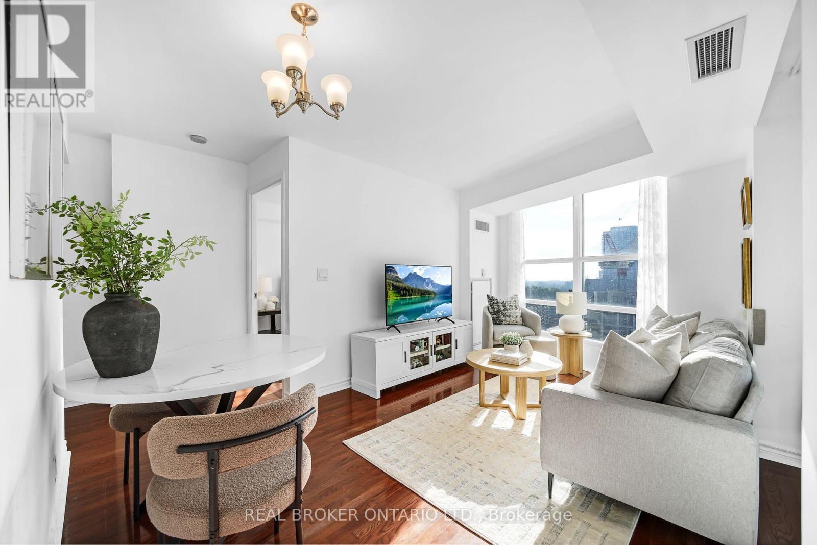 Immaculate Daniels-built corner suite featuring 2 spacious bedrooms and 2 full bathrooms, ideally situated in the vibrant core of Mississauga. Just steps from Square One Mall and the upcoming LRT line, this luxury condo showcases upgraded hardwood flooring throughout and breathtaking views from the balcony, living room, kitchen, and both bedrooms. The thoughtfully designed layout places bedrooms on opposite sides for added privacy, while the eat-in kitchen offers a welcoming breakfast area. The primary ensuite features a relaxing spa-style soaker tub, perfect for unwinding after a long day.This well-maintained building is known for its low maintenance fees and exceptional amenities, including a saltwater indoor pool, modern fitness centre, 24-hour concierge, guest suites, party and meeting rooms, library, billiards, recreation room, and ample visitor parking. A convenient variety store in the lobby adds everyday ease.Unbeatable central location within walking distance to public transit, future LRT, schools, parks, cafés, shops, restaurants, plazas, and office towers. Nearby landmarks include Celebration Square, Living Arts Centre, City Hall, and theatres. Quick highway access (403/QEW/427/401/407) plus GO train and bus services make commuting a breeze. (id:64974)