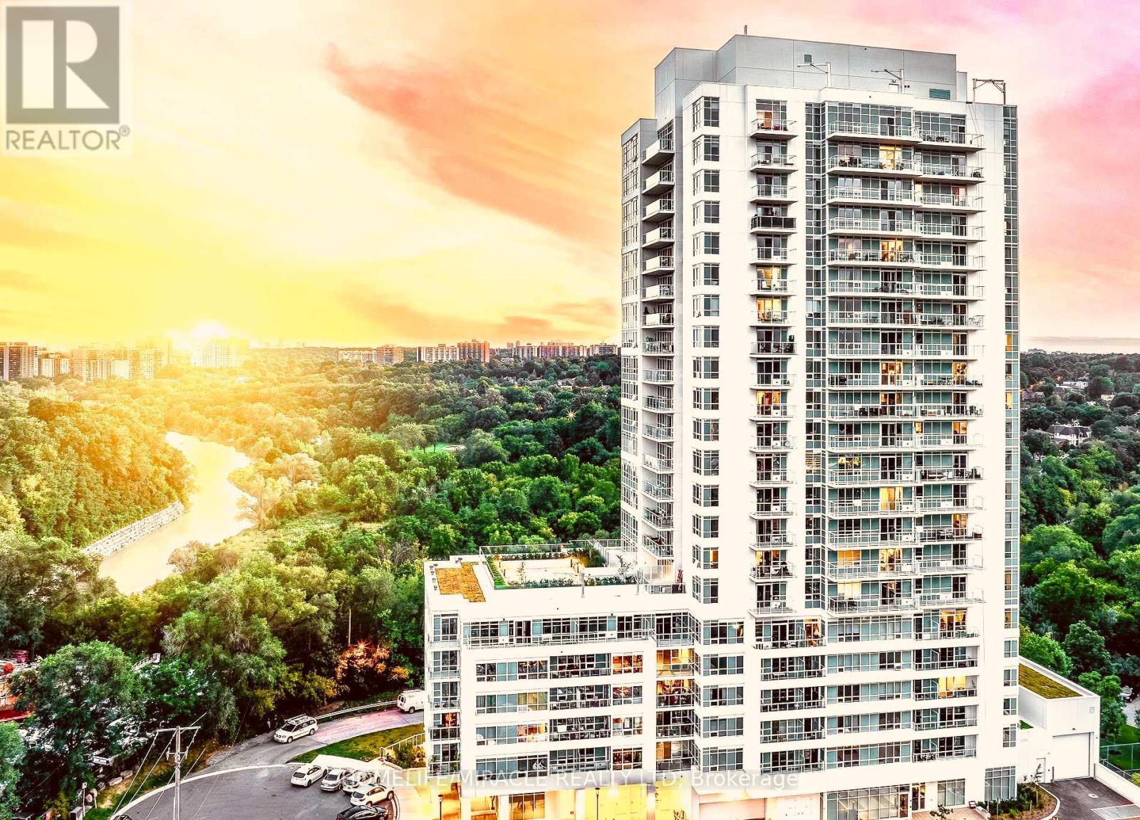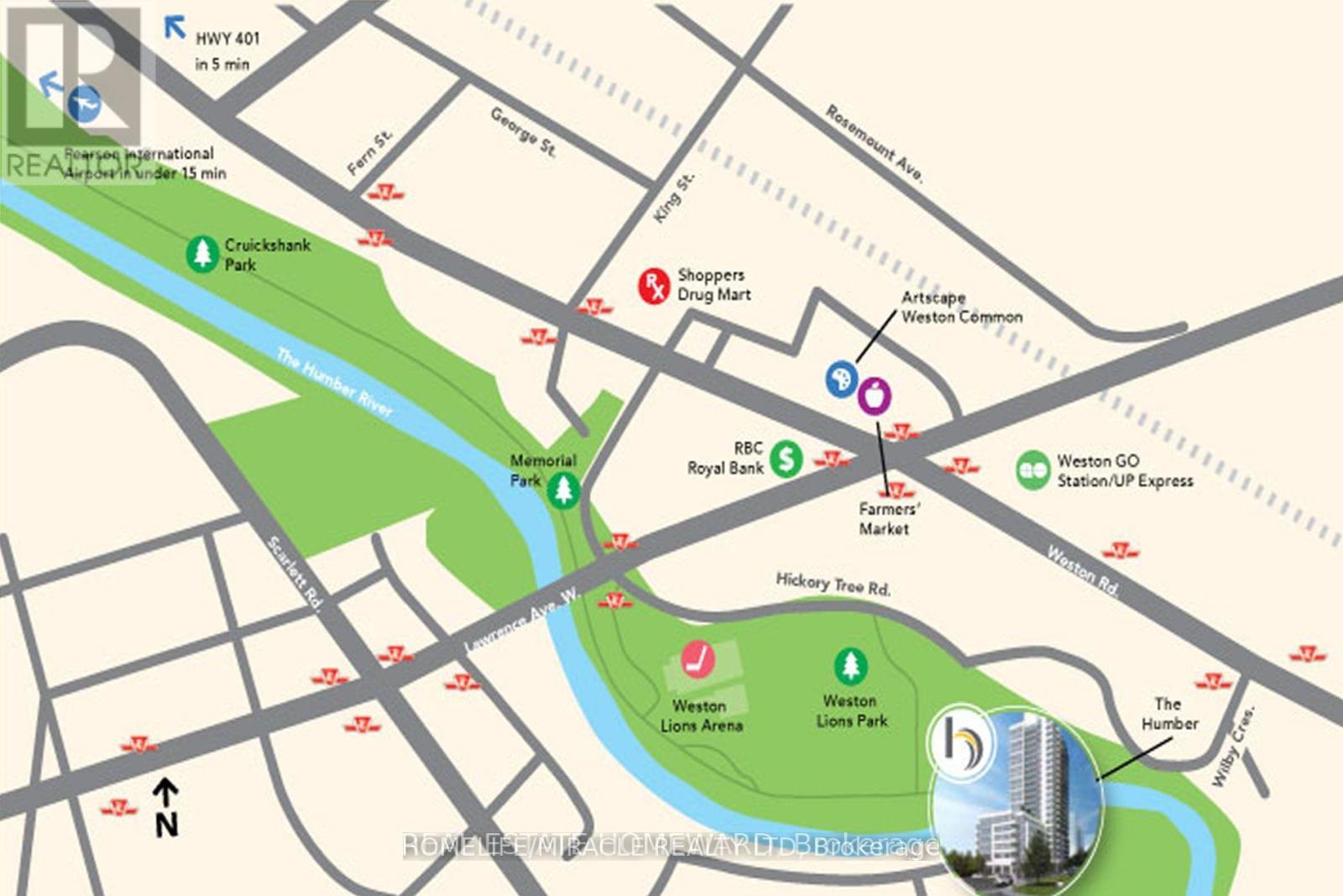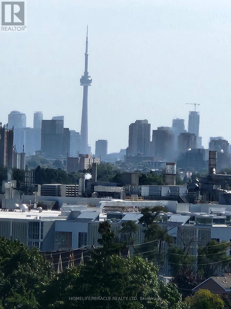 LOCATION..LOCATION..LOCATION... Live in a modern, upgraded unit in a new building with a gorgeous view! Nestled in the shores of the Humber River this open concept, 1 bedroom+den, 1 bathroom unit offers an upgraded kitchen with laminate floors thru-out, a large 110sq.ft balcony and 583sq.ft of a perfectly designed & highly desirable floor plan. The open concept design allow for a great functional layout with an interactive living space to enjoy the unobstructed Humber River & Raymore Park from the comfort of your living & bedroom. Large windows allow an ample of natural light to brighten up your day thru-out the day. The large balcony not only gives a soothing breeze of the Humber River & the Park but also a great panoramic view of the skyline. Area Amenities include steps to Weston Go, 401, 400, UP Express from Airport to Union, shops, schools, parks, river, bike trails & many more. A Walker's Paradise @92 out of 100.Building Amenities: Lounge/party room, BBQ, gym, bike storage, **1 parking & 1 locker included** (id:64974)