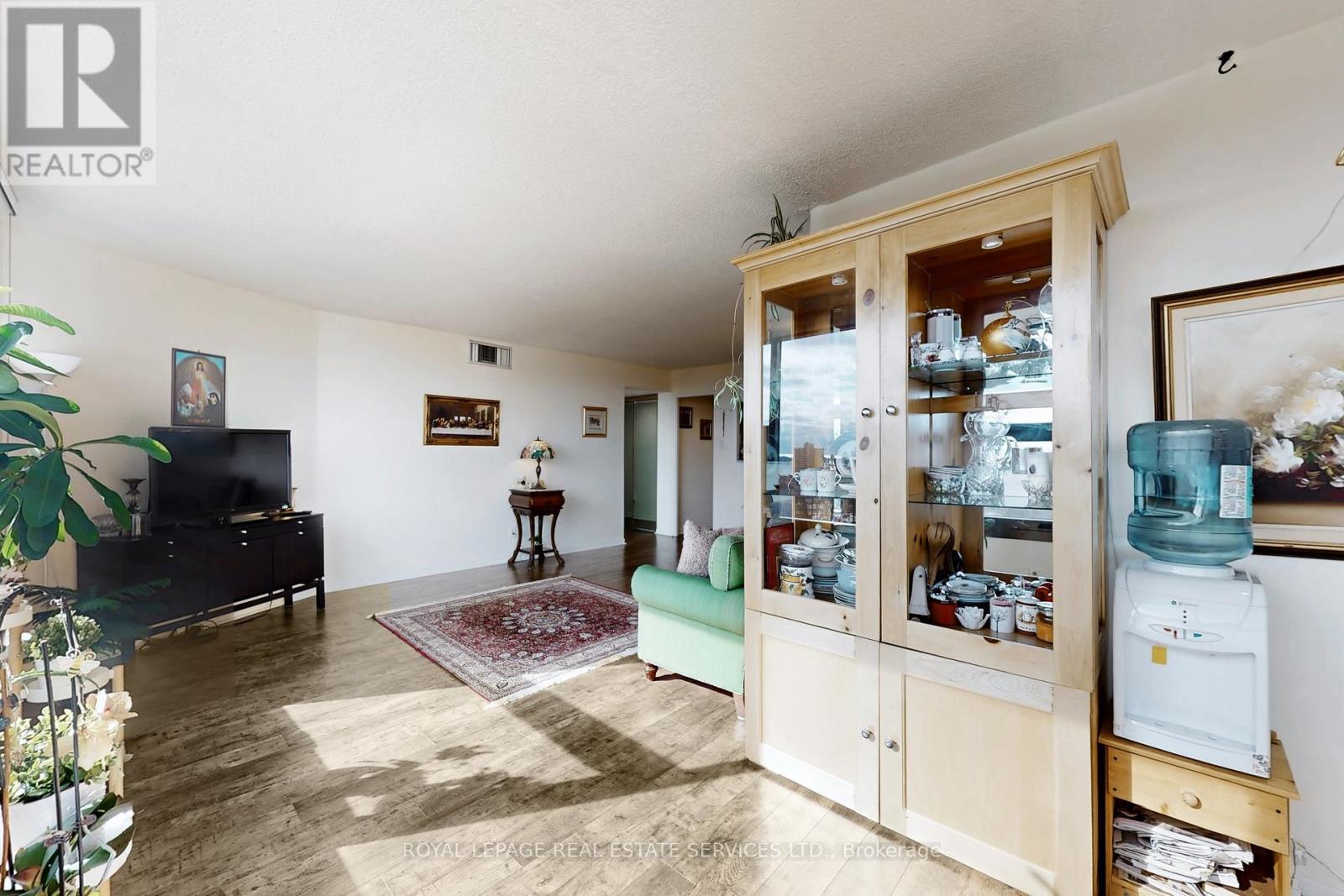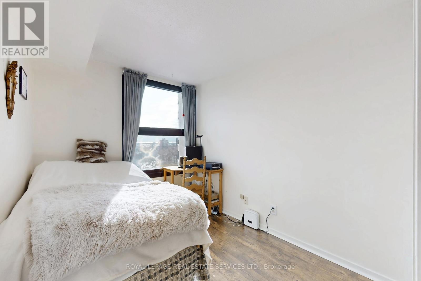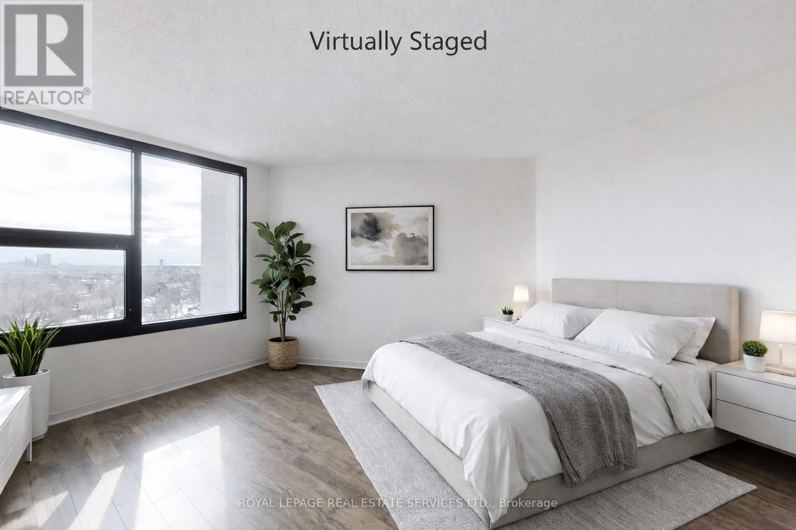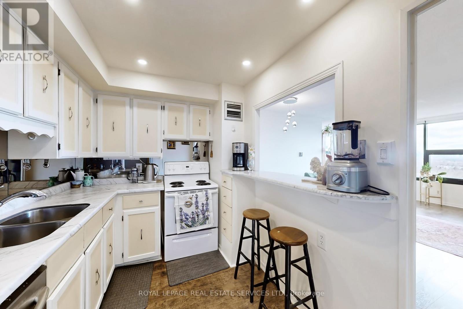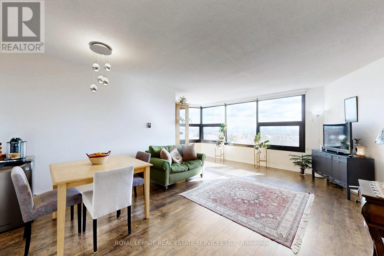 Welcome to your move-in ready, sun-drenched urban sanctuary featuring breathtaking panoramic views of the Toronto skyline. This turnkey, carpet-free home boasts premium laminate flooring throughout, providing a sleek and modern aesthetic that is as durable as it is stylish. The open-concept living area is designed for seamless entertaining and flows beautifully into the kitchen, which features a convenient breakfast bar for casual dining. While the updated washroom offers contemporary finishes, large windows in every other room flood the living spaces with natural light. Adding to the property's incredible value, this unit comes complete with one dedicated parking space and a storage locker. Experience ultimate peace of mind with an all-inclusive lifestyle, as the maintenance fees cover your heat, hydro, and water, along with unlimited Bell Fibe internet. Residents also enjoy an incredible suite of amenities including a 24-hour concierge, a rooftop deck, an indoor car wash with a car vacuum and tire inflator, a general convenience store, a pickleball court, shuffleboard, a billiard room, and even a woodworking shop. Whether you are watching the city lights at night or enjoying the airy flow of the interior during the day, this unit offers the perfect blend of sophisticated design and effortless convenience in the heart of the city. (id:64974)