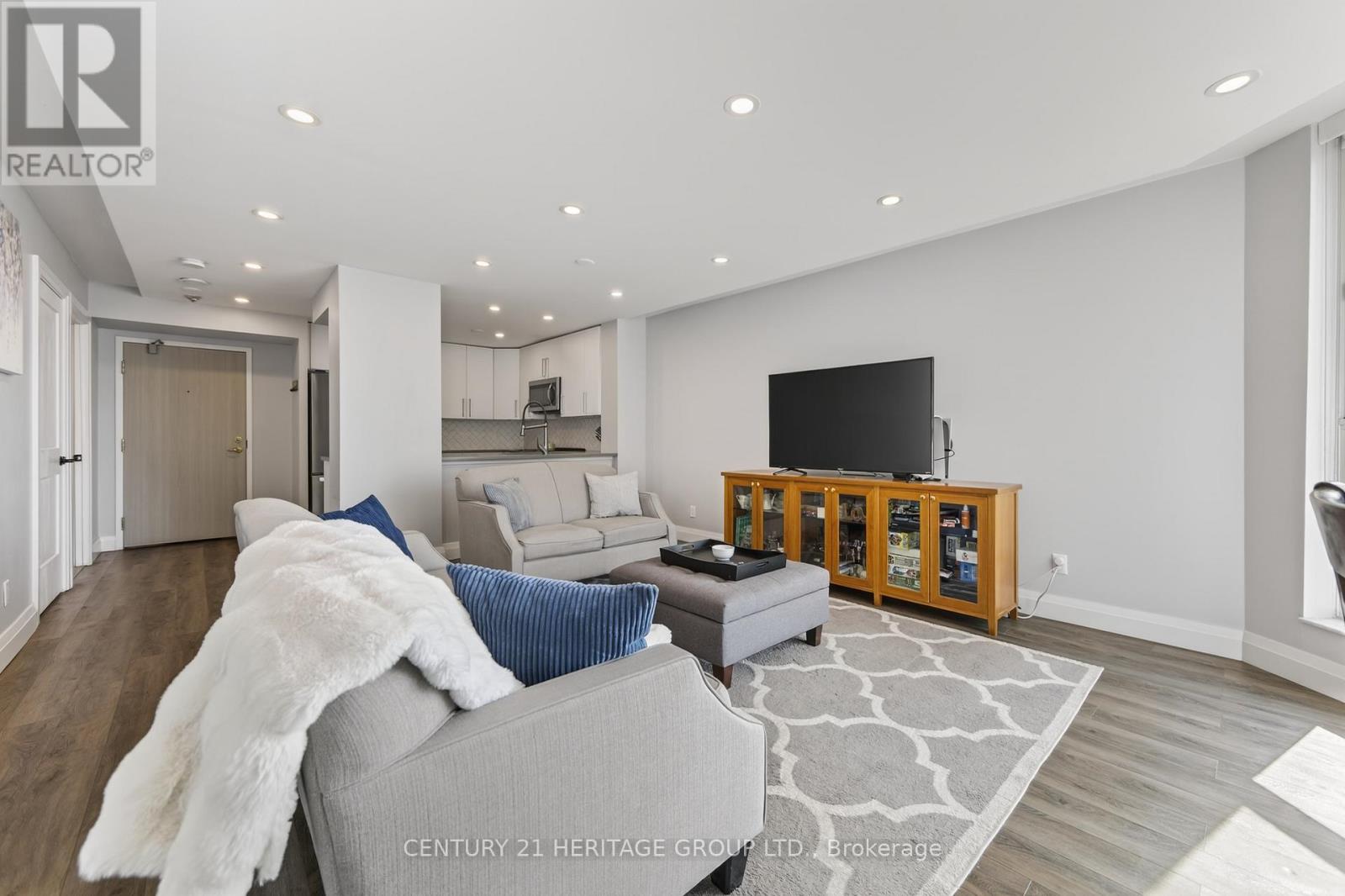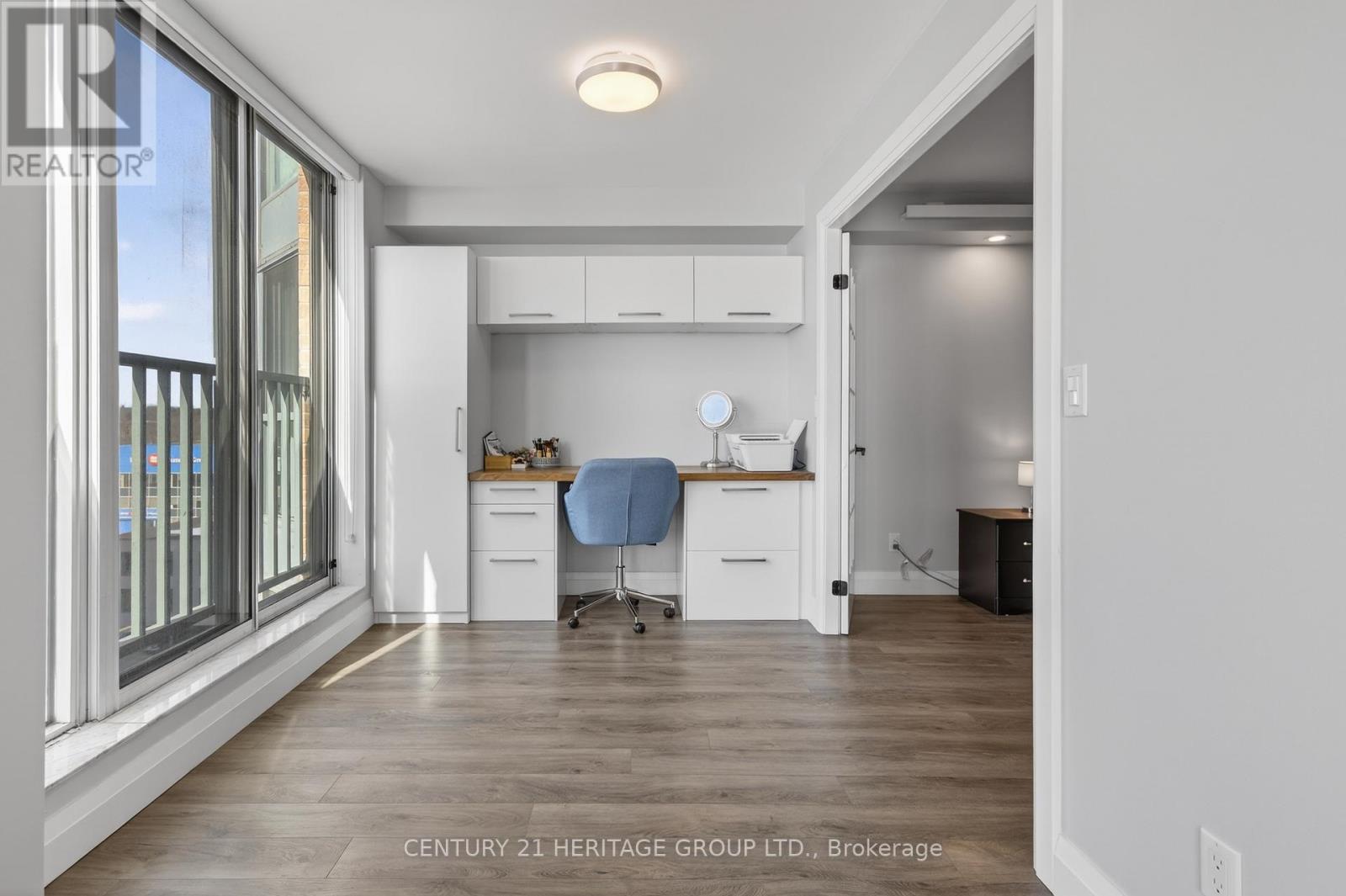 Welcome to Bayshore Landing - Barrie's Lakeside Lifestyle Awaits! Experience the best of lakeview condo living in this beautifully updated 1+1 bedroom, 1-bathroom suite overlooking the shimmering waters of Kempenfelt Bay. With 855 sq ft of bright, open-concept living space, this home feels spacious and inviting, featuring large windows, no carpet throughout, and thoughtfully designed built-in storage and closet systems. The modern kitchen flows seamlessly into the living and dining areas-perfect for entertaining or enjoying quiet evenings by the view. The versatile den offers an ideal space for a home office, guest area, or cozy reading nook. Bayshore Landing provides resort-like amenities including a saltwater indoor pool, fully equipped gym, party room, underground parking, car wash area, visitor parking, storage locker, and bike storage. This clean, well-maintained building offers comfort, convenience, and community right in the heart of Barrie's vibrant downtown-just steps to waterfront trails, cafés, and shopping. Move-in ready and meticulously maintained, this condo is the perfect blend of style, function, and location. (id:64974)