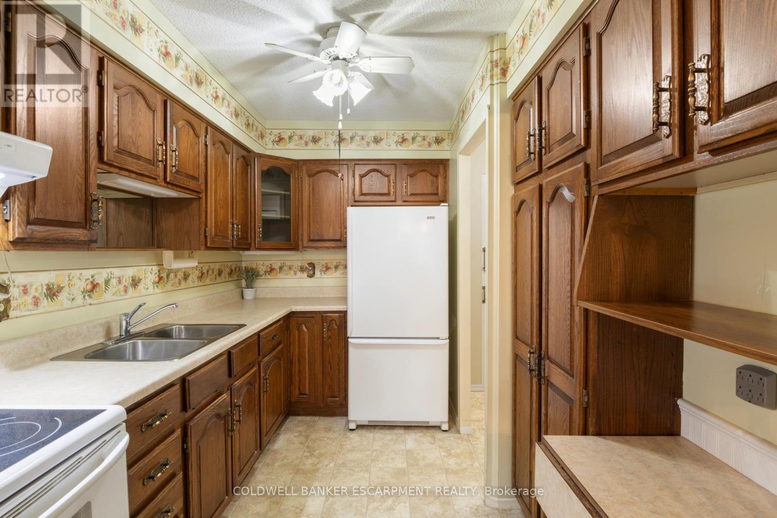 Ideally situated just steps from Milton's vibrant downtown and the scenic walking trails around Mill Pond, this bright and spacious, well-maintained 3-bedroom, 2-bathroom condo offers over 1,130 sq. ft. of living space. A perfect blend of comfort, functionality and value in one of Milton's most convenient neighbourhoods. Inside, you'll find a spacious living and dining area that's ideal for entertaining or relaxing. Incredible sunsets and Escarpment views from the balcony. The kitchen features classic solid wood cabinetry, ample counter space and a practical layout that connects easily to the rest of the home. A separate laundry room (with less than 2 year old washer and dryer) offers excellent storage for daily essentials and extras. Down the hall, a 4-piece bathroom with a full bathtub serves the secondary bedrooms, while the primary suite includes a private 2-piece ensuite and generous closet space. Two additional bedrooms provide flexibility for guests, children, or a home office. This unit's thoughtful layout, generous room sizes, and abundance of natural light make it feel like home from the moment you walk in. Located in a quiet, well-managed building with friendly residents and unbeatable access to downtown amenities, transit, shopping and Milton's parks and trails, this condo offers both comfort and lifestyle. Condo fee includes: Heat, Hydro, Water, Cable TV and Internet! The building and common areas have been beautifully maintained with recent upgrades, including a fully renovated parking area (2025), new balcony railings and roof replacement (2023). **Some photos are virtually staged** (id:64974)