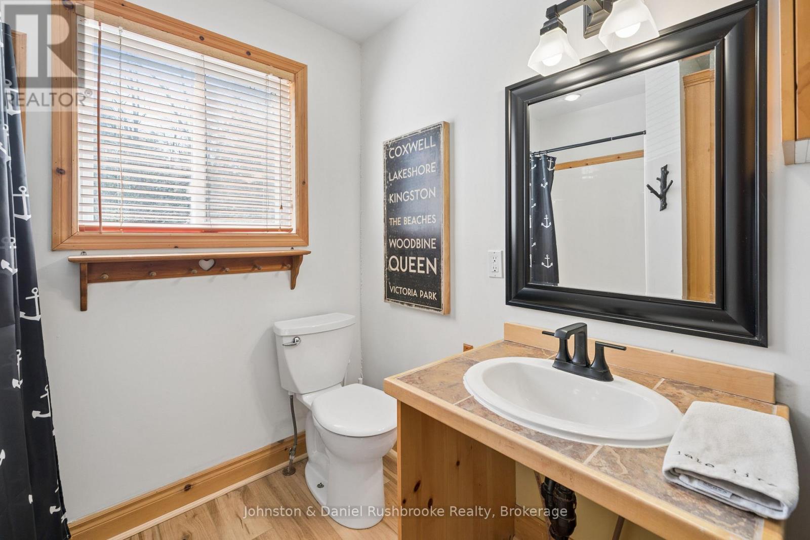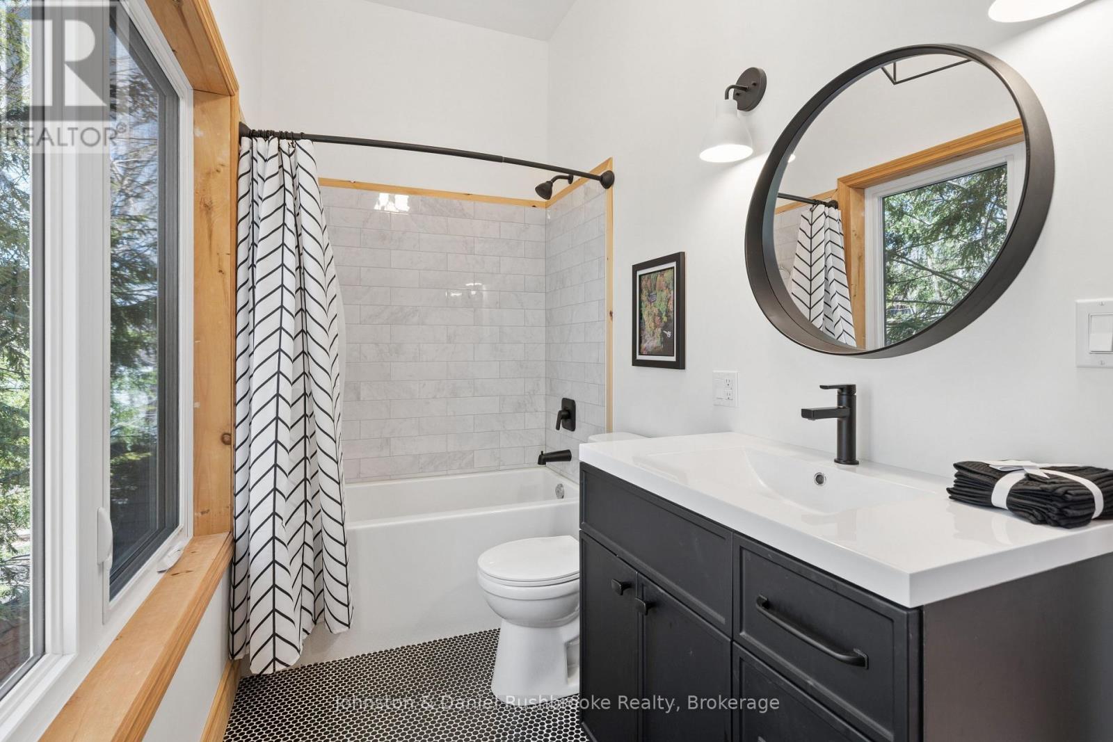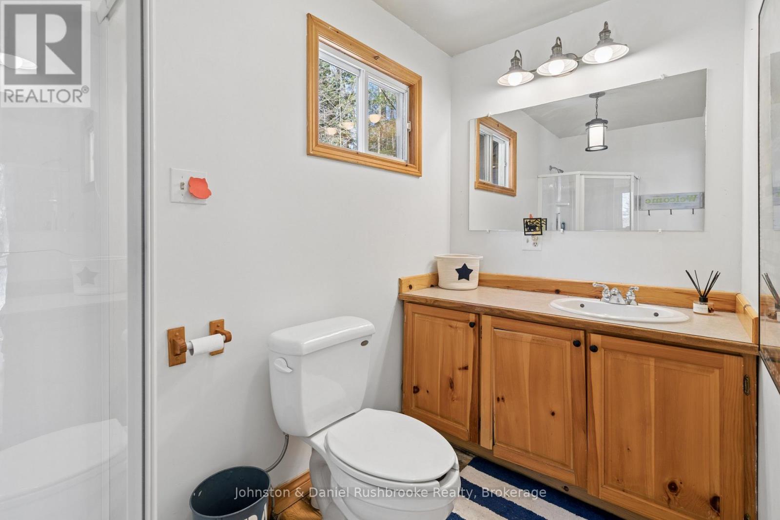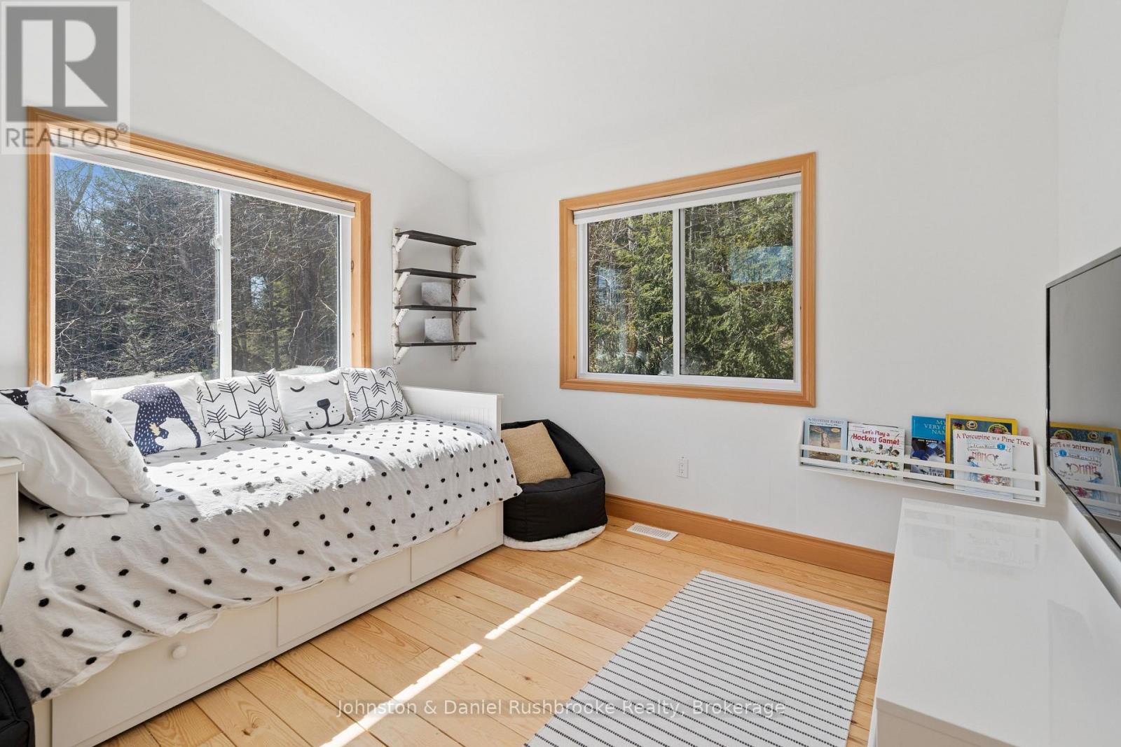 This beautiful four-season retreat occupies a coveted stretch of shoreline on the wide-open waters of Echo Bay on Moon River, a location ideal for tubing, water skiing, and wakeboarding. The level, family-friendly property provides 135' of southeast-facing waterfront, where a natural, hard-packed sandy beach offers a gentle entry for children and deeper water off the dock invites paddling, boating and swimming. Designed for relaxed cottage living, the two-storey interior revolves around an open-concept kitchen, dining, and living area. Creamy white walls, light floors, pine accents, and a centre piece propane fireplace create a warm atmosphere for entertaining. The river-facing deck extends the living space for morning coffee and barbecues, while the screened Muskoka Room remains the preferred sanctuary for sharing stories on hot summer evenings. With 4 bedrooms, a den, and 2 full bathrooms, including a private second-floor primary bedroom with a 4-piece ensuite, the layout comfortably accommodates family and friends. An alcove on the second floor with an office provides a quiet workspace next to the den. The separate bunkie with its own 3-piece bathroom is a welcome retreat for teens or guests. Outside, mature trees frame an open, level grassy areas that provide a spacious playground for children. The Moon River flows for approximately 25 km from Lake Muskoka in Bala, through a series of portages, before eventually reaching Georgian Bay. This storied waterway is lined with Precambrian rock shelves and dramatic cliffs, offering endless opportunities for hiking and paddleboarding. This quiet escape feels tucked away, yet it is located only minutes from the heart of Bala's trendy restaurants and shops, by boat or car, and a short 15-minute drive to the hub of Port Carling and premier Muskoka golf courses. Positioned roughly 1 hr 45 min from the GTA, this cherished family cottage is ready for you to enjoy this season. (id:64974)
