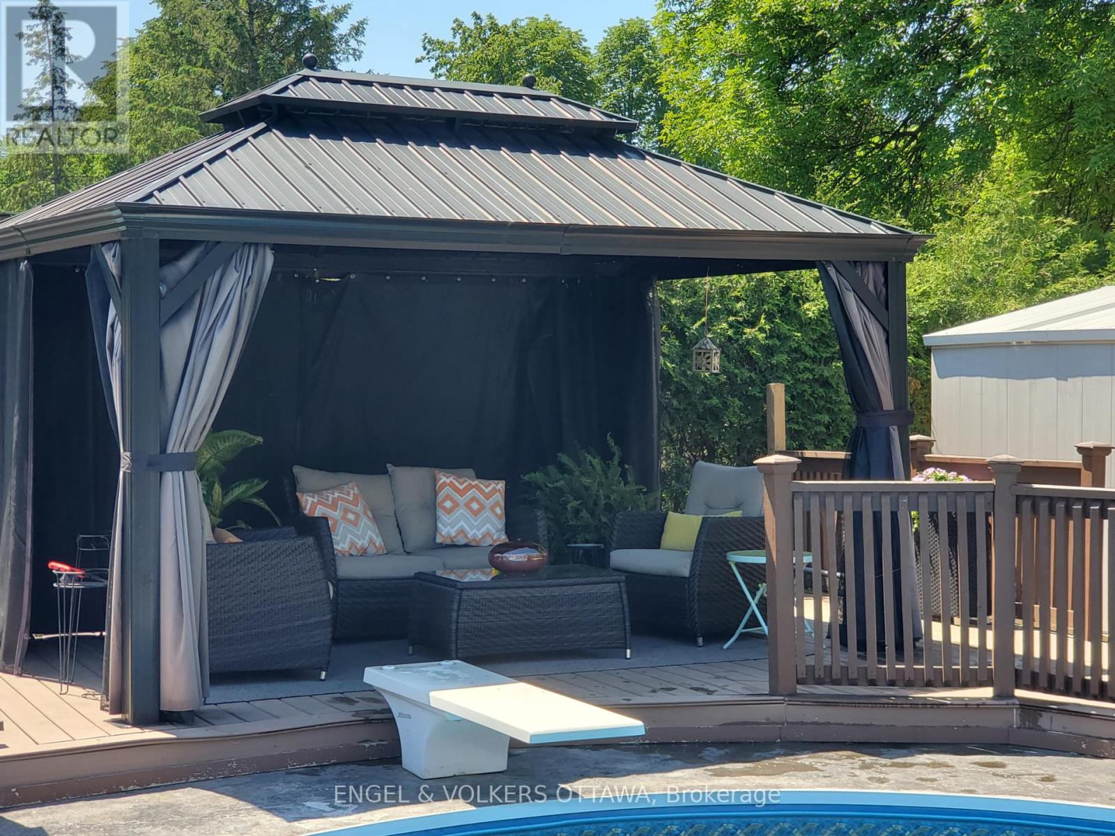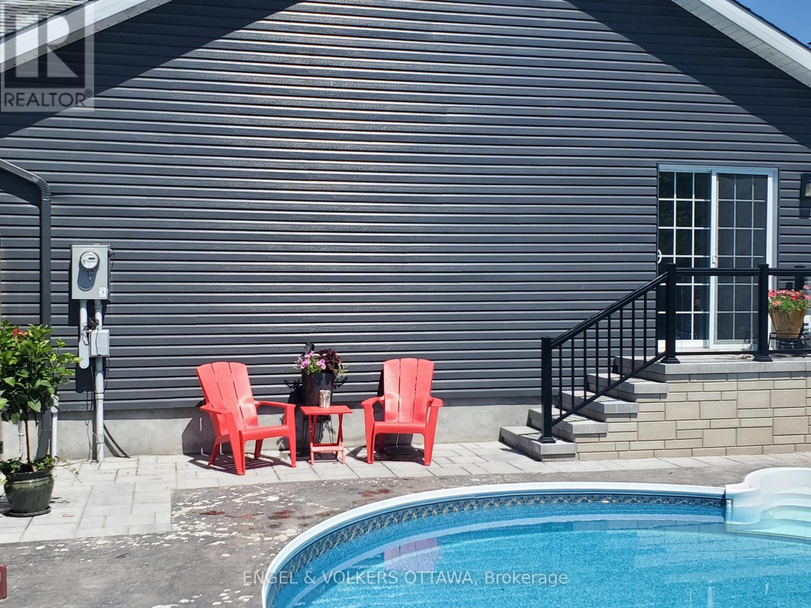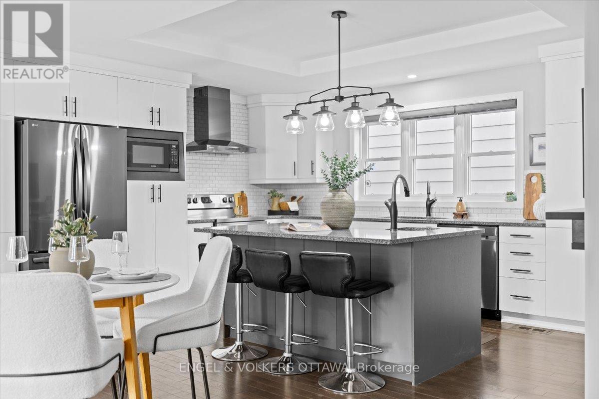 Rare opportunity to own a newer bungalow in this established west-end neighbourhood. Built in 2019, this beautifully maintained 3-bed2.5-bath home offers modern construction, thoughtful upgrades, and exceptional indoor-outdoor living on a large corner lot.The main floor centres around the heart of the home-the kitchen-designed for both everyday living and entertaining. Feat quartz countertops, newer SS appliances, large island, and abundant storage incl convenient pull-out cabinetry, this space seamlessly connects to the surrounding living and dining areas while large windows fill the home with natural light. The spacious primary bedroom includes a private ensuite with walk-in shower, while two additional bedrooms and a full bathroom complete the main level.The fully finished basement provides incredible additional living space with a large recreation area, office space, laundry room, storage areas, and a convenient two-piece bathroom. With multiple entry options, the layout offers flexibility for those exploring income potential or multi-generational living, with the possibility of a dedicated entrance. Step outside to your own backyard retreat. The professionally landscaped yard features stamped concrete, gas-heated inground pool, composite deck and fencing, and mature cedar hedges that provide exceptional privacy. A powered storage shed adds further functionality, making this outdoor space ideal for relaxing or entertaining throughout the summer months. Additional highlights include an interlock driveway and entrance, sprinkler system, finished garage with workbench and cabinetry, attic storage, and a practical mudroom. Ideally located with easy access to the 417, 416, and Ottawa River Parkway, minutes to parks, walking and biking trails, Britannia Beach, Andrew Haydon Park, Bayshore Shopping Centre, IKEA, and the future LRT station.A rare blend of modern construction, thoughtful upgrades, and an unbeatable west-end lifestyle.Dining rm photo virtually staged (id:64974)