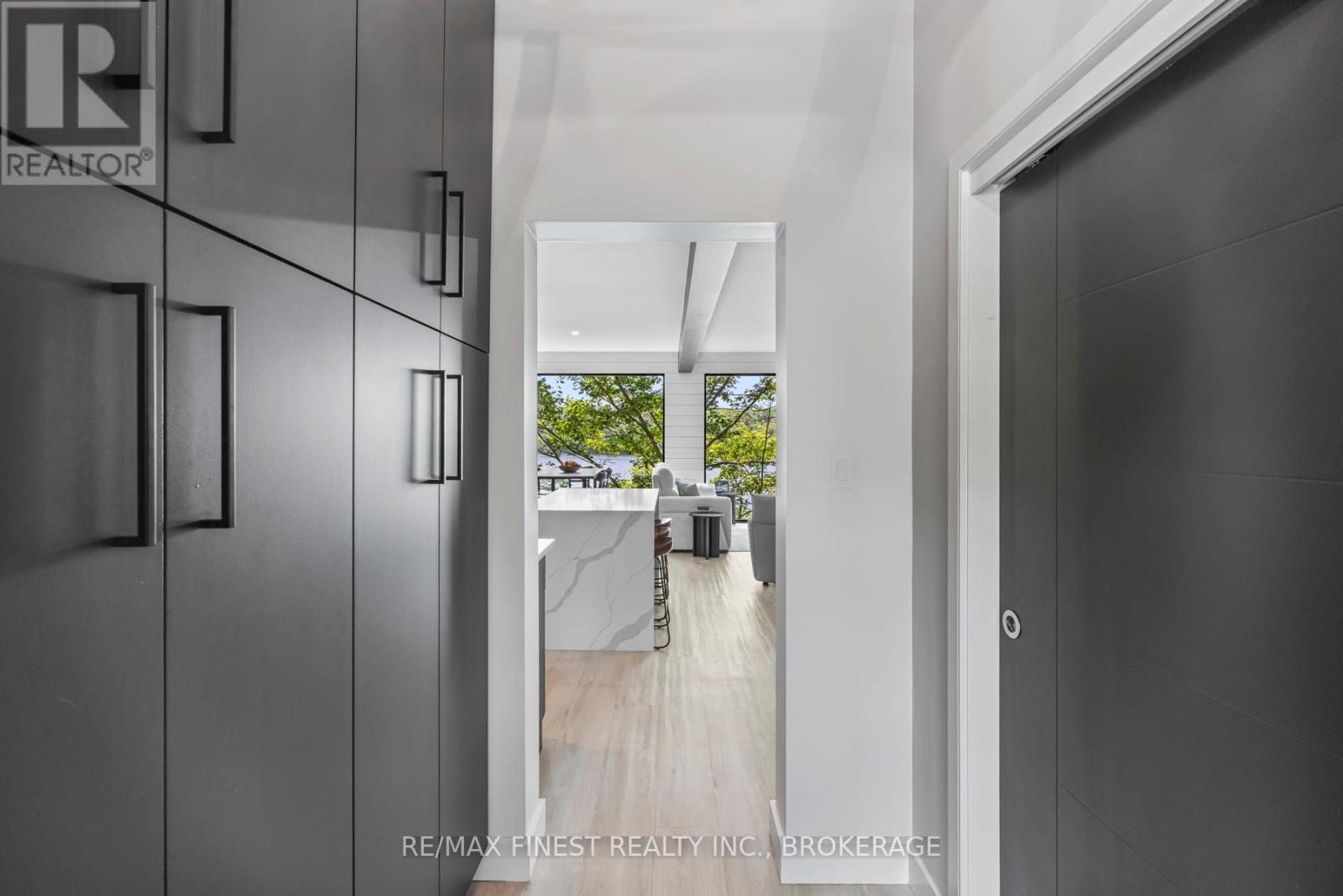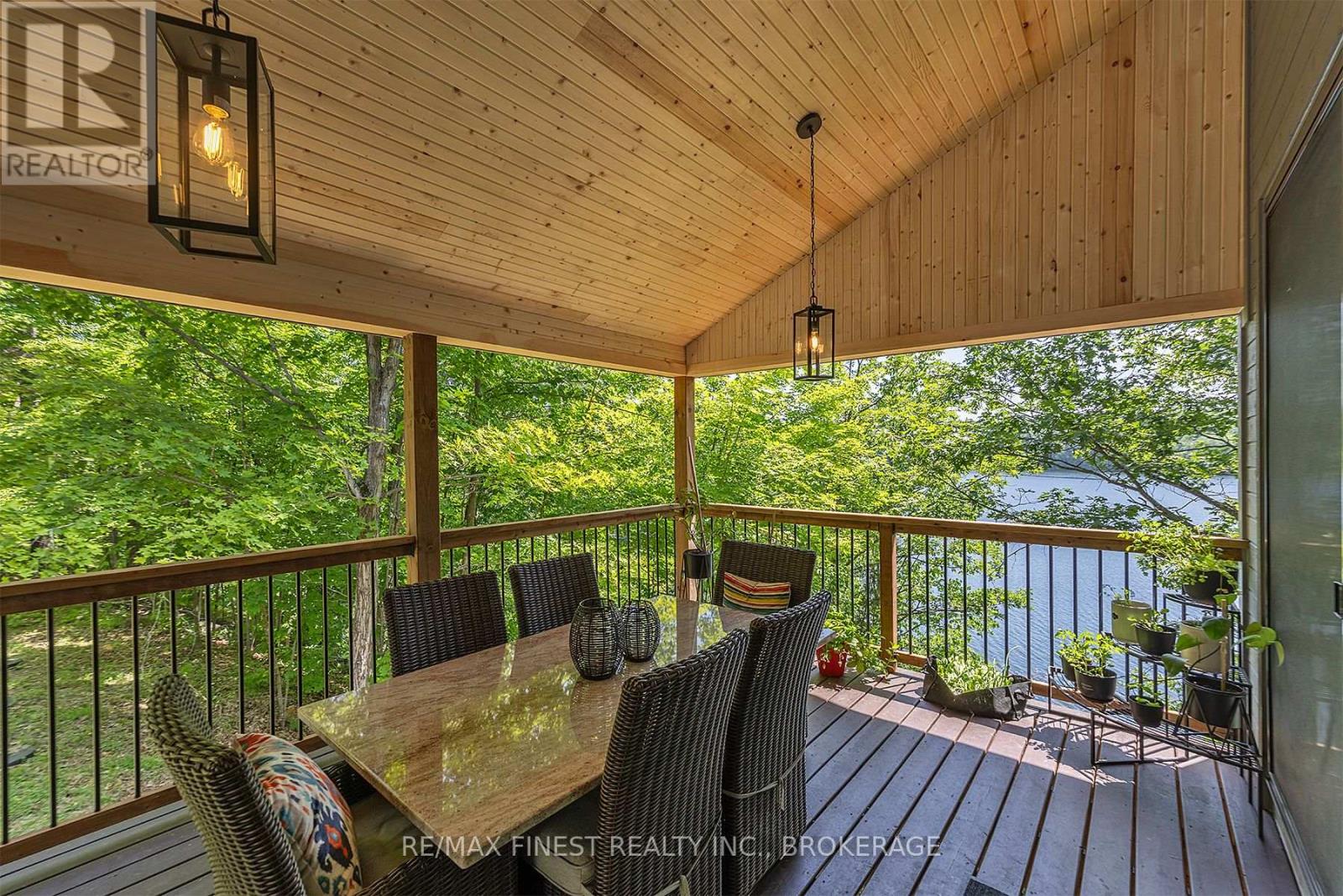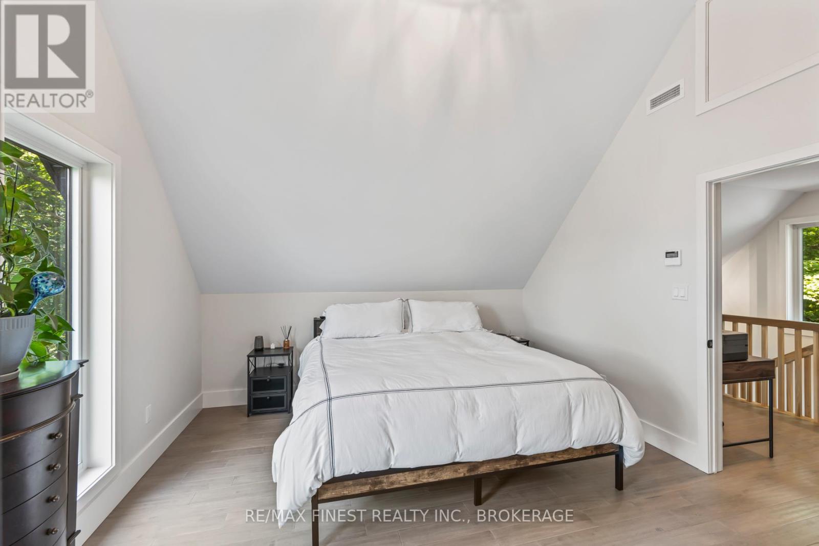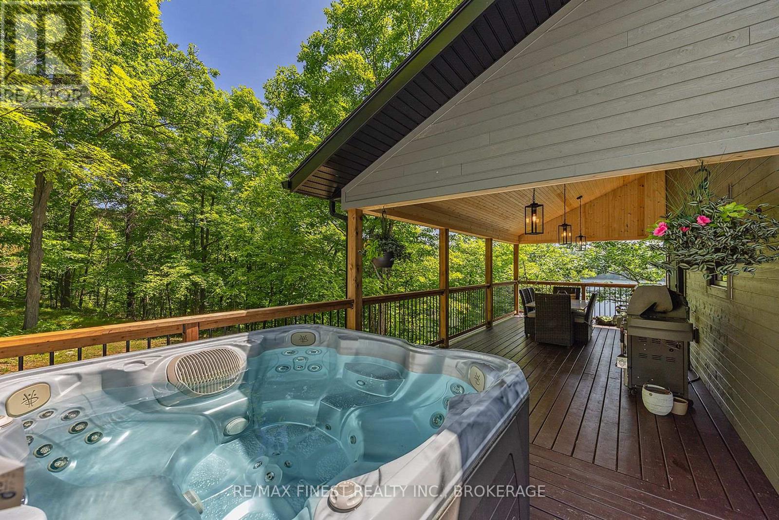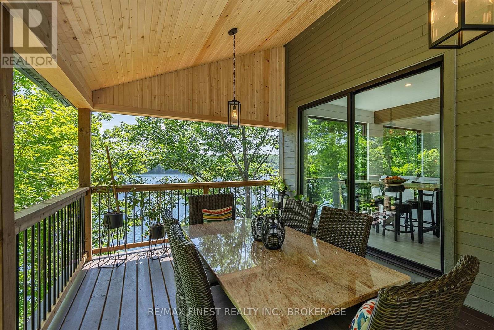 As you enter this immaculate waterfront year round home or cottage, you are welcomed by the stunning views of BuckLake through the massive floor to ceiling Living Room windows. This truly amazing 2 year old maibec wood sided home provides 1416 square feet of total living space, and is constructed to exacting standards with the highest quality materials. No expenses spared in this owner built home which features a bright Kitchen with Quartz counter tops and waterfall island, solid, painted, white oak cabinetry, and stainless steel appliances including a propane range below alow profile Microwave oven......and that view!! The bright and spacious Living/Dining area boasts 10 ft ceilings, luxury vinyl plank flooring throughout and walk out to a wonderfully inviting large covered deck with custom cut cedar ceiling and propane line for the BBQ. What a comfortable space to relax rain or shine! Take a walk up the solid poplar natural staircase to the loft area, and you'll find the Primary Bedroom with soaring cathedral ceilings, a spa-like 4pc Main Bathroom with its unique Slik free standing stone soaker tub and separate glass shower, and a small office area. A huge bonus is that the loft area has it's own heating/cooling system, separate from the levels below. The Basement features two Bedrooms, each with their own walkout to a deck overlooking the lake, a beautiful 4pc Bathroom and Laundry. This is truly a must see property! (id:64974)
