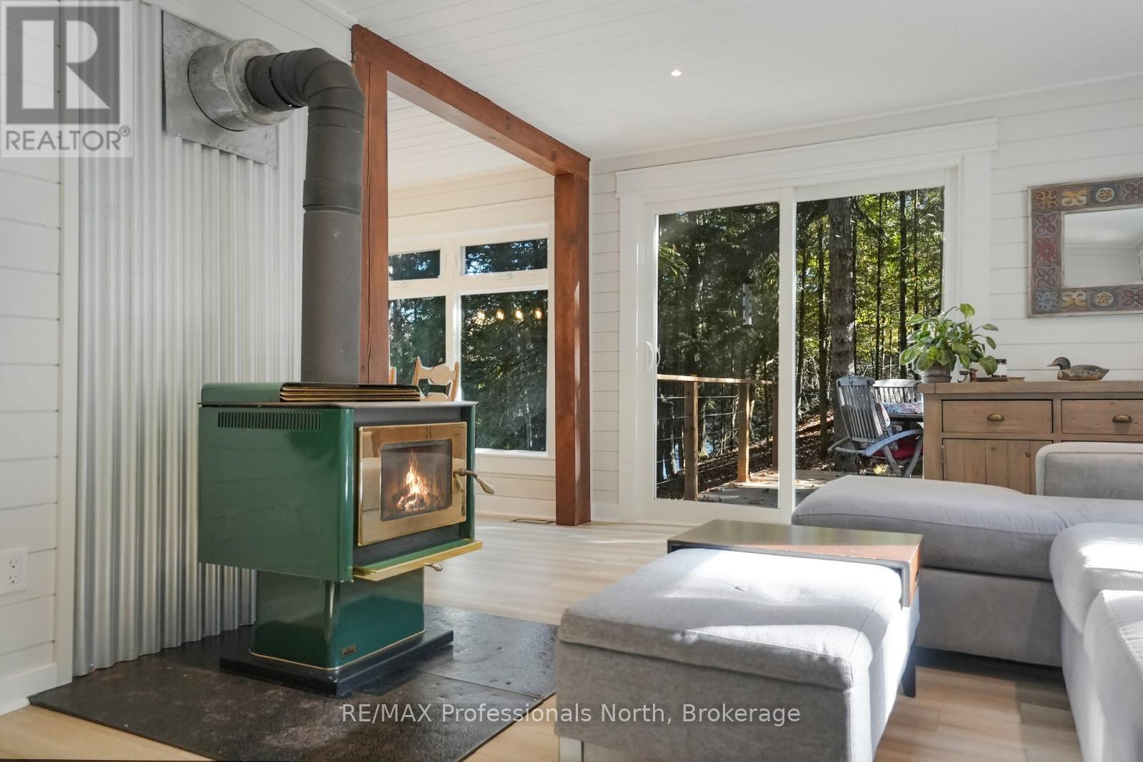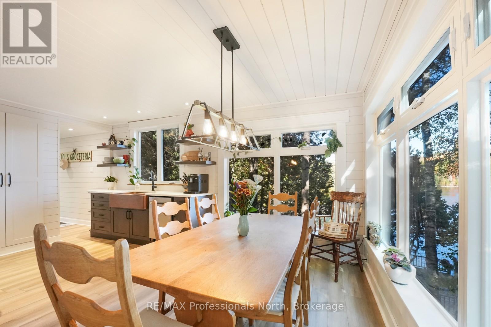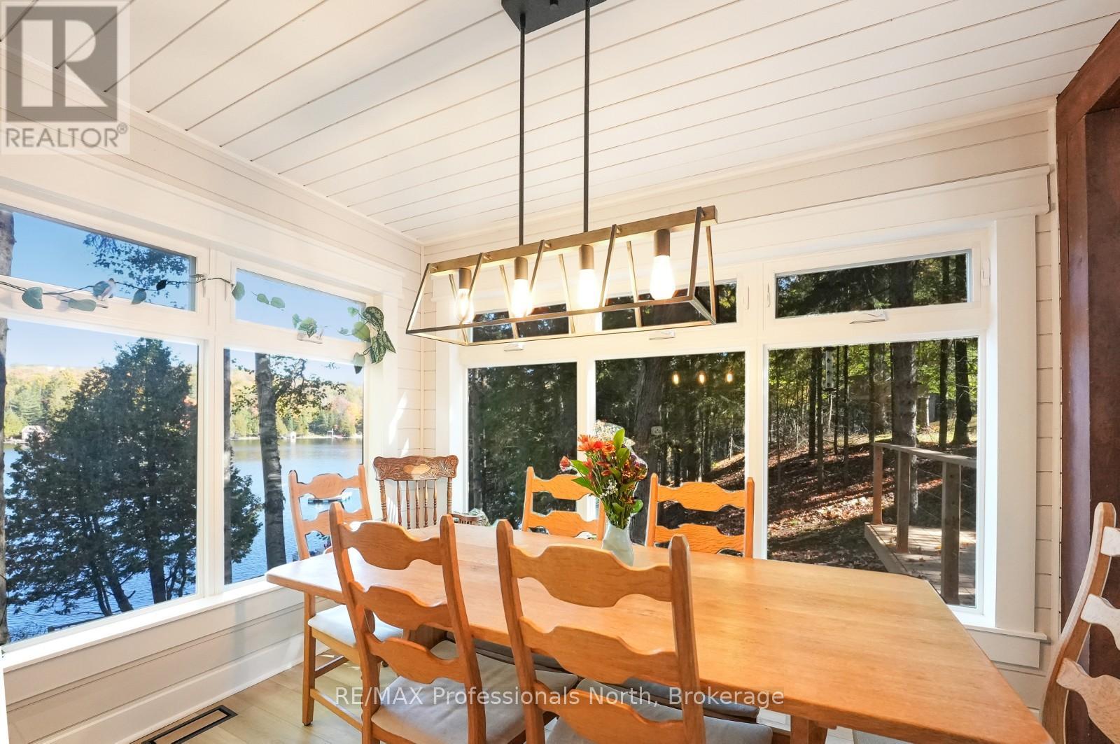 Welcome to this fully renovated 4-season waterfront home or cottage on sought-after Soyers Lake, part of Haliburton's desirable 5-lake chain. Offering 96 feet of owned frontage with a sand beach, private boat launch, and endless boating opportunities, this property is ideal as a year-round residence, family retreat, or investment with owned shoreline road allowance. The 2-storey home features 1017 sq. ft. of living space with 2 bedrooms and 2 bathrooms, forced air electric, and A/C. The main level offers an open-concept living and dining area flowing into the updated kitchen, complete with quartz countertops, mosaic backsplash, hammered copper sink, and pot filler. A 2-piece bath and multiple walkouts to large decks overlooking the water complete the main floor. Upstairs, find 2 generous bedrooms and a 3-piece bath, including a primary with walk-in closet. Outdoor living is exceptional with expansive decks at both the cottage and shoreline, lakeside storage shed, and a dock for swimming and boating. A detached, heated and insulated bunkie provides additional sleeping space and is connected to a garage/workshop for storage or hobbies. Enjoy year-round comfort with a drilled well and easy access on a municipal road. Centrally located between Haliburton and Minden for shopping, dining, and amenities. By boat, head to the Haliburton docks for the farmers market, dining, or groceries, enjoy sunsets and fine dining at Bonnie View Inn, or stop at Kates Burgers for ice cream and snacks. This mostly turn-key property is a rare opportunity to own a move-in ready home on a prime lake in Haliburton. (id:64974)