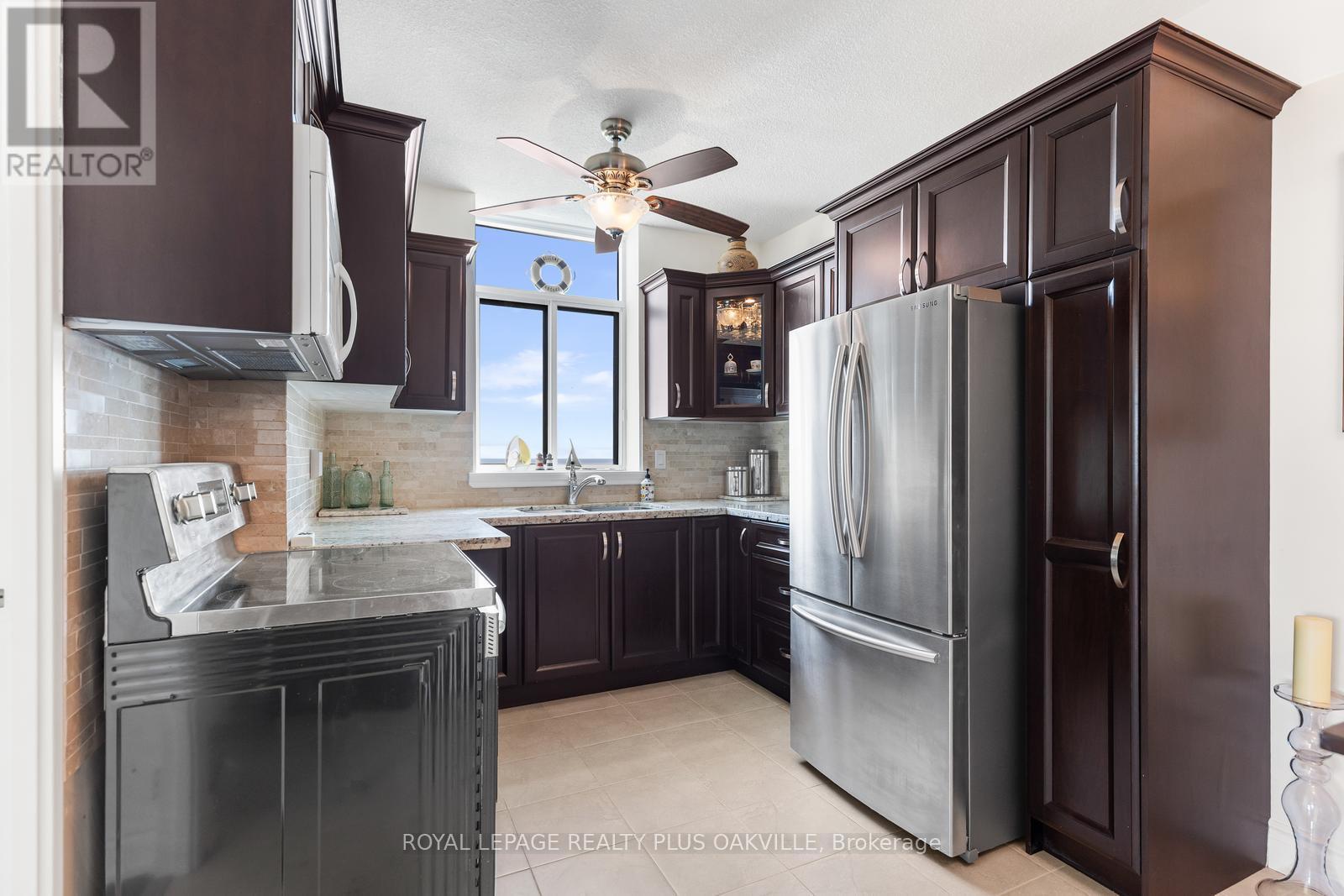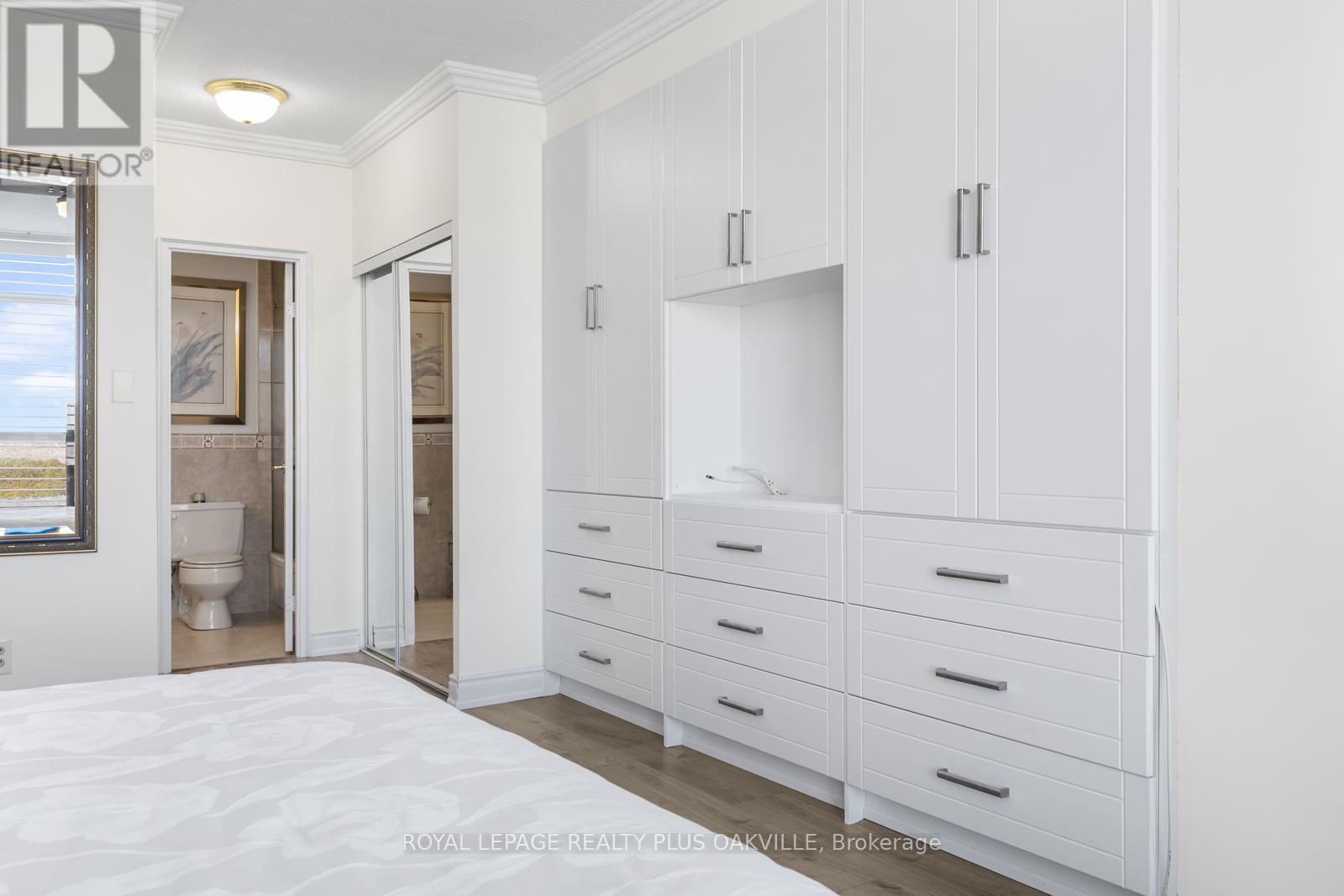 Admiral's Walk is a stunning lakefront condominium in highly sought-after southeast Burlington. From the moment you step into this beautifully appointed corner suite, you'll be captivated by the thoughtfully designed layout and breathtaking water views.Recent, tasteful updates include easy-care wide plank laminate flooring, modern lighting and ceiling fan, custom bedroom built-ins, and refreshed bathrooms-creating a truly move-in ready home. The spacious living area is perfect for both everyday relaxation and entertaining.Take in the spectacular lake views from the kitchen, dining room, and private balcony-an ideal setting for morning coffee or evening unwinding.Residents enjoy an exceptional lifestyle with an impressive array of amenities, including an outdoor pool, fitness centre, sauna, party room, games room, car wash, BBQ area, and a unique workshop featuring woodworking and pottery spaces.Ample visitor parking is available, with surface spaces and 40 underground spots. This well-managed building also offers the convenience of on-site property management.An incredible opportunity to enjoy affordable waterfront living in a vibrant, welcoming community. (id:64974)