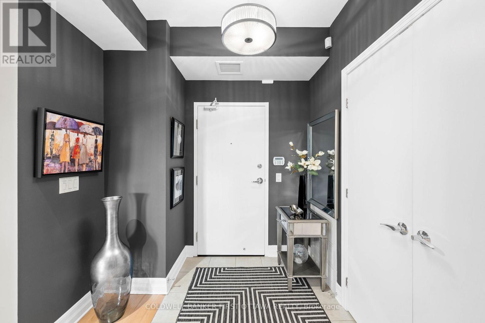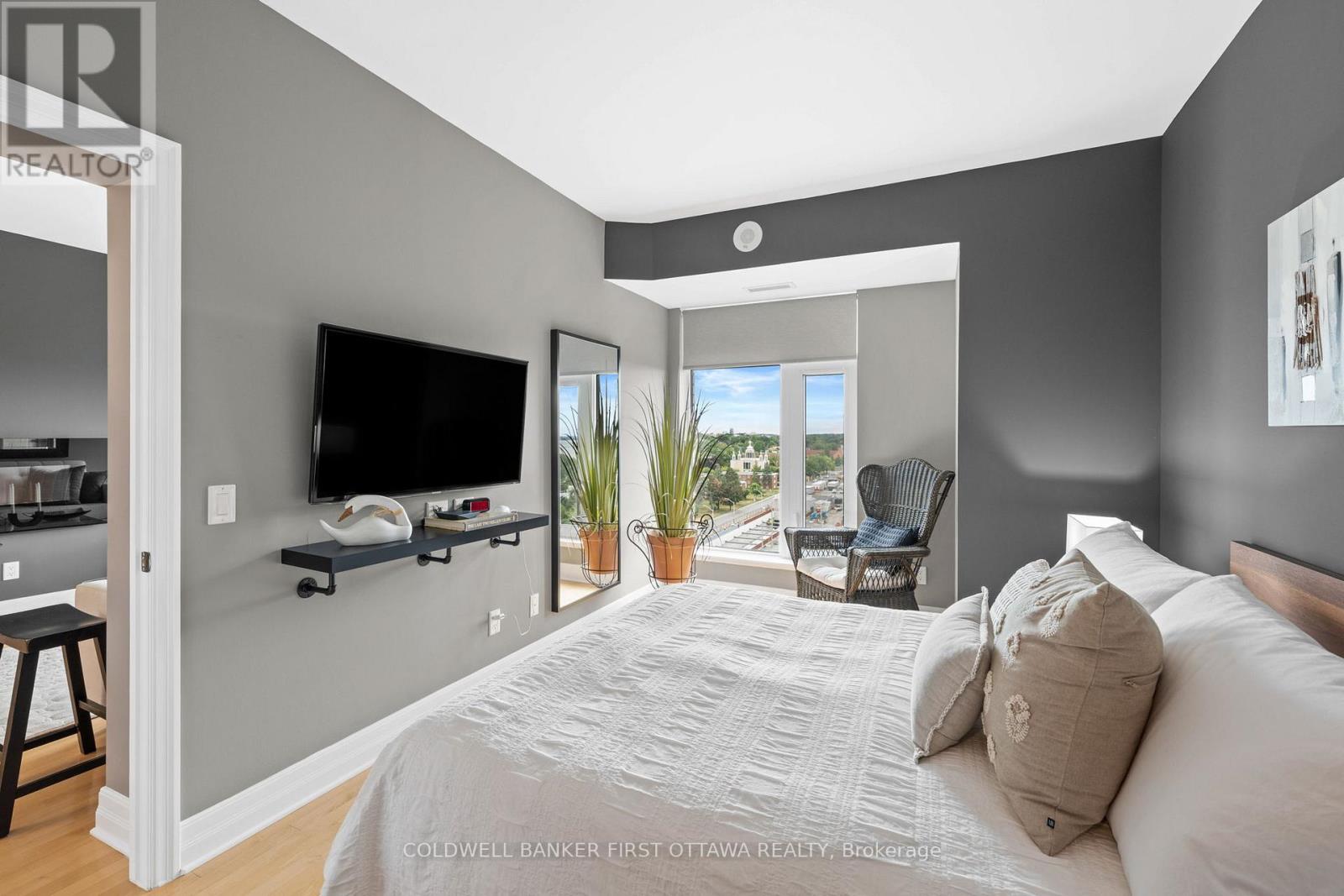 Welcome to The Continental, 75 Cleary Ave, a luxurious Charlesfort-built condo designed by Barry J. Hobin in the heart of Westboro/McKellar Park. Proudly maintained by longtime owners, this 2 bed, 2 bath Countess model offers 997 sq ft + Balcony of thoughtfully designed living space, paired w/ stunning views of the Ottawa River & the Gatineau Hills. Inside, 9ft ceilings, hardwood & ceramic floors run t/o, creating a bright & carpet-free environment. The gourmet kitchen boasts granite counters, under-valence lighting, peninsula island w/ breakfast bar seating, modern fixtures & a full suite of SS appliances (Refrigerator, Induction Stove + Dishwasher new in 25'). The open-concept living & dining areas are framed by wall-to-wall windows, anchored by a built-in electric fireplace, & flow seamlessly onto the private balcony offering west, north & south exposures. The expansive primary suite feat. a large window, dbl-door closet, WIC w/ custom shelving & a spa-like 3-pc ensuite complete w new tiled shower (24'), upgraded glass rain shower & granite vanity. The secondary bed, currently used as a flex rm, showcases floor-to-ceiling windows & mirrored closet doors. A main 4 pc bath includes a granite vanity & tub/shower combo. Enjoy an exceptional lifestyle w/ The Continentals amenities: rooftop terraces w/ panoramic views, multiple lounge areas & BBQs, a fitness centre, a stylish lounge/party rm, visitor parking & underground garage w/ convenient car wash bay. Unit includes underground parking (B3) & locker (B93). Located steps from Westboro Village, enjoy restaurants, cafés, shops, Carlingwood Mall, Dovercourt Rec Centre, JCC & walking/cycling paths along the Ottawa River & Parkway. Golfers will appreciate proximity to Rivermead, Royal Ottawa Golf Club, Gatineau, Chateau Cartier & more. Future Sherbourne LRT station is directly across the street, ensuring unbeatable transit access. Call (613)897-9608 for access to the Open House! (id:64974)