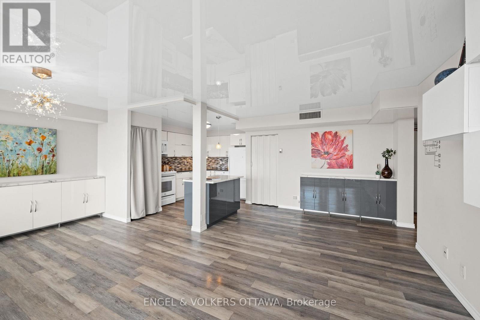 Welcome to The Halcyon-where style, convenience, and comfort come together just steps from Westboro. This beautifully updated two-bedroom, one-and-a-half-bath condo offers bright, open-concept living with tasteful renovations throughout. The modern kitchen features clean lines and updated finishes, while new flooring flows seamlessly into the airy main living space. Dramatic stretch-fabric ceilings add an architectural touch and elevate the sense of openness. Enjoy a private balcony with city views, two generous bedrooms including a handy ensuite powder room, in-suite laundry, a full bath, an oversized in-unit storage room, and central air conditioning for year-round comfort. Set in an unbeatable location, you're minutes to the upcoming LRT station, Westboro's shops and cafés, and kilometres of scenic walking and cycling paths-ideal for commuters and outdoor enthusiasts alike. The Halcyon offers an exceptional array of amenities: an outdoor pool with lounge areas, BBQ stations, sauna, fitness centre, car wash bay, bike storage, workshop, party room with full kitchen, library/lounge, meeting room, guest suite, and commercial laundry for bulky items. Condo fees conveniently include heat, hydro, and water, ensuring predictable monthly expenses and a worry-free lifestyle.Underground parking and a storage locker complete this well-rounded, move-in-ready home-perfect for anyone seeking modern living in a welcoming and connected community. (id:64974)