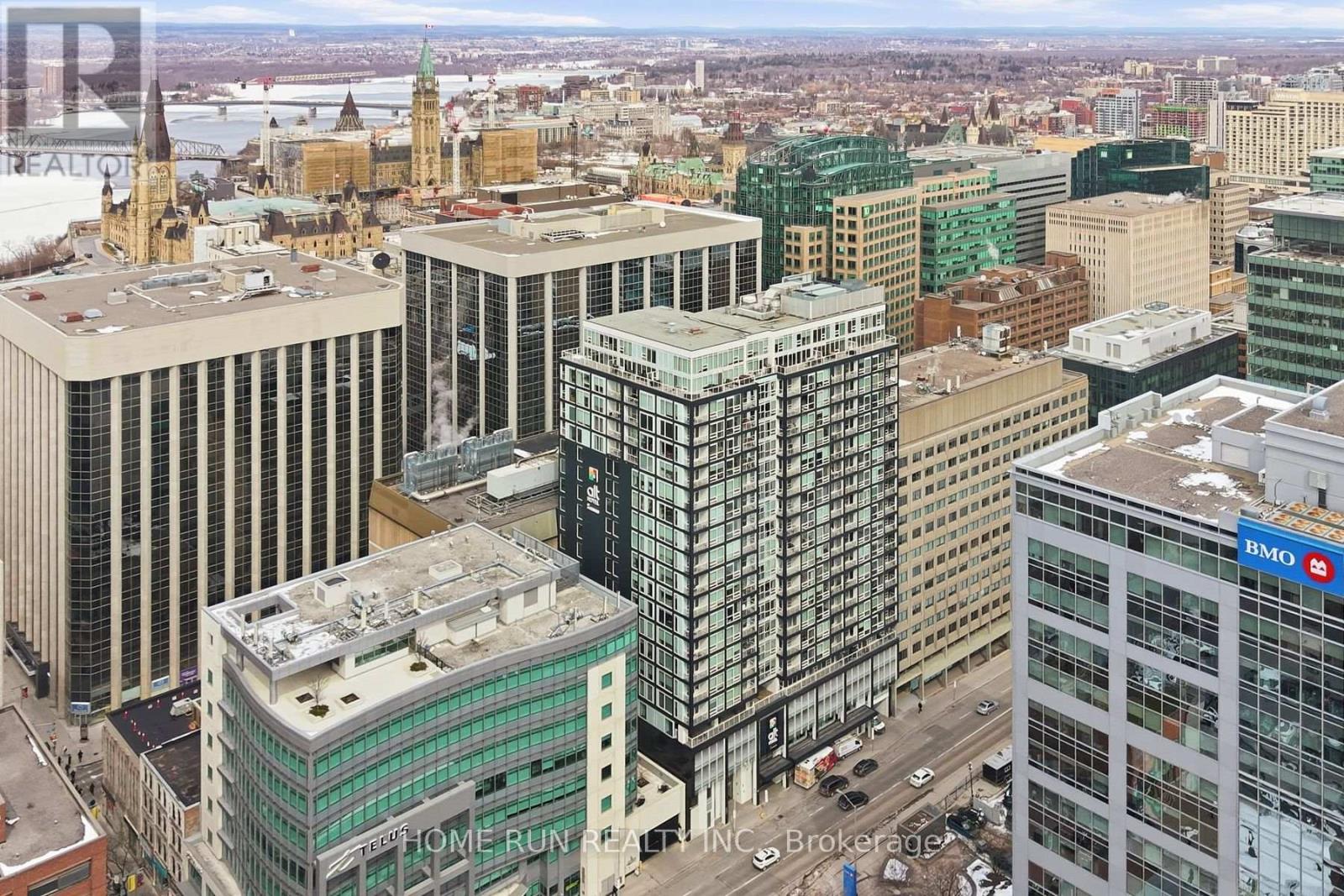 Welcome to The Slater, ideally located in the heart of Ottawa's Financial District, just steps from Parliament Hill. Enjoy unparalleled convenience with everything at your doorstep - walking distance to restaurants, shops, and major attractions including the Byward Market, Rideau Centre, National Arts Centre, museums, the University of Ottawa, and the LRT station just minutes away. This exquisitely built condo offers one bedroom, one full bathroom, and one storage locker, along with spectacular views of the downtown skyline. The sun-filled living room features 9-foot ceilings and designer floor-to-ceiling windows, creating a bright and modern living space. The chef-inspired kitchen is equipped with built-in appliances, quartz countertops, and a functional island, perfectly suited for contemporary living. The spacious primary bedroom includes a stylish sliding door and a large closet. The main bathroom is finished with a stone countertop and a glass shower, while in-suite laundry adds everyday convenience. Residents enjoy access to premium building amenities, including a large terrace with natural gas BBQs, a fully equipped fitness centre, party room, whirlpool, screening room, billiards room, and concierge service. An exceptional opportunity for downsizers, first-time buyers, or investors, this unit offers modern comfort, luxury amenities, and a prime downtown location-truly urban living at its finest. (id:64974)