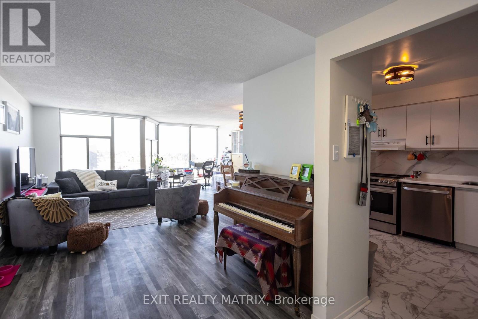 Welcome to Unit 1007 at 2759 Carousel Crescent, a bright, well-appointed condo offering comfort, convenience, and an exceptional amenity package in a connected Ottawa community. This spacious 2-bedroom, 2-bathroom apartment has been thoughtfully updated and is ready for move-in. Step inside to a welcoming foyer with convenient coat storage, then flow into the kitchen, where modern style meets everyday functionality. New Wi-Fi-enabled appliances, ample cupboard space, and generous counter surfaces make this kitchen as practical as it is sleek. The open-concept living and dining areas are flooded with natural light thanks to full-height windows, offering expansive views that elevate both daily living and entertaining. New flooring throughout the unit adds a fresh, contemporary feel. The primary bedroom is a true retreat, featuring a walk-through closet that leads to a private ensuite bathroom. A second bedroom, full bathroom, and in-suite laundry complete the layout, providing flexibility for guests, a home office, or shared living. Residents enjoy an impressive array of building amenities, including a beautiful lobby with seating areas, elevators, a quiet library, a rooftop terrace, a hot tub, a sauna, two exercise rooms, an outdoor pool, a party room, and a rental guest suite for visiting friends or family. Located in a well-established neighbourhood with nearby parks, shopping, dining, and services, this condo also offers easy access to major transit routes and a smooth commute into downtown Ottawa. Whether you're a professional, downsizer, or first-time buyer, this is condo living at its best, where comfort, community, and convenience come together. (id:64974)