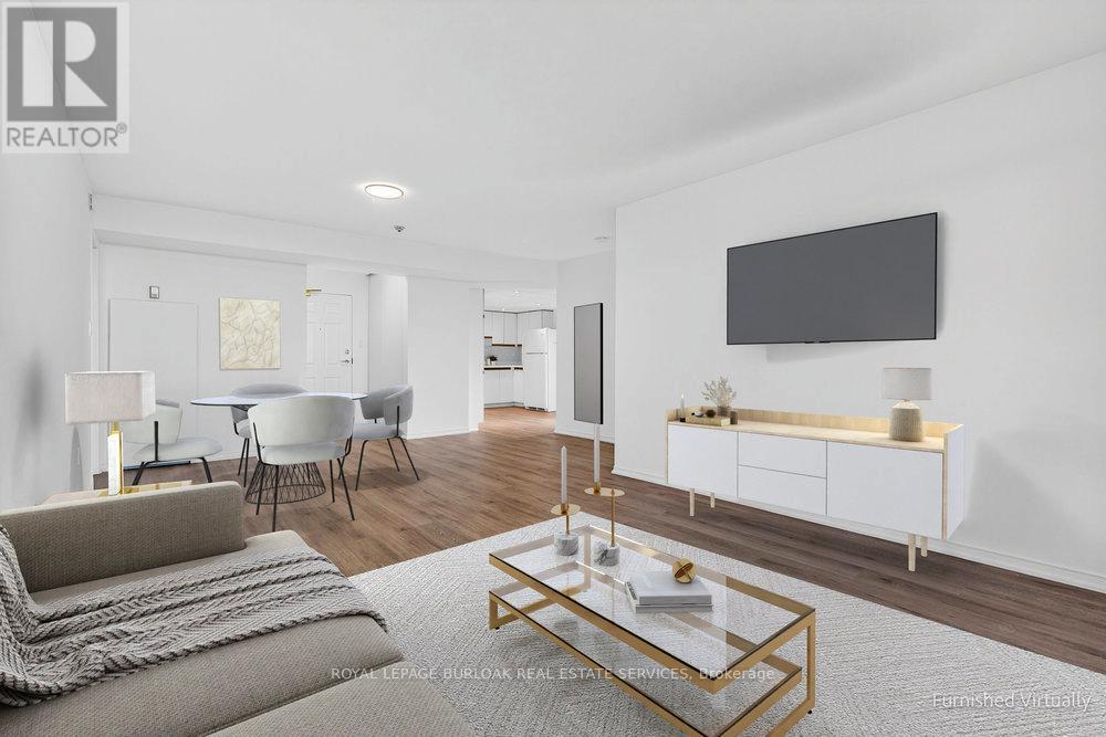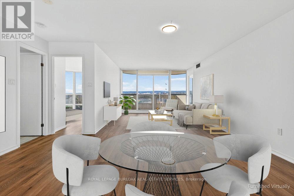 Welcome to 5090 Pinedale Ave #1007 - an exceptionally bright 1,200 sq ft suite in coveted Pinedale Estates. This desirable "Georgian" floorplan features generous living space including new floors, fresh paint, updated baths & abundant natural light throughout. The large primary retreat features an ensuite with double sinks, walk-in closet, & direct balcony access. Two spacious bedrooms, two renovated bathrooms & a versatile sunroom create comfort & flexibility for downsizers or anyone seeking turnkey living in South Burlington. A rare find: 2 parking spaces & 3 lockers, providing unmatched convenience, storage& long-term value in this well-maintained building. Enjoy resort-style amenities including pool, sauna, gym, party room, library & golf room - all accessible indoors. Embrace a walkable lifestyle with grocery, restaurants, parks & transit just steps away. Easy access to Appleby Village, Burloak Waterfront Park, Downtown Burlington, the QEW & 407. (id:64974)