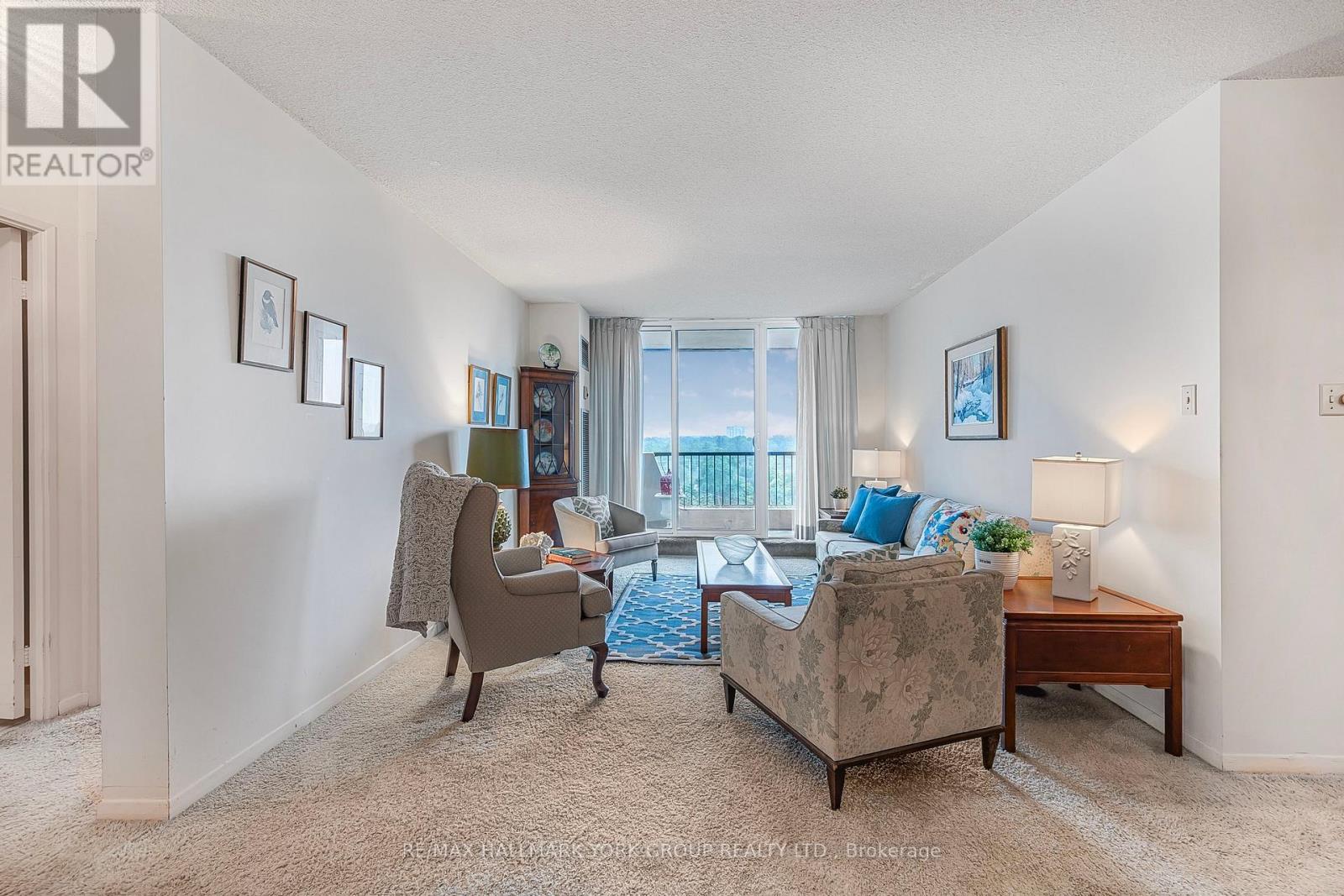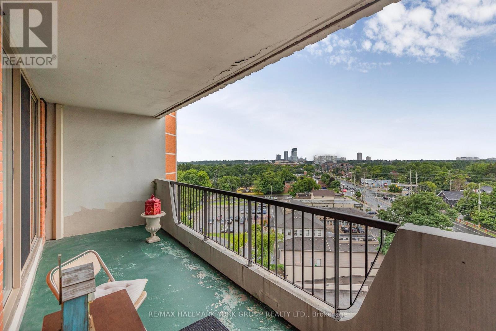 'The Summit' Condominiums - A prestige building in prime Olde Thornhill Village, Thornhill/Markham. This bright 10th floor, 1 bedroom suite offers stunning southwest city skyline views and a covered balcony for private outdoor enjoyment. The spacious primary bedroom is designed with comfort in mind. Large ensuite laundry. This well-managed, secure building features on-site management and top-tier amenities including an outdoor swimming pool, a gym, sauna, games room and bike storage. Healthy reserve fund. Maintenance fees include utilities, cable and internet. Additional building features include underground parking and ample visitor parking. Ideally located in the heart of Thornhill with easy access to Highways 401 and 407, walking trails, shops, cafes, restaurants, golf courses, parks, schools and public transit (future subway potential). (id:64974)