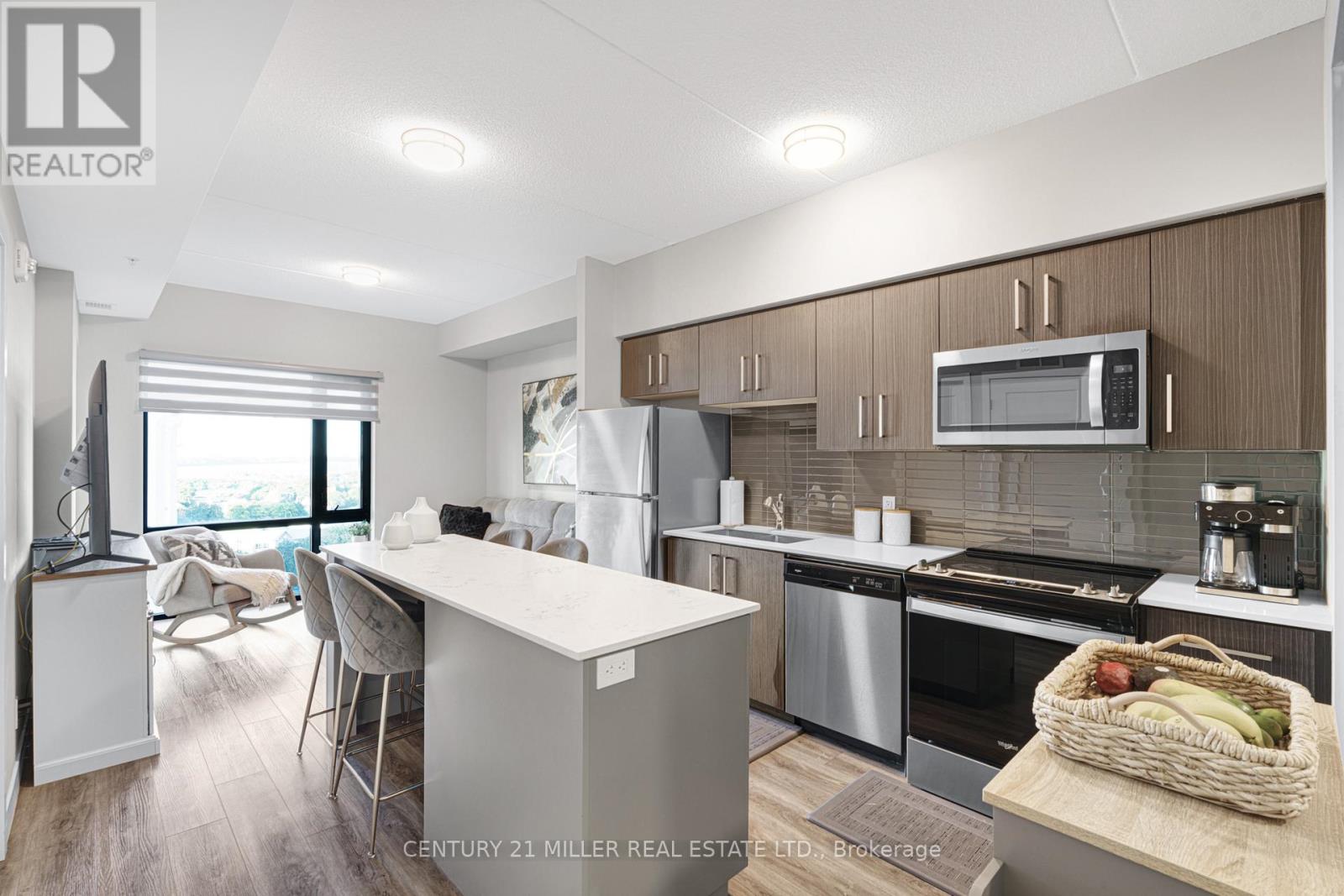 Experience upscale living on the 10th floor at Platinum condominiums. A modern, new standout building in downtown Hamilton. This suite features 2 bedrooms, 2 bathrooms, open concept living area that opens to a balcony with views of the city and the lake. The open layout maximizes light, ideal for entertaining and relaxation, offering a blend of elegance and functionality with 9-foot ceilings and high end, modern laminate flooring. The kitchen includes ample cabinetry, stainless steel appliances, quartz counters, and a large island . The primary bedroom boasts ample closet with organizers and a luxurious ensuite with a large glass encasing shower, while the second bedroom has also a closet with organizers near a full bathroom. This modern, elegant condominium boasts a large open balcony with panoramic views of the city. Located in the bustling downtown area, you are just steps from pubs, cafes, restaurants, and essential services, as well as the Hamilton GO Centre and the upcoming LRT. The location is also minutes from McMaster University, Mohawk College, St. Josephs Health Centre, and the 403 highway. Amazing Facilities like Roof Top Patio, BBQs, Party Room/Meeting Room and Gym. All utilities included except for hydro. (id:64974)