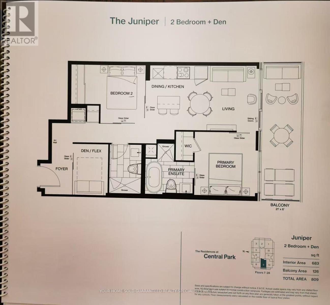 Experience elevated urban living in this beautifully designed 2-bedroom + den residence at Central Park Condo. This west-facing unit is bathed in natural light, offering stunning sunset views and a warm, inviting ambiance throughout. The thoughtfully laid-out floor plan features two spacious bedrooms, a versatile den perfect for a home office or guest space, and an open-concept living and dining area ideal for both relaxing and entertaining. The modern kitchen is equipped with sleek cabinetry, quality finishes, and ample storage, seamlessly blending style and functionality. Functional customized closet. Enjoy floor-to-ceiling windows, a private balcony to take in unobstructed west views, and a well-balanced layout that maximizes both comfort and privacy. Located in a highly sought-after community, residents will benefit from premium amenities Calling all nature lovers- convenient access to parks, Don River, Trails, shopping, transit, and everyday essentials. Parking included. (id:64974)