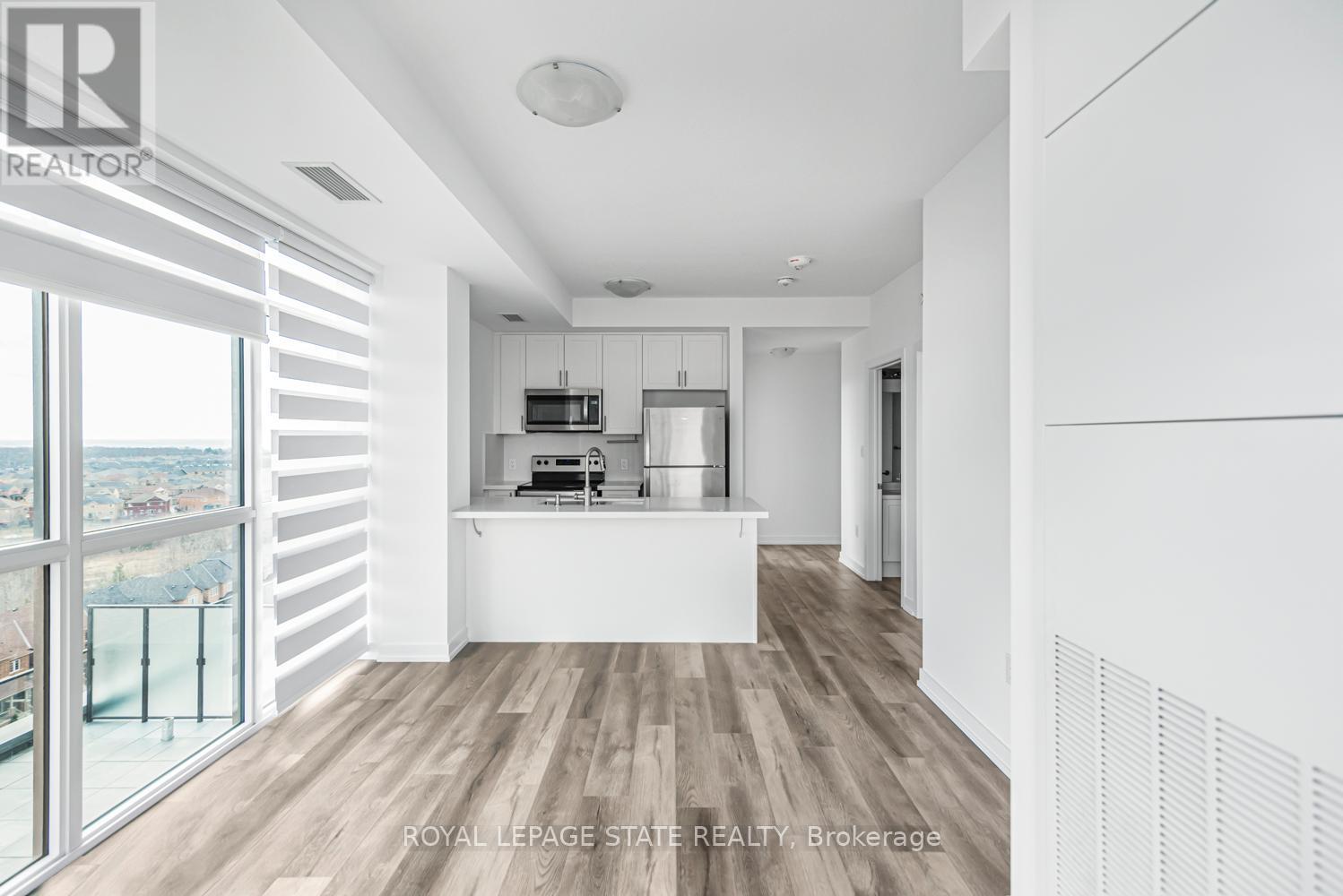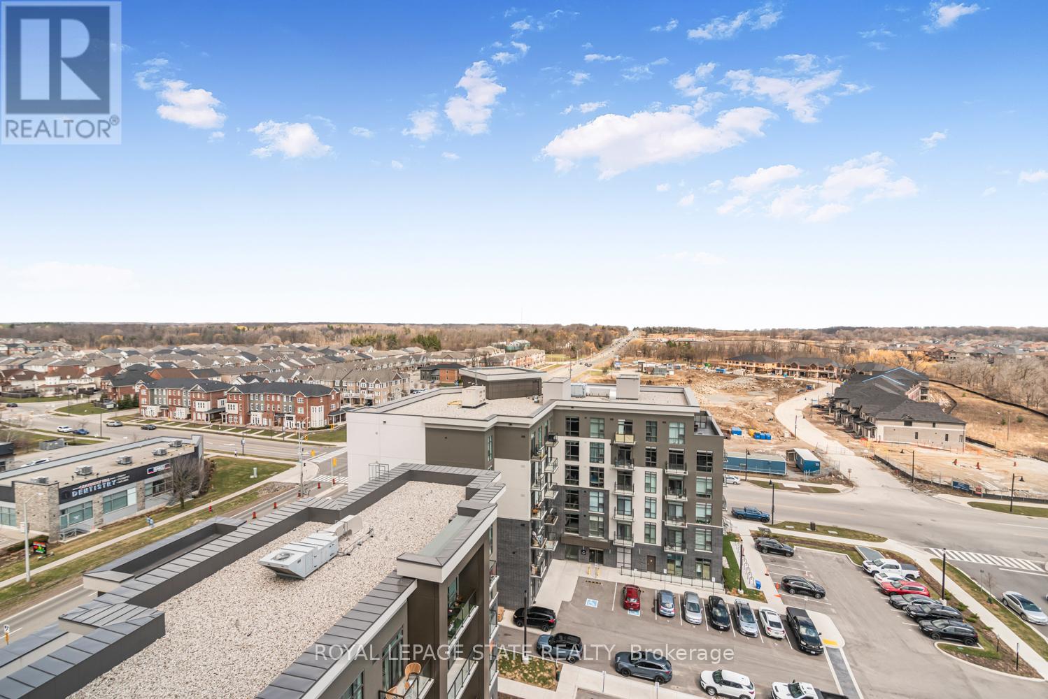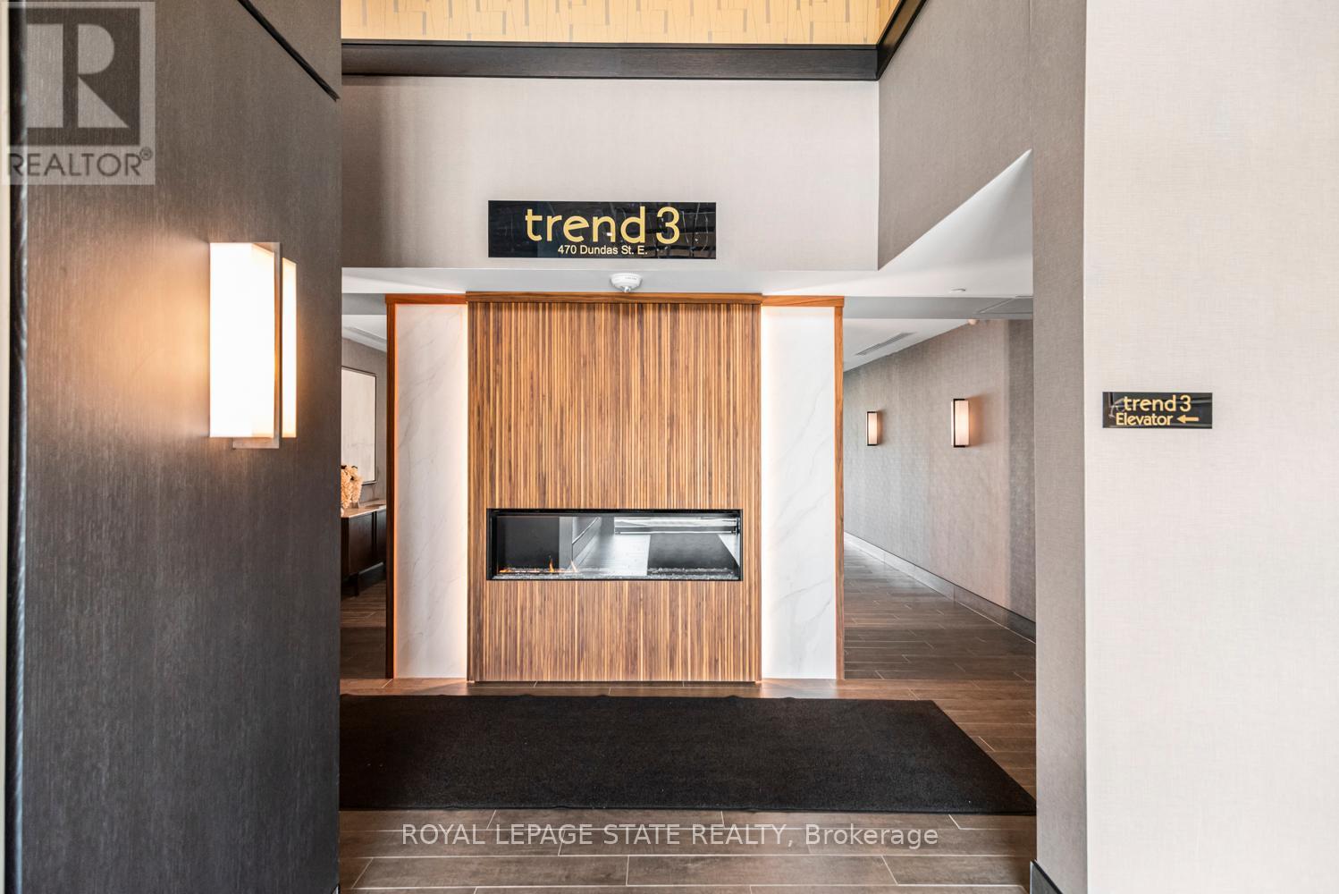 Welcome to this stunning 10th-floor unit in the highly sought-after Trend 3 community! Step into a bright and inviting 2-bedroom, condo. The open concept layout seamlessly connects the modern kitchen and living area, featuring brand-new stainless steel appliances, a stylish breakfast bar with quartz counter tops, and direct access to your private balcony w/exposure to two sides. A well-appointed 4-piece bathroom and the convenience of in-suite laundry complete this thoughtfully designed space. Enjoy a lifestyle of comfort and convenience with exceptional building amenities, including vibrant party rooms, a state of the art fitness center, scenic roof top patios, and secure bike storage. Located in the heart of Waterdown, this home features effortless access to top-rated dining, shopping, schools, and picturesque parks. Included with the unit is 1 owned surface parking space and an owned locker for extra storage. Experience contemporary living at its finest in this exceptional condo (id:64974)
