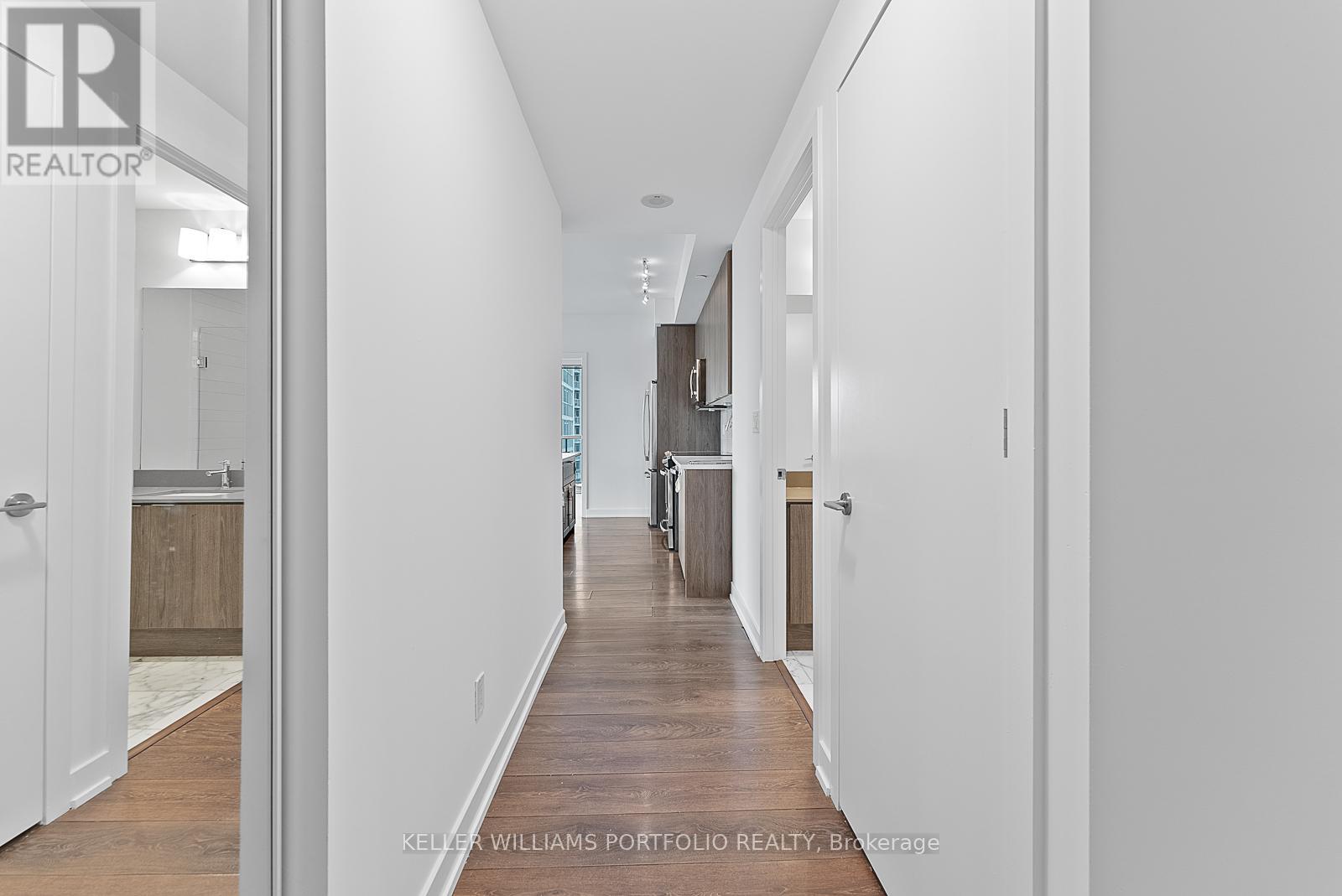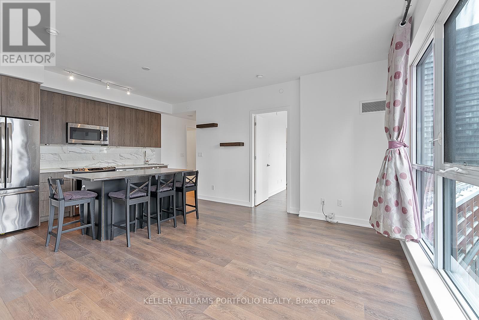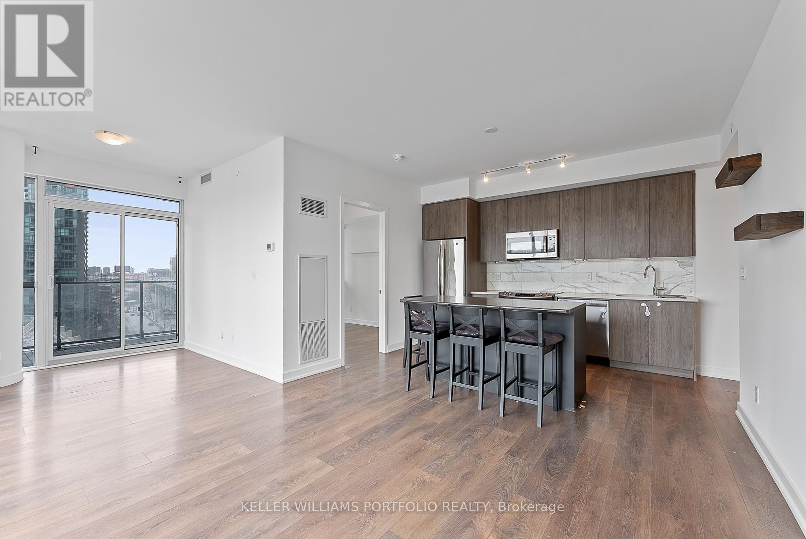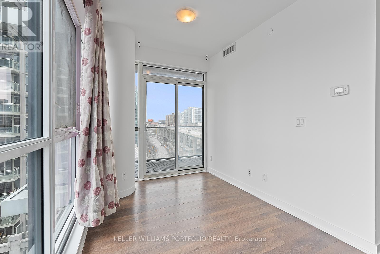 Luxurious Large Corner Unit 2 Bedrooms + 2 Bathrooms with floor to ceiling windows and ceiling lights in both bedrooms, south facing and west facing. Large Open Concept Den combined with Dining/living. Ensuite Laundry, Primary bedroom w/Ensuite Bath, Walk-In Closet. Large Balcony. Prime location, Steps To TTC, Street Car. Close To Banks And Shopping, Lake And Waterfront, Library, CN Tower, A Short Walk To The Rogers Centre, Air Canada Centre. Walking distance to a school and daycares, parks and canoe landing community centre. One Parking and One Locker Included (id:64974)