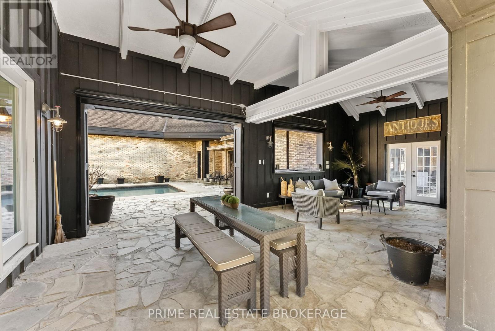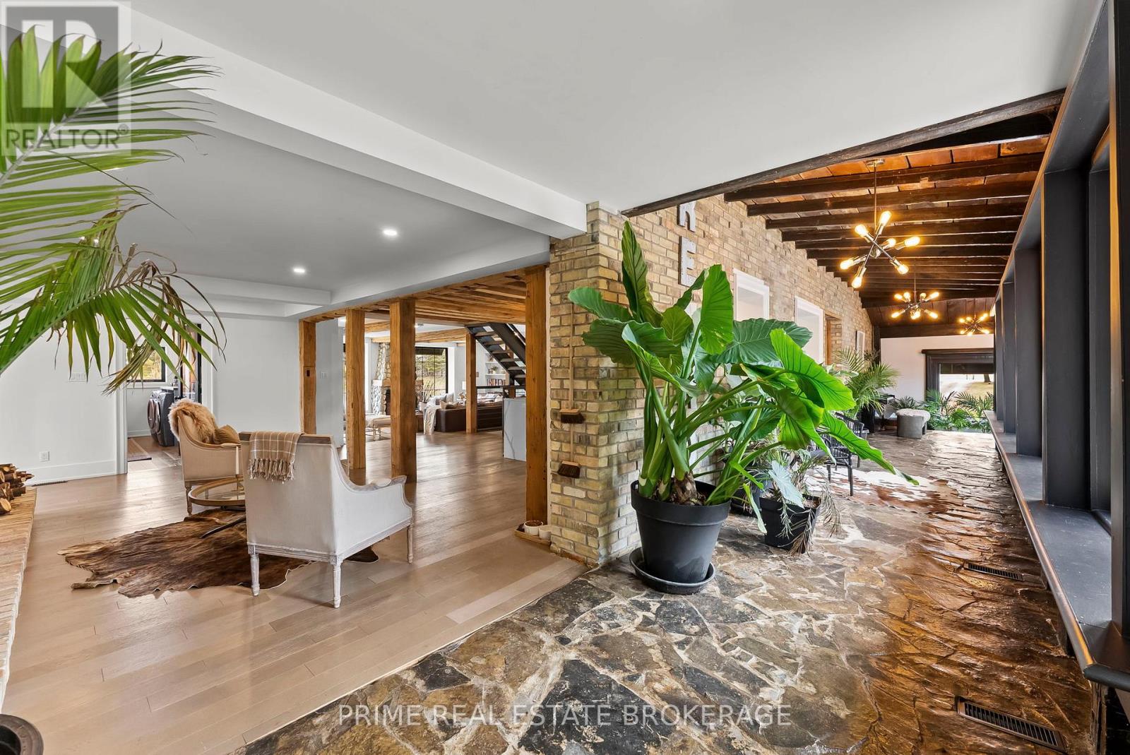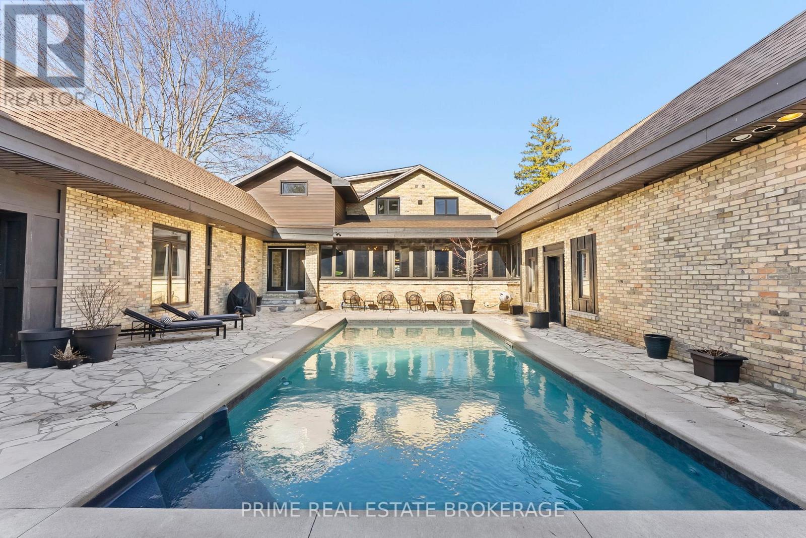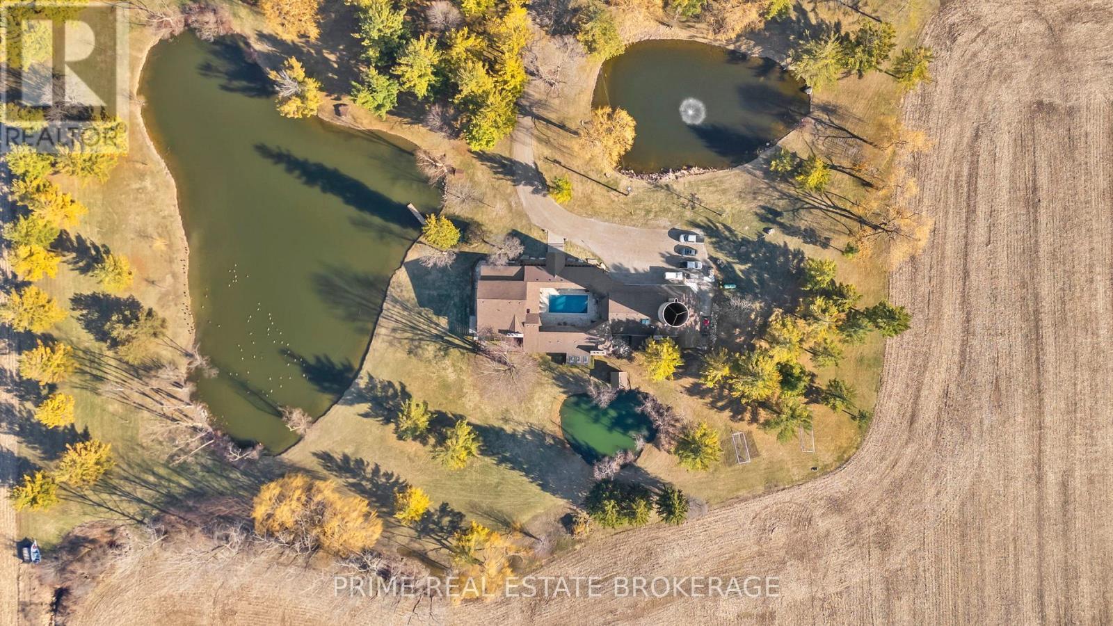 Set in the rolling countryside just minutes from Poplar Hill and 15 minutes to London, this estate blends the soul of an 1850's farmhouse with a complete, no expense spared rebuild in 2018. Privately positioned on nearly 3 acres with three expansive ponds, the setting feels alive. Deer move quietly through the trees, blue herons track the shoreline, and each season brings a different kind of stillness and movement across the landscape. Inside, over 8,600 sq ft of finished living space unfolds across four thoughtfully designed levels, offering four bedrooms including a rare main-floor suite ideal for multi-generational living, and 4.5 refined bathrooms. The kitchen anchors the home with a statement island, 48-inch SMEG gas range, and commercial grade refrigerator and freezer. From here, the space opens into a sunken living room overlooking the ponds, while a light-filled sunroom transitions naturally through the seasons. Exposed beams, a custom steel staircase, and wood-burning brick fireplace bring character, warmth and scale. The upper level feels quietly removed, featuring a primary suite with a refined ensuite and private terrace overlooking the grounds, along with 2 additional bedrooms, one complete with its own 4 piece ensuite. Outdoor living is where this property separates itself. A covered lanai with a wood-burning fireplace and retractable windscreens creates a true extension of the home, designed for use well beyond the summer months. Just steps away, a private courtyard is centered around a saltwater pool and hot tub, offering a setting that feels both relaxed and intentional. A separate 2 bedroom apartment provides flexibility for extended family, guests, or potential income, finished to a standard that mirrors the main home. The 4 bay garage offers exceptional space for vehicles, storage, and workspace, easily accommodating everything from daily drivers to recreational equipment. This is the kind of property that rarely comes to market. (id:64974)