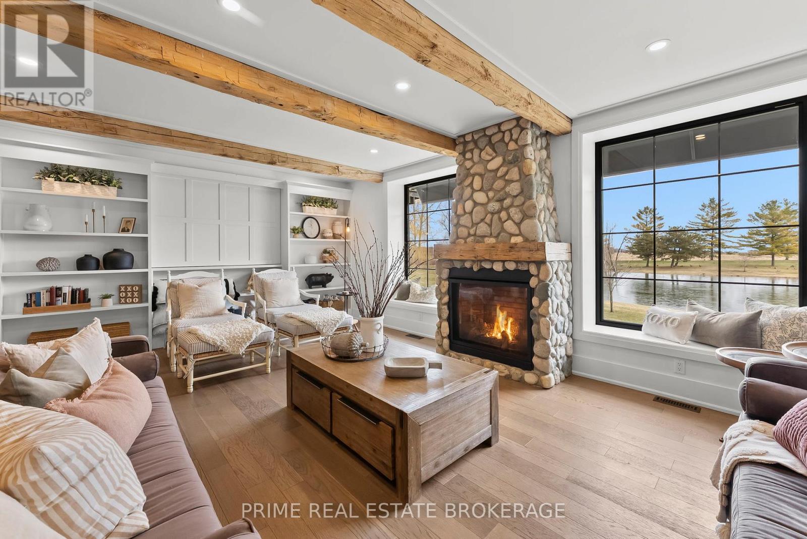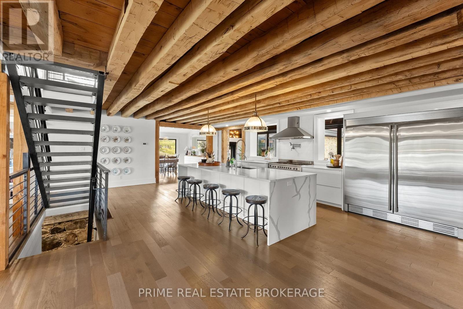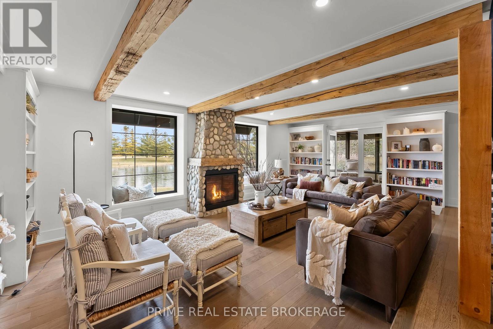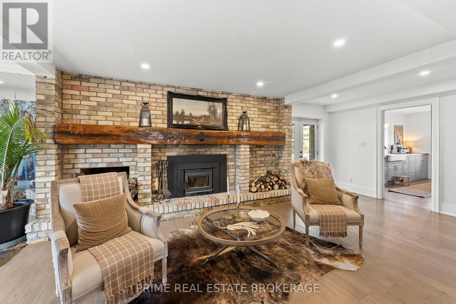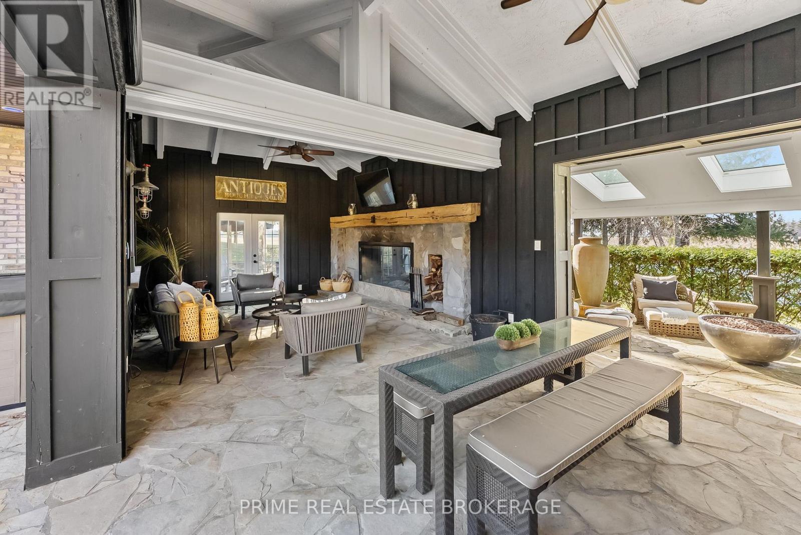 Set in the rolling countryside just minutes from Poplar Hill and 15 minutes to London, this estate blends the soul of an 1850's farmhouse with a complete, no expense spared rebuild in 2018. Privately positioned on nearly 3 acres with three expansive ponds, the setting feels alive. Deer move quietly through the trees, blue herons track the shoreline, and each season brings a different kind of stillness and movement across the landscape. Inside, over 8,600 sq ft of finished living space unfolds across four thoughtfully designed levels, offering four bedrooms including a rare main-floor suite ideal for multi-generational living, and 4.5 refined bathrooms. The kitchen anchors the home with a statement island, 48-inch SMEG gas range, and commercial grade refrigerator and freezer. From here, the space opens into a sunken living room overlooking the ponds, while a light-filled sunroom transitions naturally through the seasons. Exposed beams, a custom steel staircase, and wood-burning brick fireplace bring character, warmth and scale. The upper level feels quietly removed, featuring a primary suite with a refined ensuite and private terrace overlooking the grounds, along with 2 additional bedrooms, one complete with its own 4 piece ensuite. Outdoor living is where this property separates itself. A covered lanai with a wood-burning fireplace and retractable windscreens creates a true extension of the home, designed for use well beyond the summer months. Just steps away, a private courtyard is centered around a saltwater pool and hot tub, offering a setting that feels both relaxed and intentional. A separate 2 bedroom apartment provides flexibility for extended family, guests, or potential income, finished to a standard that mirrors the main home. The 4 bay garage offers exceptional space for vehicles, storage, and workspace, easily accommodating everything from daily drivers to recreational equipment. This is the kind of property that rarely comes to market. (id:64974)