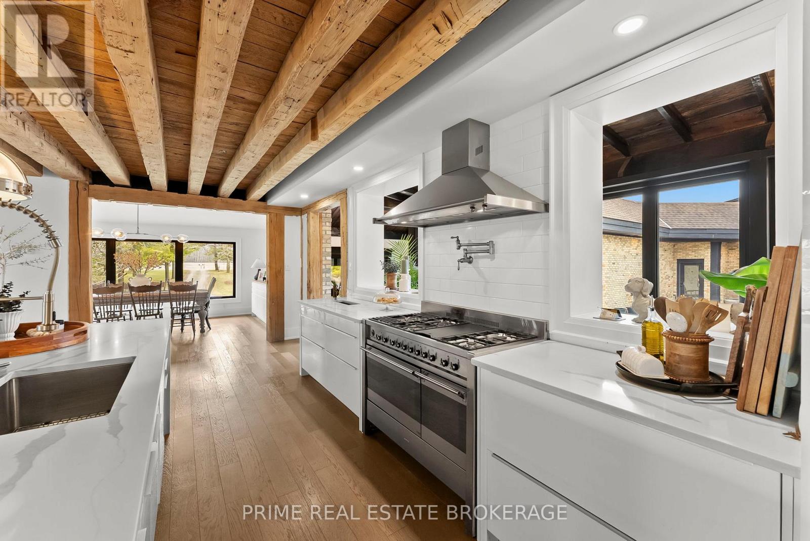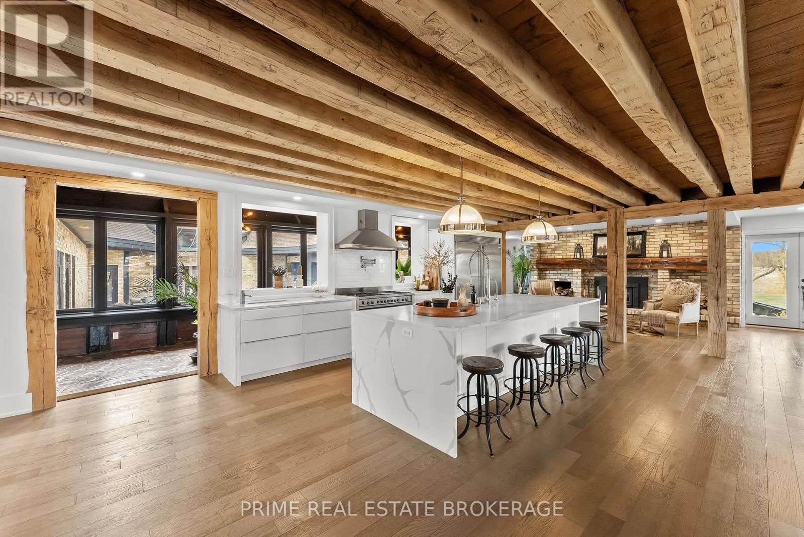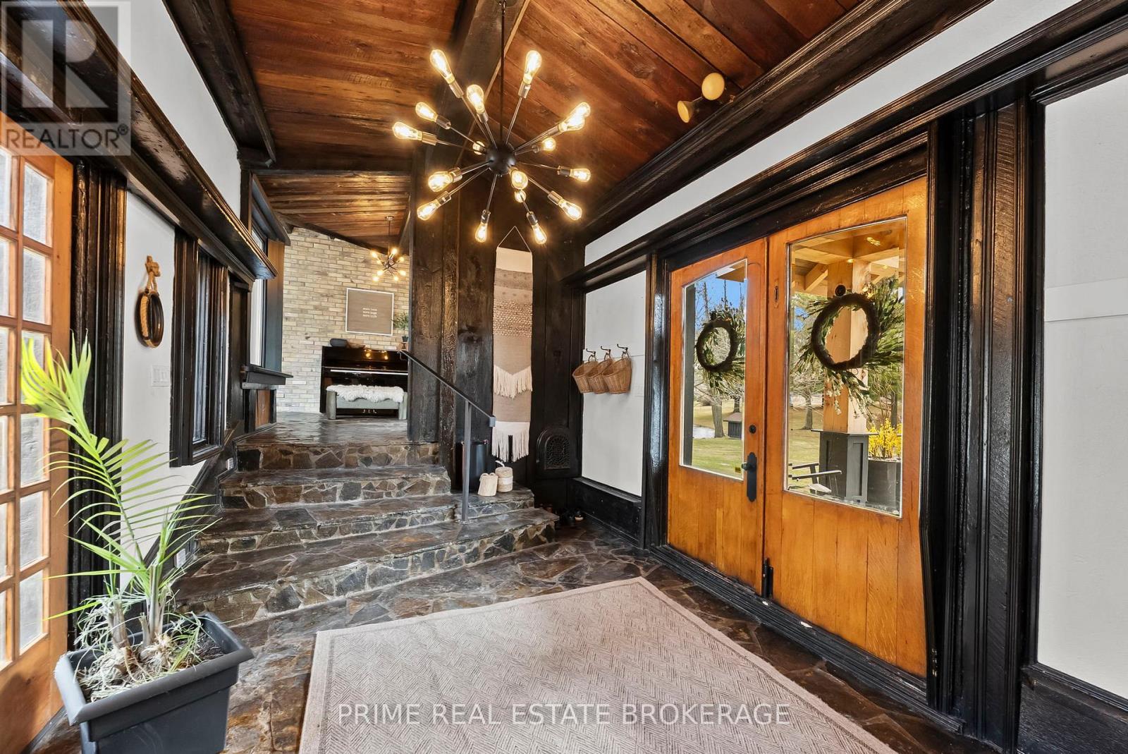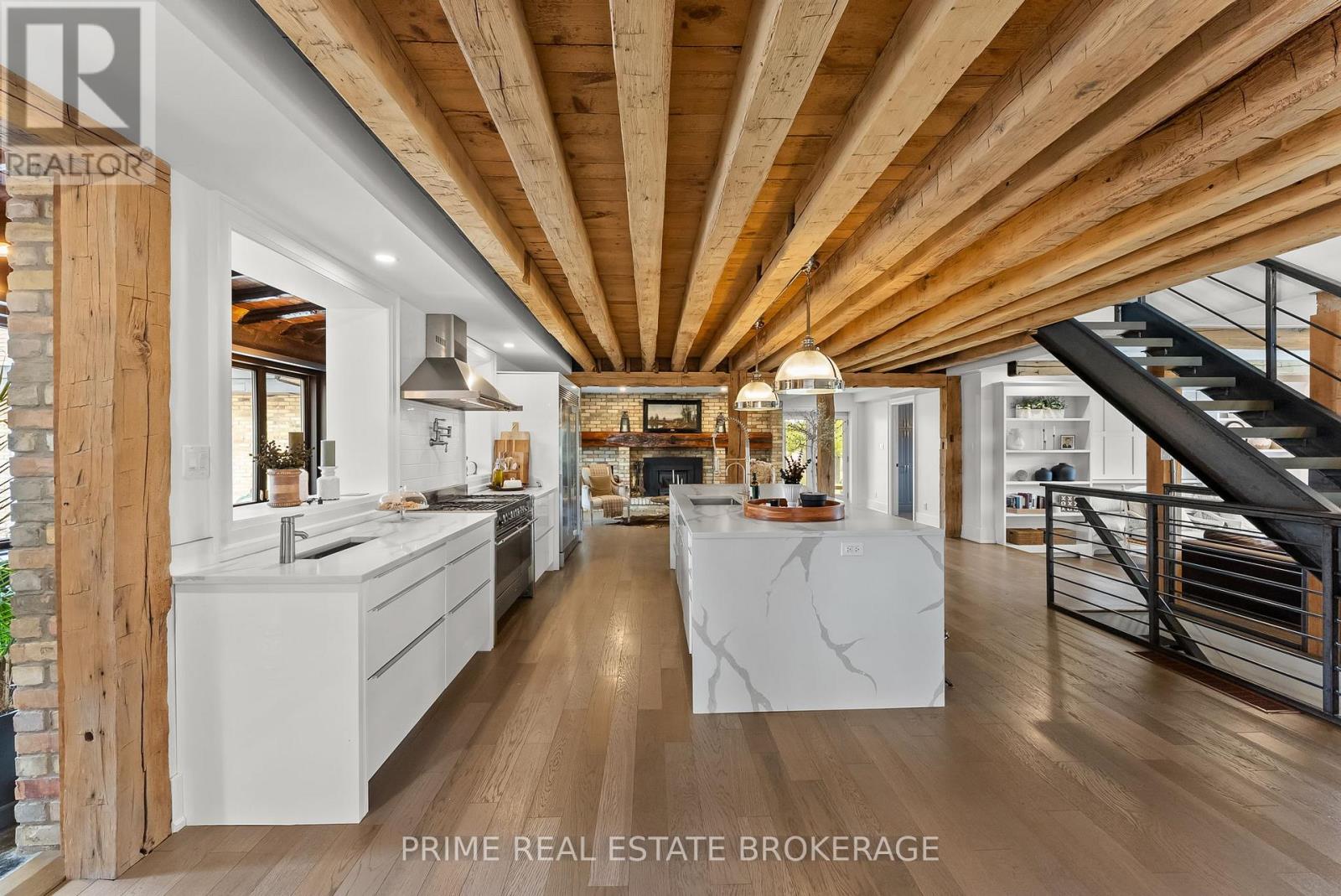 Set in the rolling countryside just minutes from Poplar Hill and 15 minutes to London, this estate blends the soul of an 1850's farmhouse with a complete, no expense spared rebuild in 2018. Privately positioned on nearly 3 acres with three expansive ponds, the setting feels alive. Deer move quietly through the trees, blue herons track the shoreline, and each season brings a different kind of stillness and movement across the landscape. Inside, over 8,600 sq ft of finished living space unfolds across four thoughtfully designed levels, offering four bedrooms including a rare main-floor suite ideal for multi-generational living, and 4.5 refined bathrooms. The kitchen anchors the home with a statement island, 48-inch SMEG gas range, and commercial grade refrigerator and freezer. From here, the space opens into a sunken living room overlooking the ponds, while a light-filled sunroom transitions naturally through the seasons. Exposed beams, a custom steel staircase, and wood-burning brick fireplace bring character, warmth and scale. The upper level feels quietly removed, featuring a primary suite with a refined ensuite and private terrace overlooking the grounds, along with 2 additional bedrooms, one complete with its own 4 piece ensuite. Outdoor living is where this property separates itself. A covered lanai with a wood-burning fireplace and retractable windscreens creates a true extension of the home, designed for use well beyond the summer months. Just steps away, a private courtyard is centered around a saltwater pool and hot tub, offering a setting that feels both relaxed and intentional. A separate 2 bedroom apartment provides flexibility for extended family, guests, or potential income, finished to a standard that mirrors the main home. The 4 bay garage offers exceptional space for vehicles, storage, and workspace, easily accommodating everything from daily drivers to recreational equipment. This is the kind of property that rarely comes to market. (id:64974)