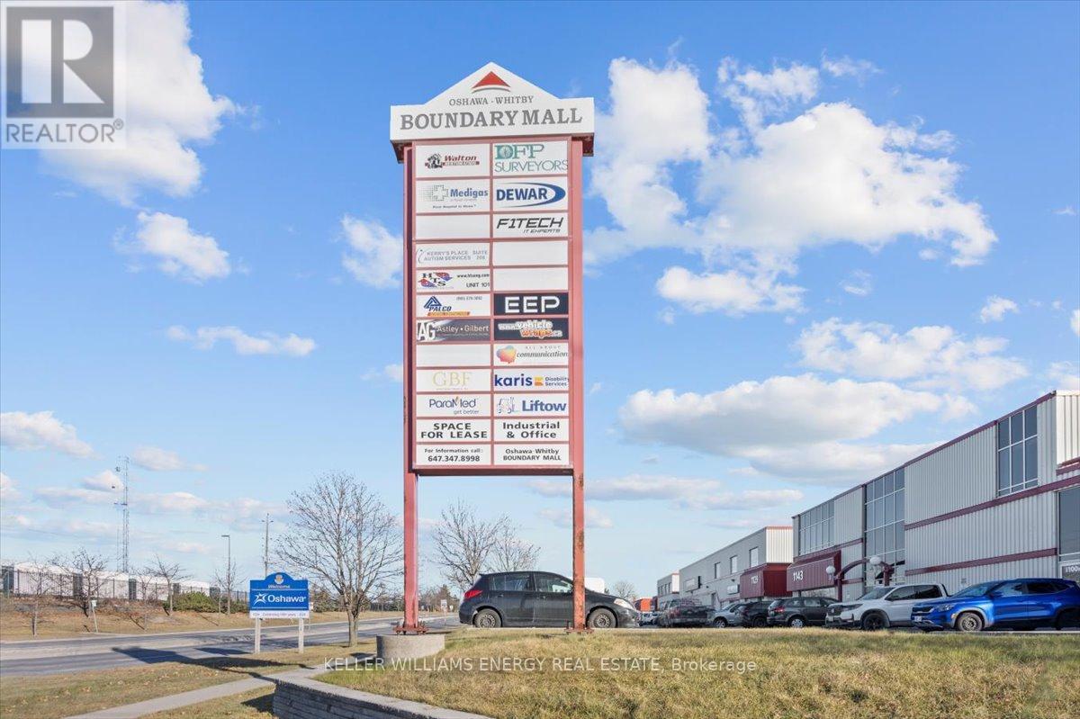 Position your business for success in this well-located commercial unit just off Hwy 401 between Stevenson Rd and Thickson Rd. Unit 101 offers approximately 1,044 sq. ft. of clean, functional main floor space within a professionally managed plaza. The property benefits from strong visibility along Boundary Rd and generous onsite parking for both staff and customers. Surrounded by a mix of established commercial tenants, the plaza provides a steady flow of activity and a professional setting for a variety of business uses. Affordable leasing opportunity in a convenient and growing commercial corridor. (id:64974)