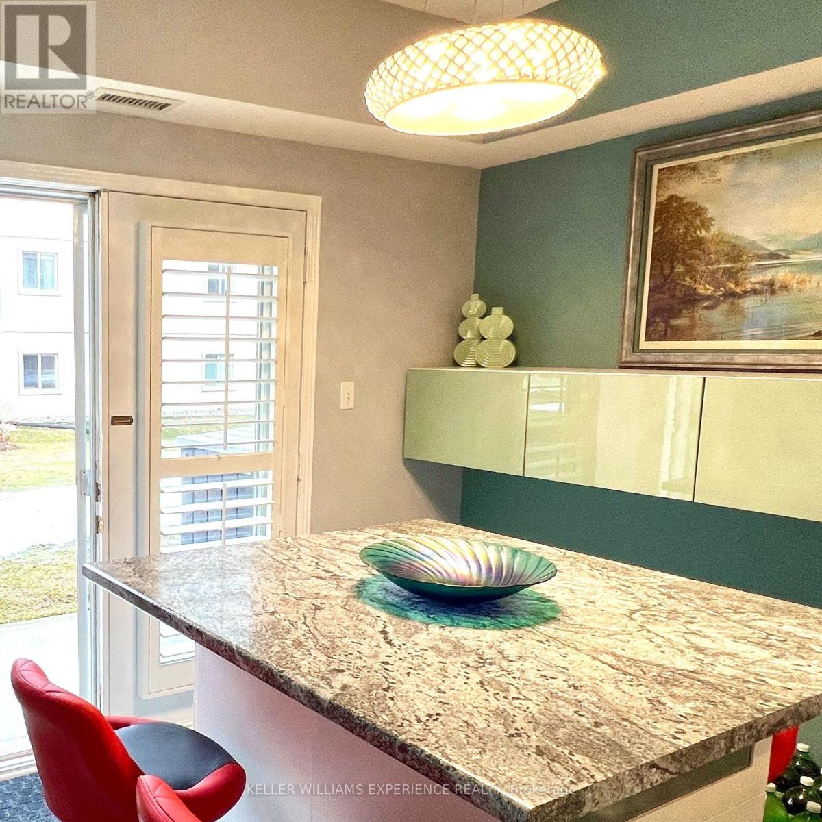 Modern, Ground-Level Living Steps From the Lake! This stylish ground-level end unit offers exceptional convenience with no stairs, no hallway noise, and a private patio that extends your living space outdoors. Inside, soaring ceilings and thoughtful updates - including new lighting, flooring, and a contemporary backsplash - create a bright, inviting atmosphere. The smart layout maximizes every square foot and includes in-suite laundry and dedicated parking for everyday ease. Perfectly located just steps from Lake Couchiching, Lake Simcoe, downtown Orillia, and a vibrant mix of restaurants and shops, you'll love having everything at your doorstep. With quick access to Highway 11, commuting is effortless whether you're heading to work, the cottage, or weekend adventures. 817 fin. sq. ft. of easy, modern living. *some photos digitally staged (id:64974)