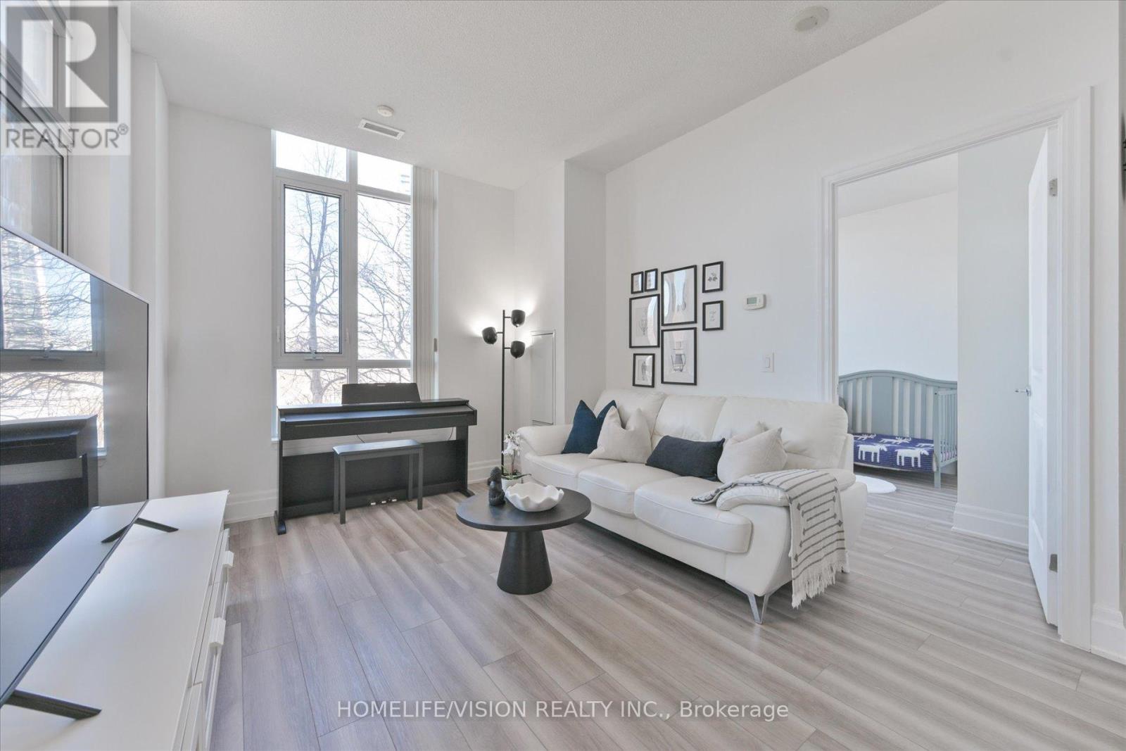 Rare 2+Den CORNER SUITE in the heart of Downtown Markham! Approx. 1,000 sq ft. Bright and spacious unit offers an exceptional layout with too many great features to list. Enjoy ultra-high ceilings, expansive windows throughout, and an oversized private terrace overlooking a peaceful park and ravine setting. Experience the perfect balance of urban convenience and nature, with a newly completed trail (2025) right at your doorstep. Open concept kitchen offers granite countertops and a functional layout ideal for everyday living and entertaining. Oversized den with a huge window is like a 3rd bedroom, larger than most newly constructed condo bedrooms, comfortably accommodating a queen-size bed and a large desk while still feeling open and bright. Elevated first-floor location provides easy access without compromising privacy. An exterior building entrance is conveniently located beside the unit for quick in-and-out access, six street parking spots are located directly in front of the terrace for extra convenience, plus the elevators just steps away with direct access to underground parking and locker. Quiet, family-oriented residential building (not mixed-use) with excellent management, 24-hour concierge service, abundant visitor parking, and a recently waterproofed underground garage. Quiet&friendly next-door neighbors are an added bonus. Unbeatable location, steps to parks, trails, shops, restaurants, theatre, Shoppers Drug Mart, and the York University campus. Only 5 minutes to the GO Station and minutes to Hwy 7, 404 & 407. Walking distance to the future Markham Centre Public Elementary School and within top-ranking school boundaries including Unionville HS and St. Augustine CHS. Move-in ready and meticulously maintained, a rare opportunity to enjoy space, light, and lifestyle in one of Markham's most desirable communities. (id:64974)