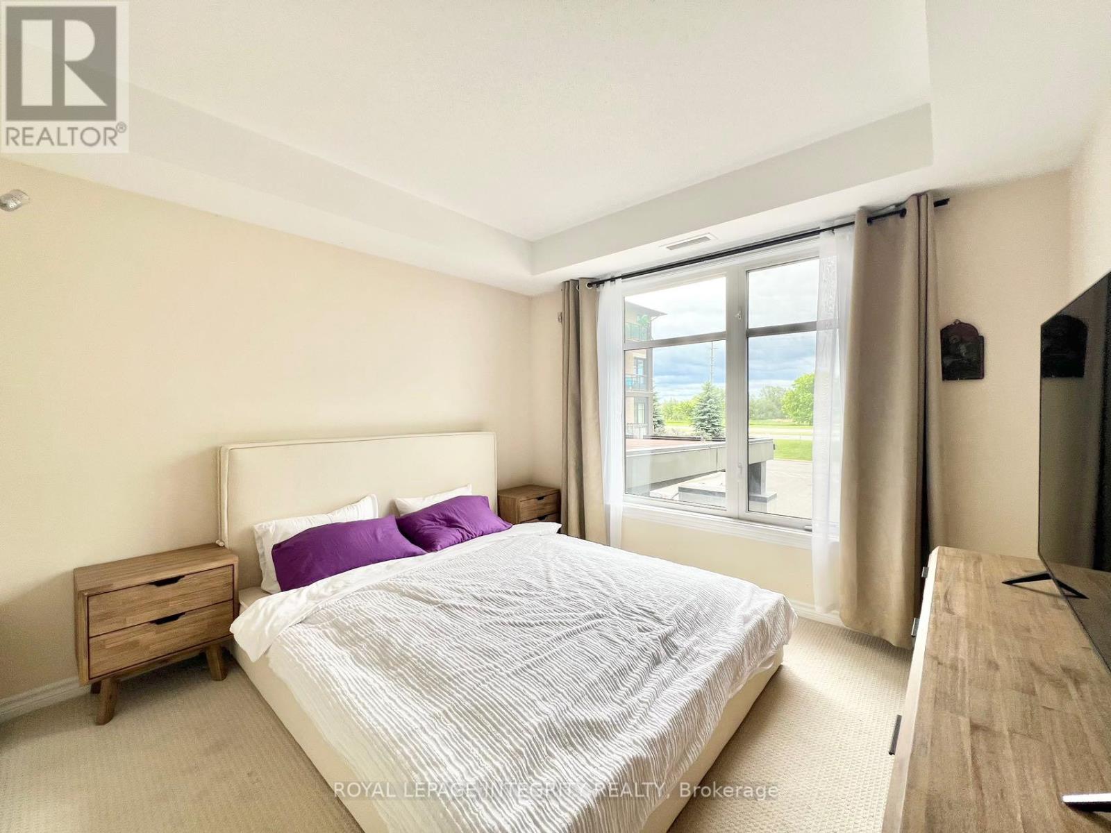 Welcome to this bright and beautifully maintained corner unit in the highly sought-after Foxwood community of Kanata Lakes! Offering 2 bedrooms + den and 2 full bathrooms, this spacious layout is perfect for professionals, families, or investors. The open-concept kitchen features a large island, stainless steel appliances, and ample cabinetry, seamlessly flowing into the sun-filled living and dining area with gleaming hardwood floors and expansive windows. Enjoy incredible natural light throughout the unit, along with generously sized bedrooms, a versatile den ideal for a home office, and convenient in-unit laundry. Step out onto the private balcony overlooking peaceful green space and a quiet neighbourhood setting. This well-managed building offers premium amenities including an elevator, underground parking, and a storage locker. Located within top-rated school zones and just minutes to Kanata High Tech Park and DND Carling campus, with easy access to transit, shopping, restaurants, recreation, and major highways. Move-in ready! Photos were taken prior to current tenant occupancy. (id:64974)