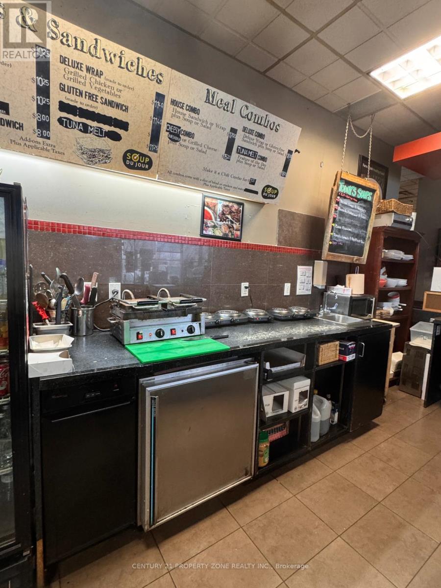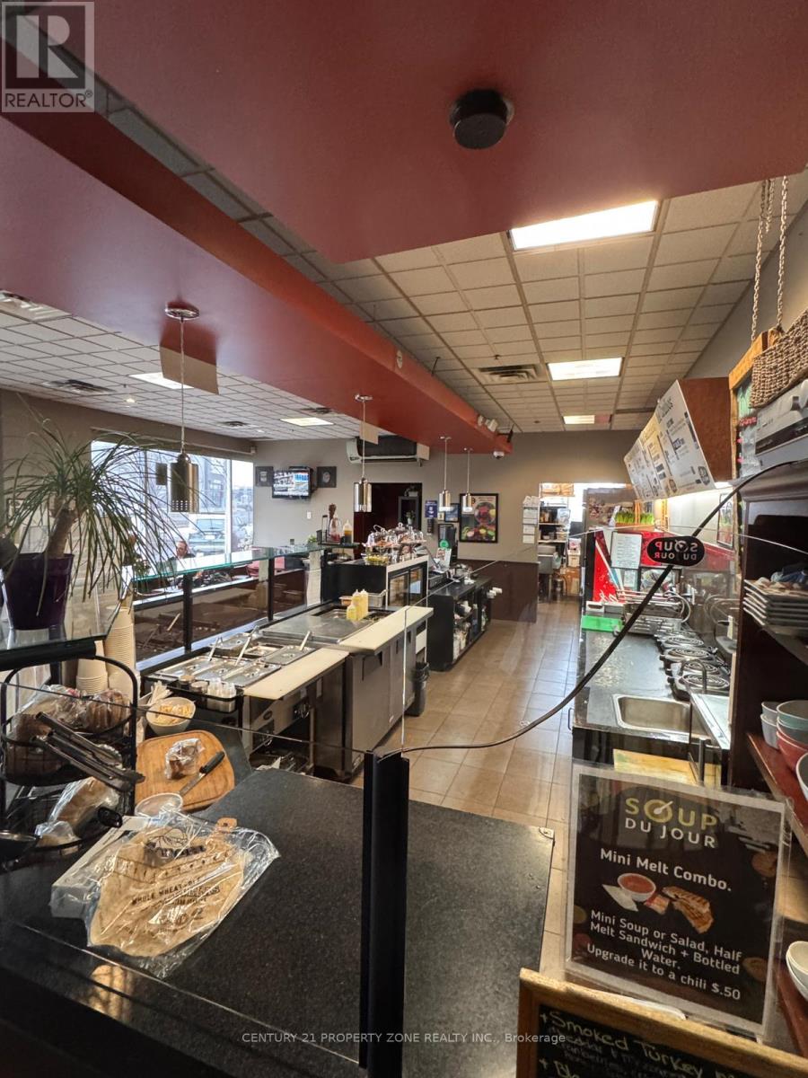 Turn-key café business for sale - Soup Du Jour, a well-established brand with approximately 20 years ofsuccessful operation. Located in a busy commercial area near a major plaza and Landmark Cinemas,benefiting from strong foot traffic and repeat clientele. The café offers seating for approximately 26-30guests within a 1,009 sq. ft. space. Affordable rent of $3,900/month including TMI and property taxes, withwater and hydro included. Lease in place until May 31, 2026.Landlord may be flexible with other permitted uses subject to landlord approval and obtaining any requiredcity permits. Excellent opportunity for an owner-operator or entrepreneur to take over a long-standingneighborhood café with growth potential. Business only - property not included. (id:64974)