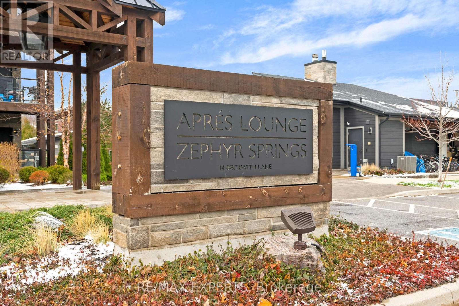 Welcome to Mountain House by Windfall, where resort-style living meets modern comfort in this boutique-style resort community. This elegantly appointed 1 bedroom suite, featuring an enclosed den that can serve as a second bedroom, offers one bathroom and a sun-filled first floor corner layout. Showcasing high-end finishes and energy-efficient appliances throughout, the open-concept living space includes a natural stone fireplace, quartz countertops, mixed marble and engineered flooring, and in-suite laundry with a washer and dryer. Step out onto your private balcony with a gas BBQ hookup and enjoy peaceful panoramic treed views. The unit includes one parking spot plus ample visitor parking. Residents enjoy exceptional amenities such as outdoor pools, a gym, sauna, and more, all within walking distance to The Village and the renowned Scandinavian Spa. Experience the ultimate blend of luxury, convenience, and lifestyle at Mountain House. (id:64974)