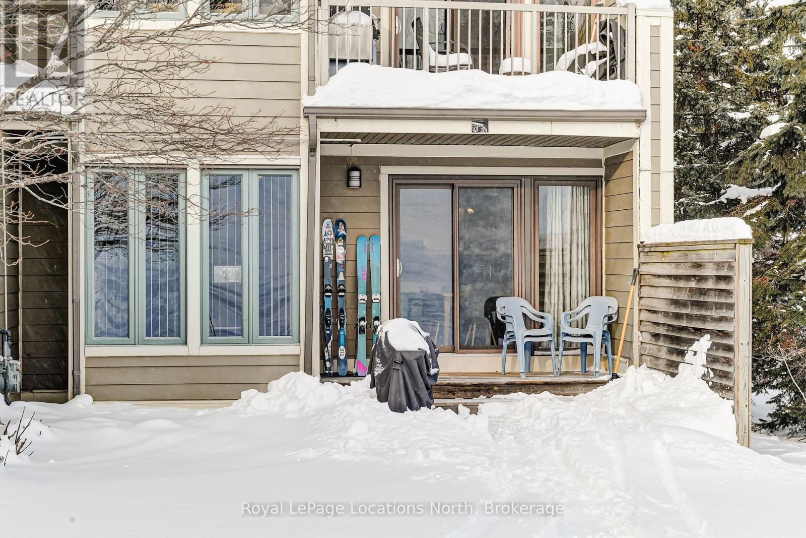 Don't miss this very rare SKI-IN / SKI-OUT Turnkey Fully Furnished townhome at Blue Mountain Ski Resort! This Chateau Ridge unit is THE CLOSEST unit to the Happy Valley ski run, the famous Jozo's Bar & Grill and to the Pottery Restaurant and is an end unit. Ski in and out of your back door! Also one of the very few units that has a private front entrance (not shared with other units) plus ground floor entry into your foyer (no stairs to get to your foyer like many other units). Fully STA (Short Term Accommodation) eligible, currently registered with Hosting Blue Vacation Rental program. Other features include a large mudroom, 2 oversized bedrooms, both with double closets (one lockable), 2 full bathrooms, open concept kitchen/living room/ dining room overlooking the ski hill, a gas fireplace & a wet bar / coffee station in the Living Room, a large storage room on the 2nd level, a separate utility closet with a laundry sink, your own gas furnace to control your own climate, main floor laundry room, a separate exterior locker near the parking area, a reserved parking spot + a 2nd guest parking pass in the large common area. Pets are permitted. Free shuttle service to the Village is available right next door at the Blue Mountain Inn. Taxes listed are at the commercial tax rate, for STA use. Can apply to reduce them to the residential tax rate if no STA usage. (Residential taxes of $2,181 were paid in 2024 for this unit). Visit my REALTOR website for further information about this Listing (under my contact info). (id:64974)